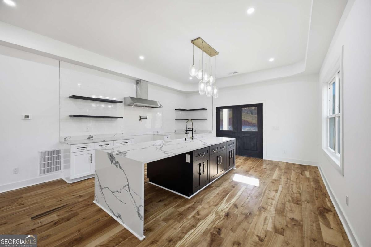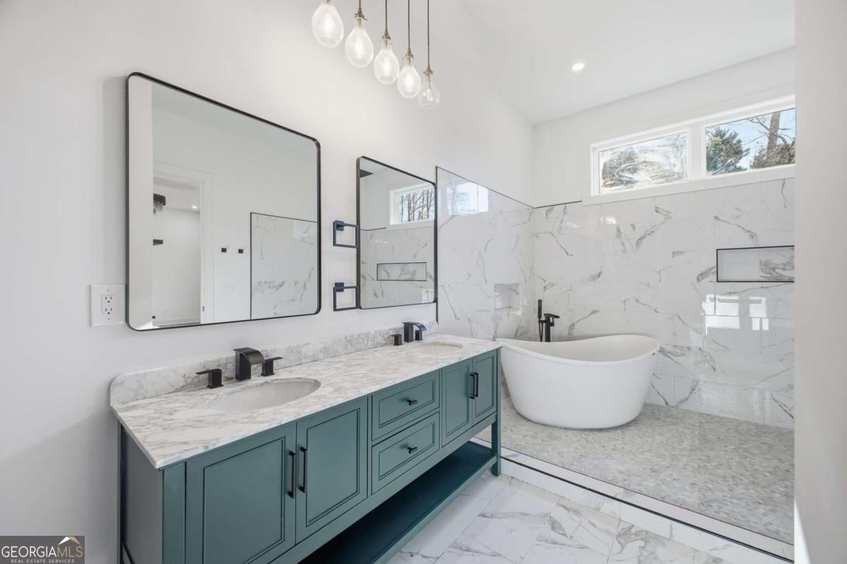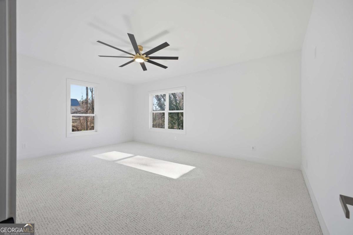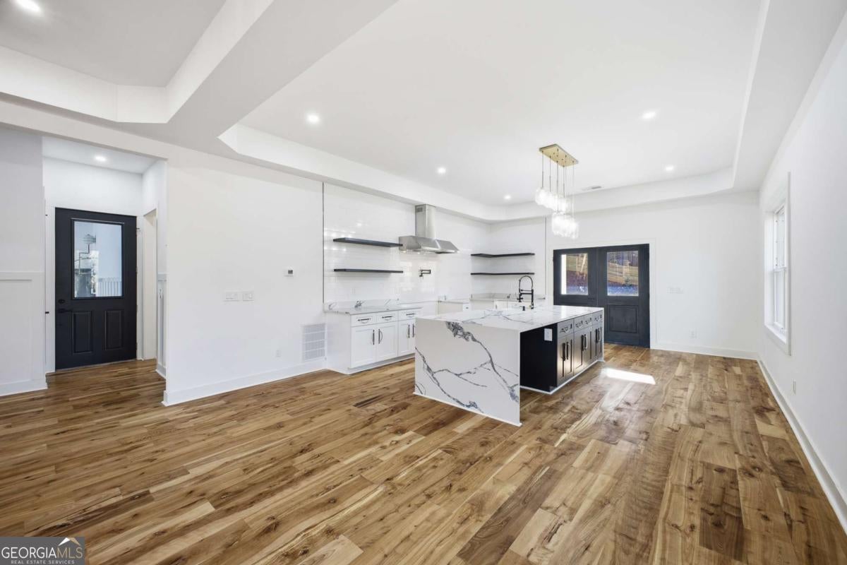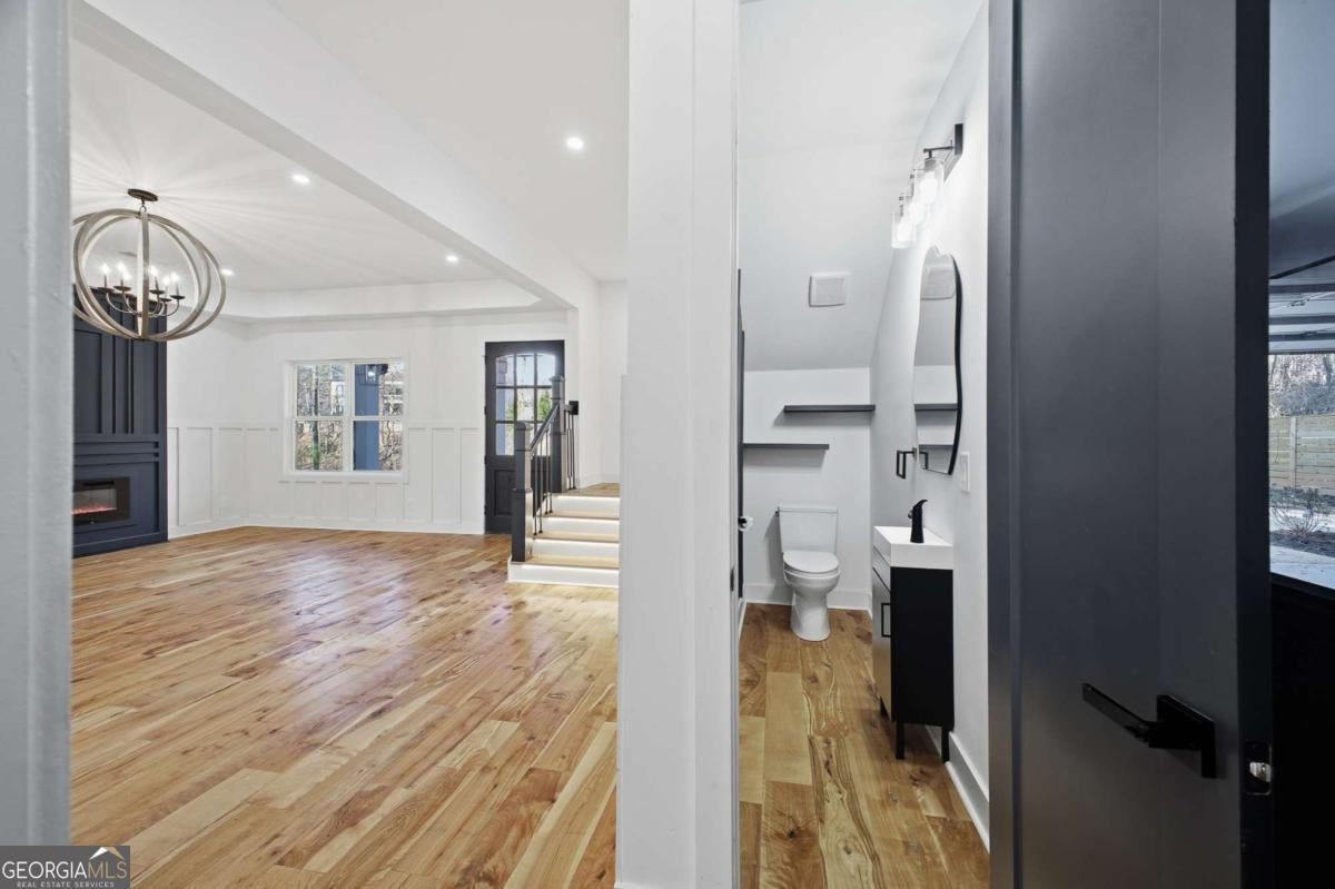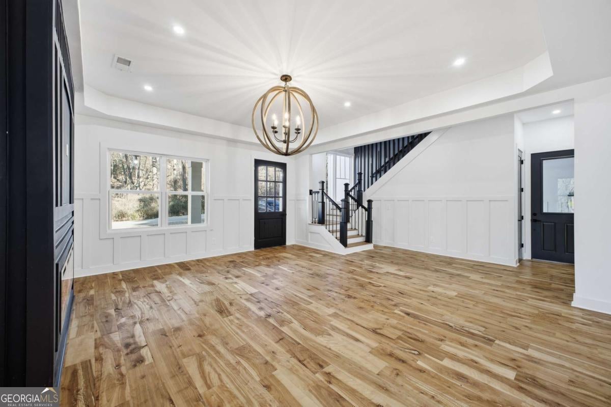 Experience elevated living in this exceptional brand-new construction home, ideally located just moments from Lake Lanier. Designed with both style and function in mind, this 4-bedroom, 3.5-bath residence showcases refined finishes, contemporary elegance, and a highly desirable lake-area lifestyle. Step inside to sun-filled interiors featuring solid hardwood floors, plush luxury carpeting in the bedrooms, and an open, modern layout perfect for entertaining. The chef's kitchen is a true showpiece, offering an oversized island, sleek quartz countertops, wall-to-wall white backsplash, custom white cabinetry with wood shelving, and a deep undermount sink-all complemented by clean, modern finishes. The main-level owner's suite is a private retreat, complete with a spacious walk-in closet and a spa-inspired bath featuring dual vanities, a soaking tub, and a stunning walk-in shower with waterfall fixture. Upstairs, additional bedrooms include a secondary primary suite, along with access to a spectacular terrace-ideal for relaxing or hosting guests. Additional highlights include a main-level laundry room, an elegant electric fireplace, and abundant natural light throughout. Every detail of this home is brand new-offering peace of mind and effortless living. Located just minutes from Burton Mill Park, Lake Lanier, and the University Yacht Club, this home delivers the perfect blend of luxury, modern design, and proximity to the water. A rare opportunity to enjoy high-end new construction in one of Lake Lanier's most desirable locations.