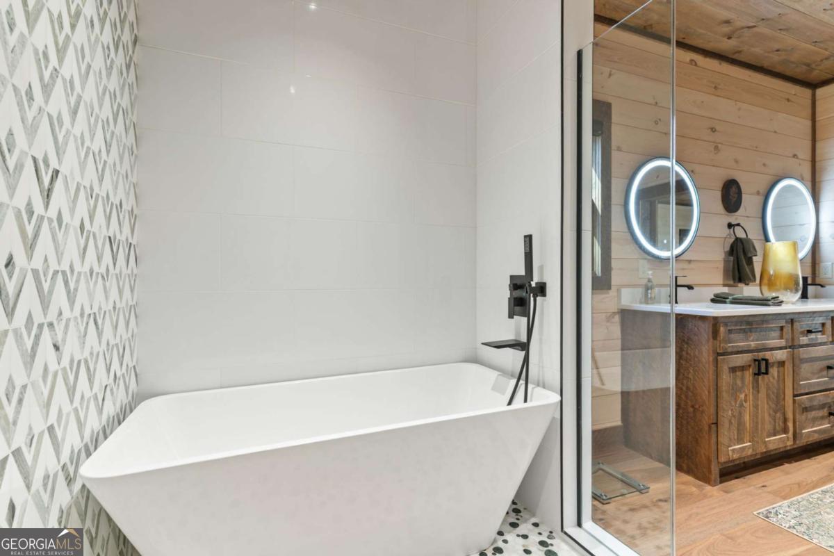 - Interior FeaturesHigh Ceilings, Master On Main Level, Other, Separate Shower, Soaking Tub, Walk-In Closet(s), Double Vanity, Tile Bath