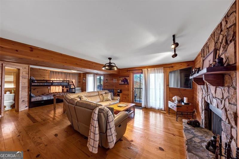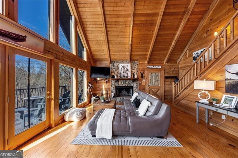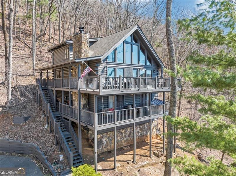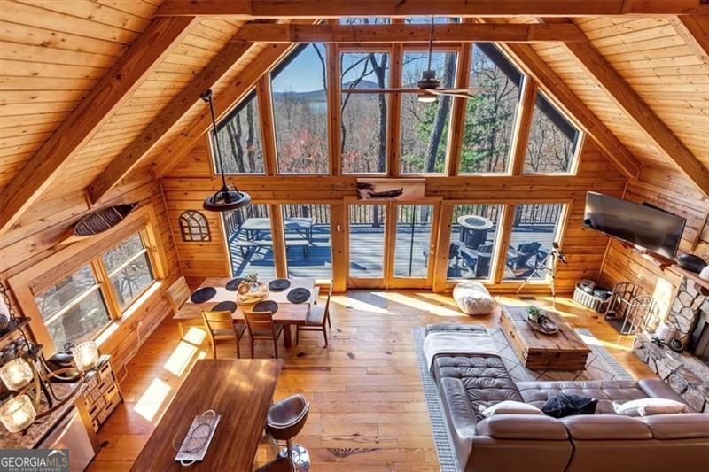 Welcome to your dream mountain escape in prestigious Big Canoe! This 3-bedroom, 3-bath cabin offers privacy, stunning long range mountain views, with a completely reimagined modern-rustic design which is perfect as a personal mountain retreat and/or short-term rental. The gorgeous great room wows with cathedral ceilings, exposed beams, a stone fireplace, and floor-to-ceiling windows framing breathtaking scenery. The primary suite is a tranquil retreat with a spa-like bath with jacuzzi tub. The multiple decks surrounding the home and outdoor spaces invite you to relax, entertain, or stargaze by the firepit. The lower-level living area adds even more with a game room, bunk beds, a second fireplace, and extra lounging areas ideal for the kiddos. A whimsical hideaway nook on the upper level and porch swing off the deck makes this home truly special. Sold fully furnished and turnkey with $50,000+ in upgrades and improvements, this cabin is ready for you to personally enjoy or rent as an income producing property. While the driveway is on the steeper side, it is very maneuverable and becomes fun to drive once you get the hang of it. Big Canoe's world-class amenities include golf, lakes with a marina, hiking trails, pickleball, a Beach Club, fitness center, and more creating a mountain lifestyle like no other. Schedule your private tour today and make this stunning retreat yours!