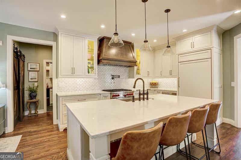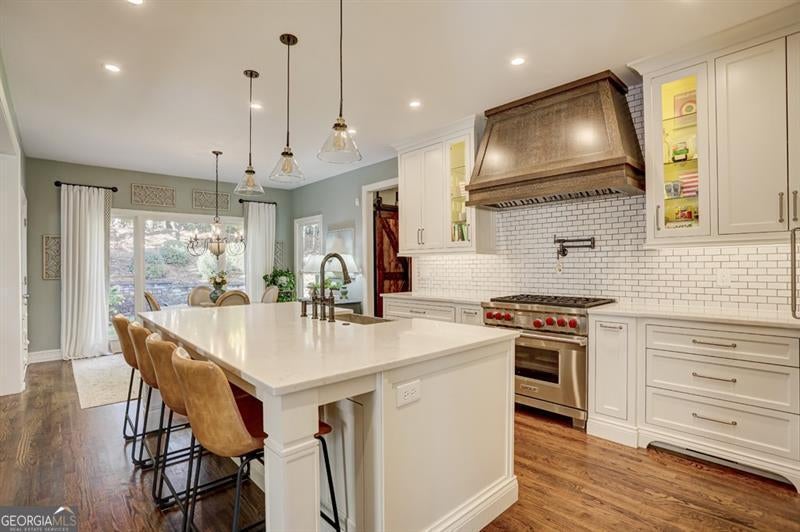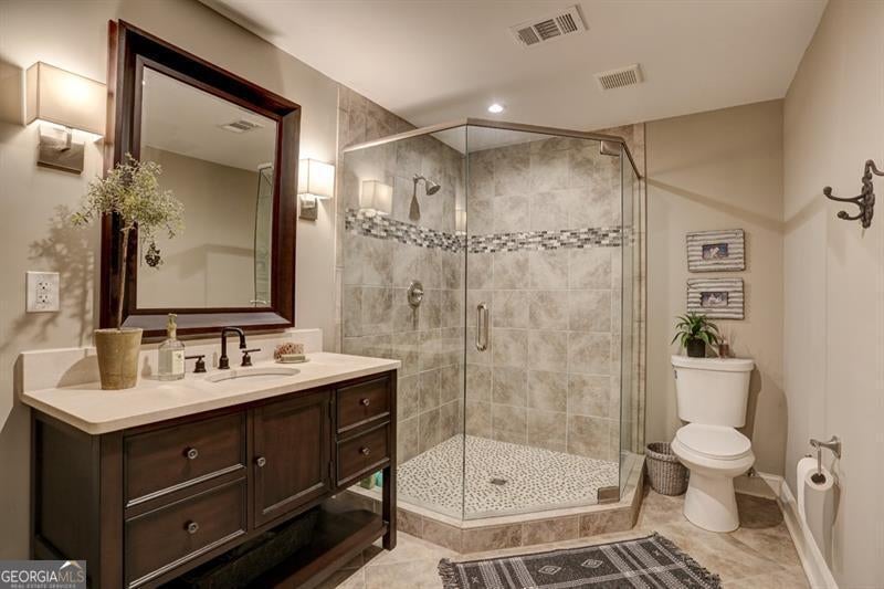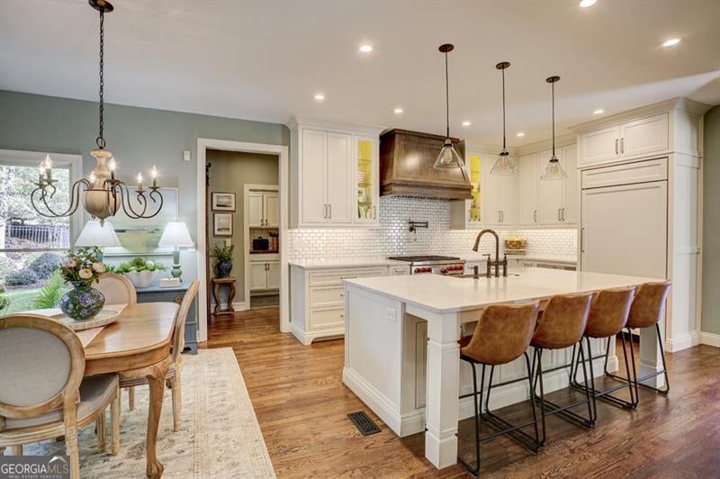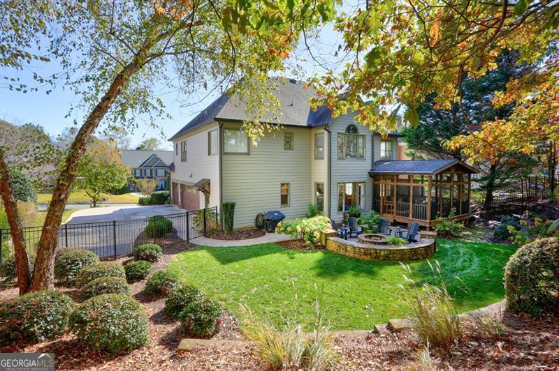 Charming traditional Craftsman-style home situated on a large cul-de-sac lot in the highly desirable Three Chimneys Farm subdivision. Meticulously maintained by the original owners, this fully renovated, move-in-ready home combines timeless character with modern luxury. The updated gourmet kitchen features custom cabinetry, professional-grade stainless steel Wolf range, built-in Subzero refrigerator, pot filler, and quartz countertops, all open to the great room and breakfast area-perfect for everyday living and entertaining. A welcoming front porch leads to a two-story foyer, spacious dining room, and an additional office or formal sitting room. Enjoy outdoor living year-round with a custom screened porch, stone patio with fire pit, and a fully fenced backyard with terraced levels providing additional usable yard space. The expansive primary suite offers a sitting area and walk-in closet with custom closet systems. The completely renovated primary bath includes custom vanities, updated tile, stand alone soaking tub, new lighting, and a large walk-in tiled shower. Three additional bedrooms and a large bonus room complete the upper level. The finished terrace level includes a movie room, full bath, and workout area, offering flexible space for recreation or guests. Other outstanding features include a three-car side-entry garage, plantation shutters, and hardwood floors throughout the main level, upstairs catwalk, and primary suite. The home also boasts a custom pantry with barn wood doors, a shiplap-accented great room with coffered ceilings, an updated main-level laundry room, designer lighting throughout, and professionally installed exterior landscape lighting and irrigation system. Three Chimneys Farm is a highly sought-after swim/tennis community, conveniently located within walking distance to award-winning public schools.