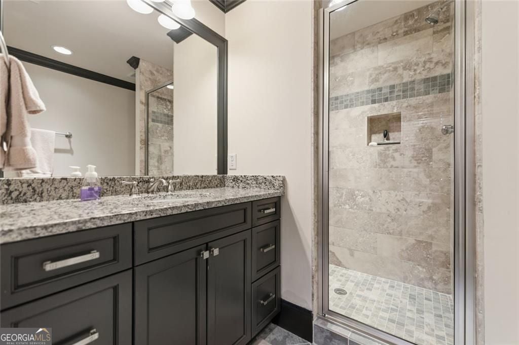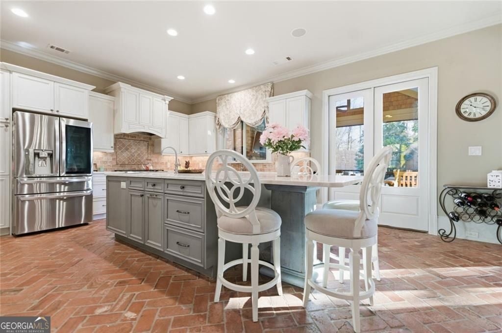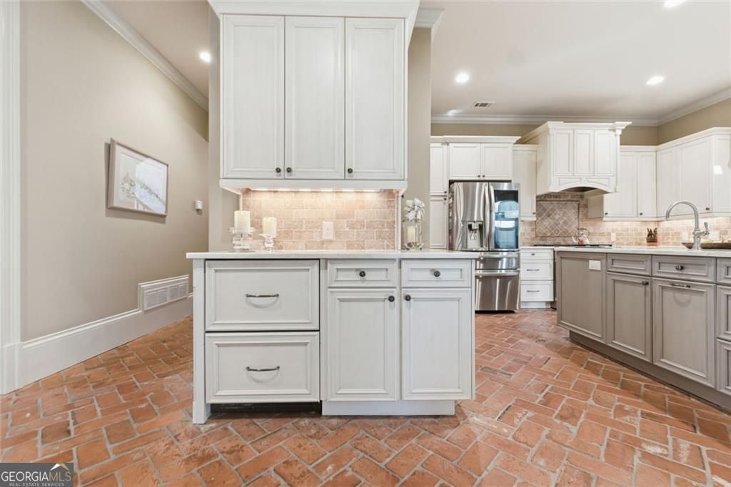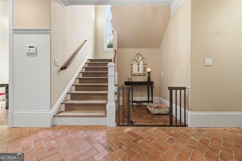 Welcome to 306 Greyhaven Lane, a truly spectacular home in the heart of East Cobb where timeless character meets exceptional functionality. Warm brick flooring anchors the kitchen and mudroom area, creating a sense of depth and architectural charm that immediately sets this home apart. Designed with both comfort and flexibility in mind, the residence offers five spacious bedrooms, each with its own private en suite bathroom and walk in closet, providing privacy and ease for family members and guests. The primary suite is conveniently located on the main level, offering a serene retreat with effortless everyday living. Step outside your bedroom door to the back patio while you enjoy a cup of coffee in your quiet private backyard. One of the home's most captivating features is the large screened-in porch with a fireplace, an inviting extension of the living space ideal for year-round enjoyment-whether entertaining, relaxing, or gathering with loved ones. The upper levels offer exceptional versatility. The second floor features an additional living room or den, perfect as a casual family lounge or teen retreat, while the third-floor loft with a built-in bar creates the ultimate destination for a movie room, game room, home gym or media lounge. A fully self-contained apartment providing remarkable versatility, is located on the second floor, perfectly suited for multi-generational living, an au pair, a college-aged child, or long-term guests. In the apartment you will find a spacious bedroom with a huge walk in closet and additional storage room, a beautiful bathroom with a roomy walk-in shower, full kitchen, large pantry with washer and dryer hookups, a living room with additional flex space and its own private porch for unwinding. Additionally, the home features two flexible rooms on the main level, ideal for home offices, creative spaces, or a nursery conveniently located near the primary suite. One of the hidden gems of this home is the more than amble amount of climate-controlled storage. The home also boasts garages for 3 cars with freshly coated floors for easy maintenance. Located in an established neighborhood with top-rated East Cobb schools, dining, and shopping, 306 Greyhaven Drive offers rare adaptability, thoughtful design, and enduring appeal-ready to meet the needs of whatever life brings next.