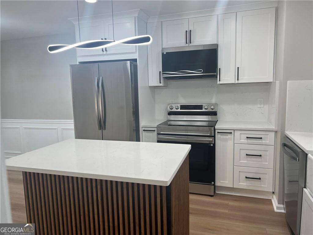 Beautiful Renovated Townhome in Decatur!! Open Concept Home offers a cozy living area perfect for a family with kids !!!Everything Is NEW!!! Perfect blend of style, comfort and convenience. With an open and inviting floor plan this home is designed for easy living. The main level offers a Family Room, Kitchen, Dining Area, Laundry with New Washer and Dryer and a Deck with Fence for your barbecue! Upstairs, you'll find a primary Bedroom with a Walk-in Closet providing ample space with a Full Bath an additional Bedroom with a second Full Bathroom , both Rooms are generously sized bedrooms.. This home is packed with updates, including fresh neutral paint throughout, water proof hardwood floor the entire home. The Kitchen is outfitted with Brand-New Island with quartz countertops, New Light Fixtures, Iron Stairs railing and New Stainless Steel Appliances included: Microwave, Dishwasher, Range, Refrigerator, Electric Stove, Washer and Dryer. Two New HVAC system. Cash or Hardy Money Lender!!