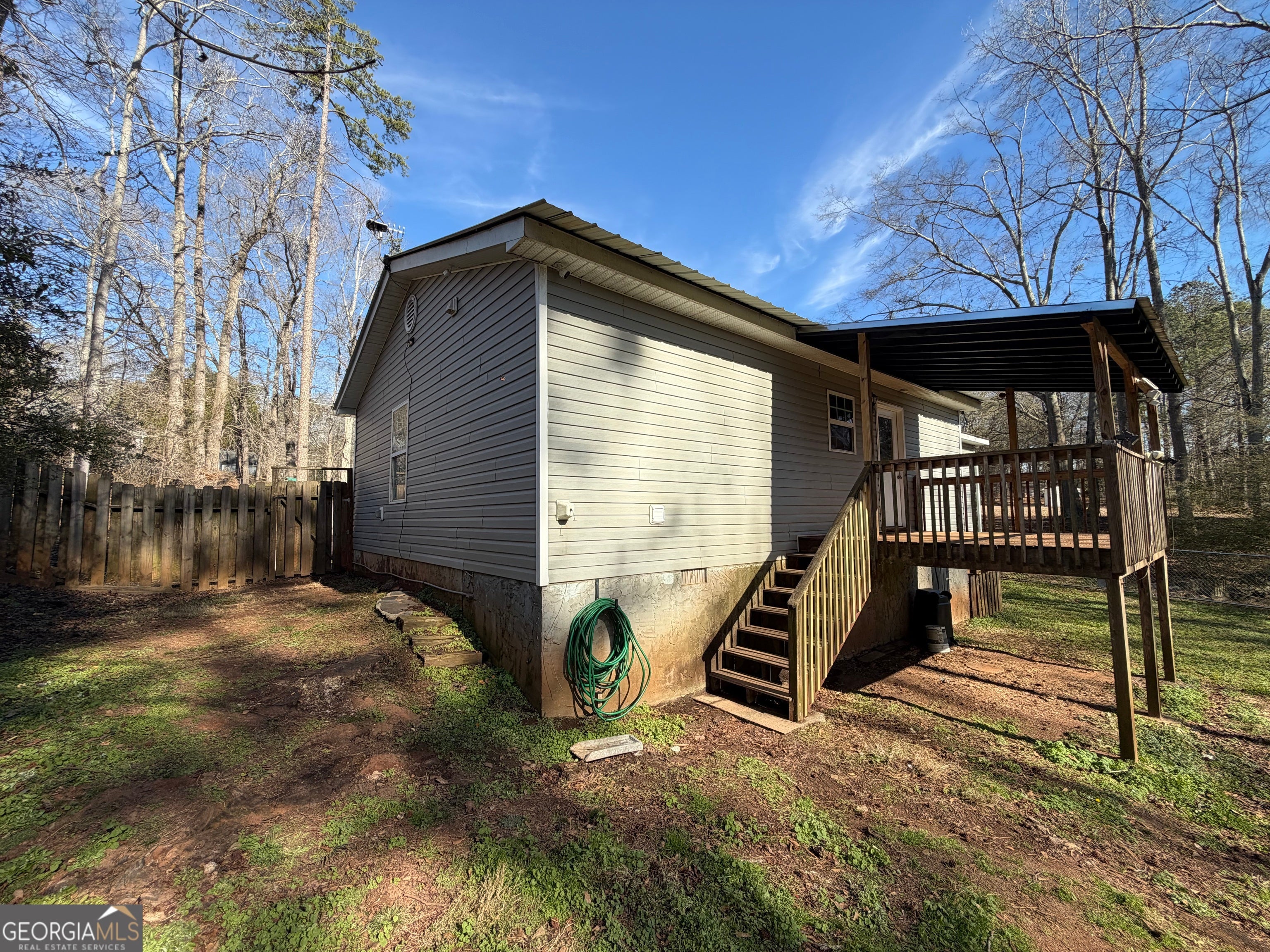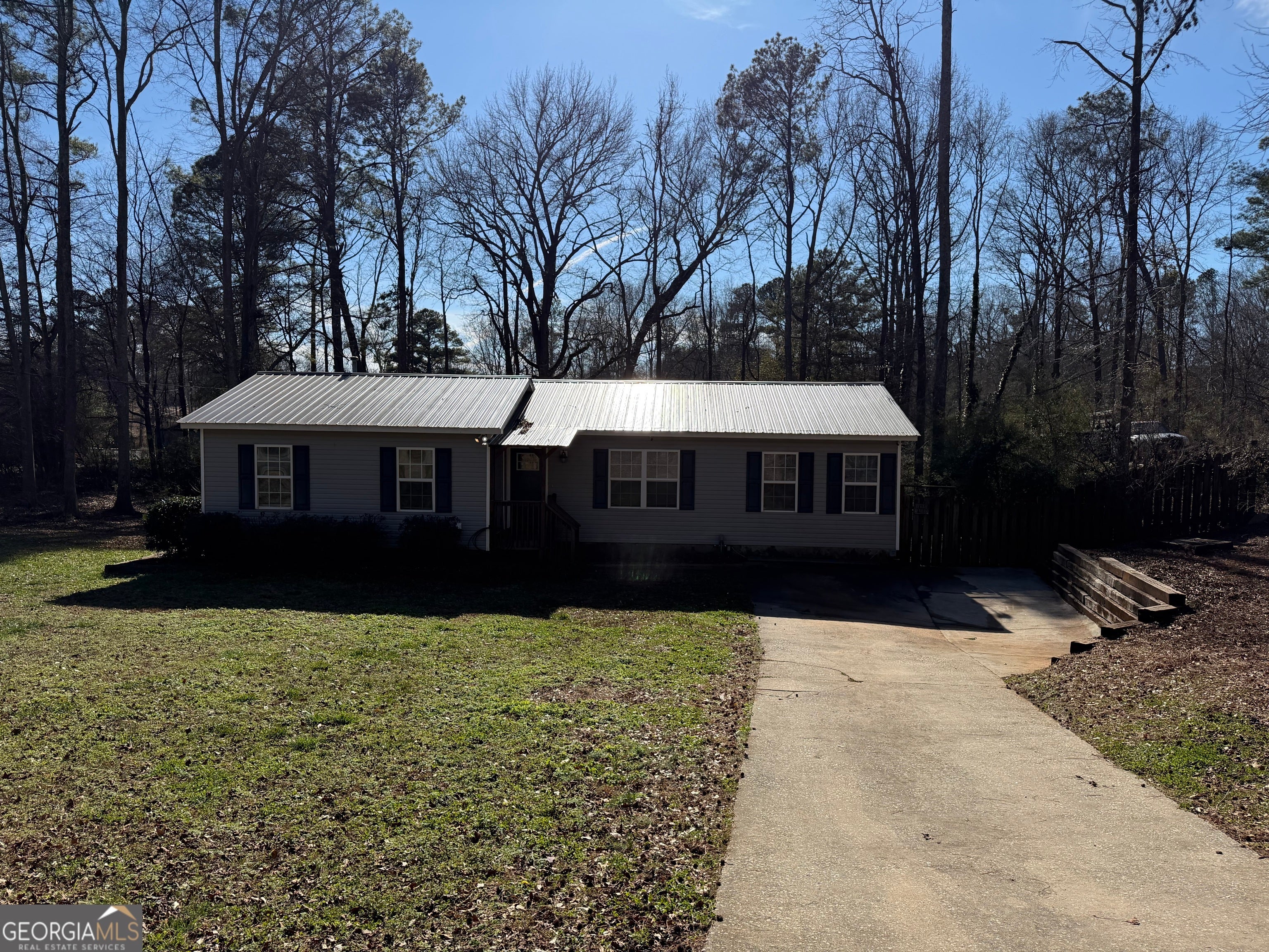Renovated, move in ready! 516 Bavarian Drive, Palmetto in Coweta County with school zoned for Brooks Elem., Bass Middle and Northgate High. 4 Real Bedrooms and 2 full baths. Ranch style all one level. Large open kitchen with an eat in area and granite bar top for addition seating and entertaining. Lots of cabinets and countertop space in the kitchen. Appliances include: a range oven with smooth cooktop, built in Microwave, Dishwasher and double bowl stainless steel sink with disposal. Kitchen / eat in area has exterior door to a nice covered rear Deck overlooking the fenced rear yard. Separate family room with lights and ceiling fan. The family room and kitchen and hallway have LVP flooring and the 4 bedrooms have brand new carpet just installed this week. The left wing of the home has 3 bedrooms and 1 full bath. One of them is a good size as it was the original Owners bedroom. The other side of the home has an owners suite, owners closet and separate full bathroom with shower and granite top sink vanity. A large laundry room finishes off the inside of the home. This large corner lot is over a half acre and has private rear fenced year with storage building. The home has New flooring - LVP and carpet. New lighting throughout. Interior ceilings, walls, doors and trim have all been just painted. Tankless gas water heater. Bathrooms have been updated with granite vanity tops. Covered front entry with new front door. HVAC just serviced and all good. Long lasting 50 year Metal roof is 14 years old. Crawl space is clean with new plastic down and encapsulating the walls also. Spray foam insulation for floor joist in the crawl space. 50 amp electric outside 220 Plug for charging at the parking pad in front of the house. NO HOA, RV parking ok. Vinyl siding just cleaned. Super Convenient to ATL airport and Atlanta. Just seconds off GA Hwy 29 and Tommy Lee Cook Road. Just north of Arbor Springs Sudb. and new Publix Shopping center. This will sell quickly. Use showing time for appt on supra. Thanks for showing