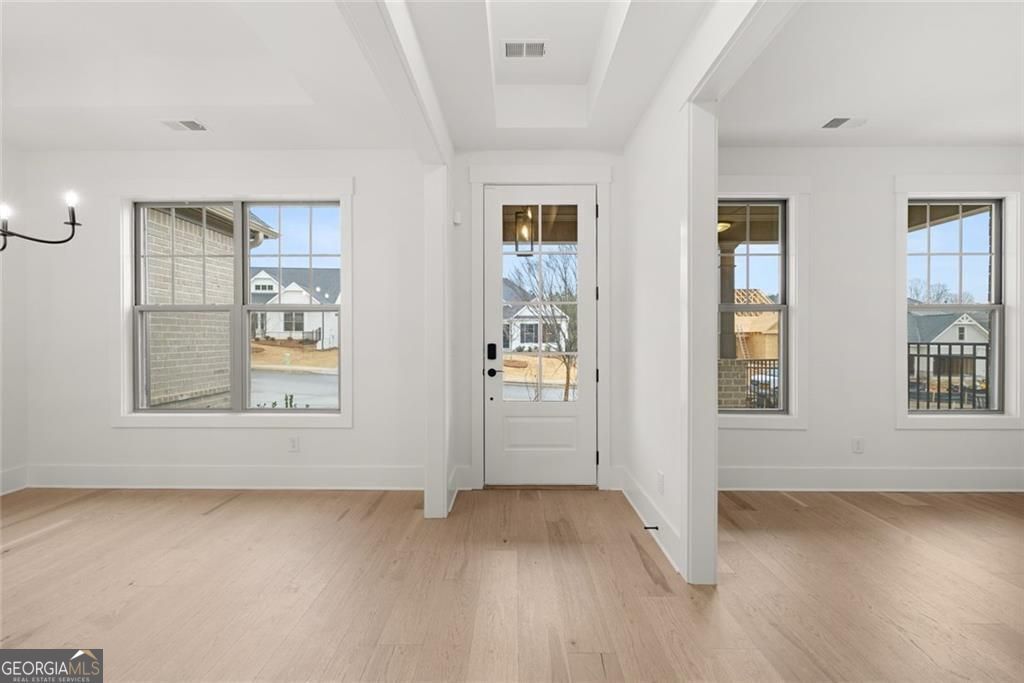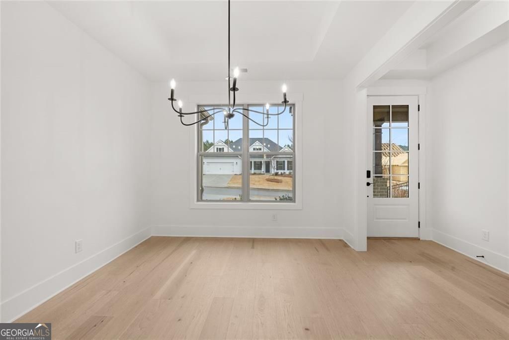 Pearson C plan. This 2 bed 2 1/2 bath is main floor living at its best. It includes a dining room, study, kitchen with large island that opens to the family room and breakfast room. The primary bedroom includes a sitting bay and bath with a huge walk-in closet that also has access to the laundry room. Secondary bedroom includes a walk in closet and easy access to hall bath. A sunroom in the living room that leads to a covered porch with an additional grilling patio. As well as a golf cart garage door. The Award-Winning Builder, Patrick Malloy Communities, provides an Award Winning 55 plus community project, Soleil Belmont Park. It features 471 low maintenance homes situated on large home sites. Located between the picturesque towns of Milton and Canton, Soleil Belmont Park provides a dream setting for active adults aged 55 and above. The Soleil brand has redefined active adult living in Georgia with its resort style of living. Residents of Soleil Belmont Park are privy to an array of amenities: a rejuvenating resort-style pool, a cutting-edge health & fitness center, a cozy coffee and cocktail bar, pickleball/tennis courts, bocce ball, a gourmet kitchen for catering, winding walking trails, flourishing gardens, and a dedicated arts & crafts studio. Further enriching the experience, an on-site lifestyle and travel director ensures an ever-evolving calendar of events and excursions. Joining the Soleil community means bidding adieu to seasonal chores and property upkeep. We offer comprehensive services, allowing residents the freedom to chase passions, kindle friendships, and truly relish life. For the discerning active adult, Soleil Belmont Park isn't just a community, its home.