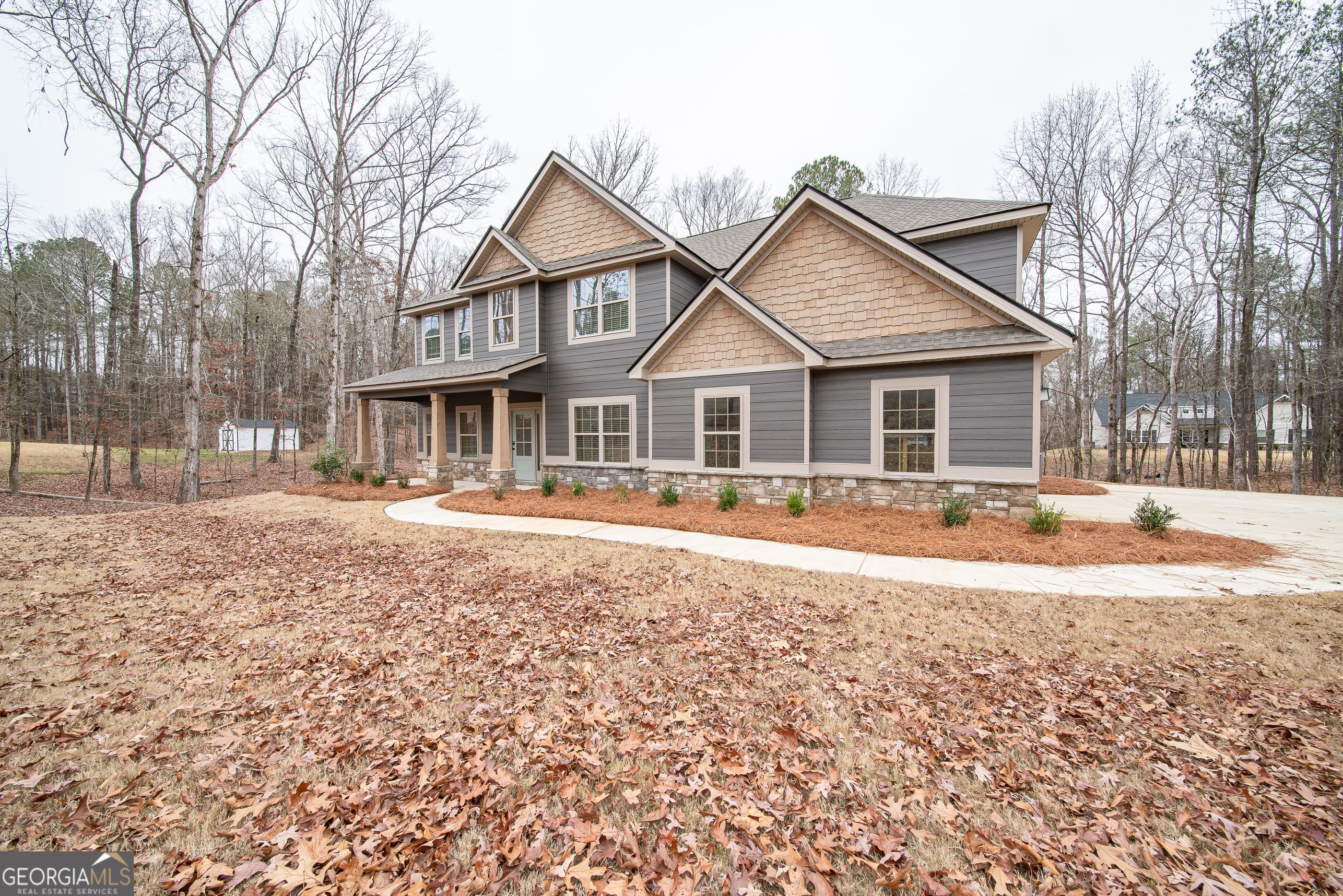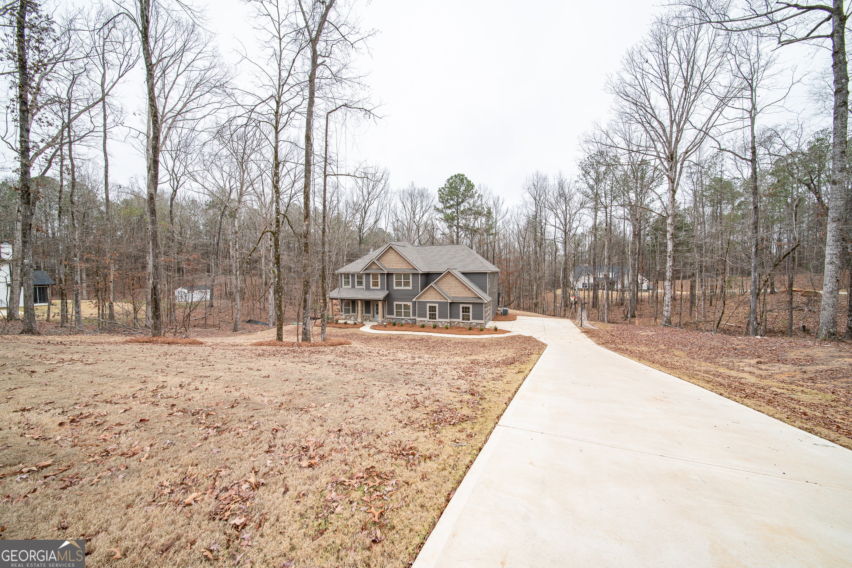 Tucked away on nearly 4 peaceful acres in Harris County, 75 Ironwood Way offers the perfect blend of space, privacy, and beautifully designed living. This inviting 5-bedroom, 4-bath home features over 3,300 square feet of thoughtfully planned living space ideal for everyday comfort and easy entertaining. A welcoming entry foyer opens to a formal dining room and flexible space perfect for a home office or additional living area. The spacious great room is filled with natural light and anchored by a cozy wood-burning fireplace, creating a warm gathering space. Hardwood flooring flows throughout the main living areas, adding timeless appeal. The kitchen serves as the heart of the home with stylish cabinetry, granite countertops, tile backsplash, stainless steel appliances, a large center island, and walk-in pantry. The open layout connects seamlessly to the breakfast area and living space for effortless hosting. A main-level bedroom and full bath offer excellent flexibility for guests or multigenerational living. Upstairs, the oversized owner's suite provides a private retreat with tray ceilings, a spa-inspired bath featuring a garden tub, tiled shower, and spacious walk-in closet. An additional bedroom with private bath creates an ideal teen or in-law suite, while two more generously sized bedrooms share a hall bath. Laundry is conveniently located upstairs. Outdoor living shines on the covered Game Day patio with a wood-burning fireplace - perfect for entertaining or relaxing while enjoying the peaceful acreage. Stone-wrapped columns and thoughtful architectural details enhance curb appeal. Offering privacy, space, and comfort both inside and out, this home delivers a rare opportunity to enjoy serene living while remaining close to everyday conveniences.