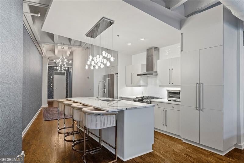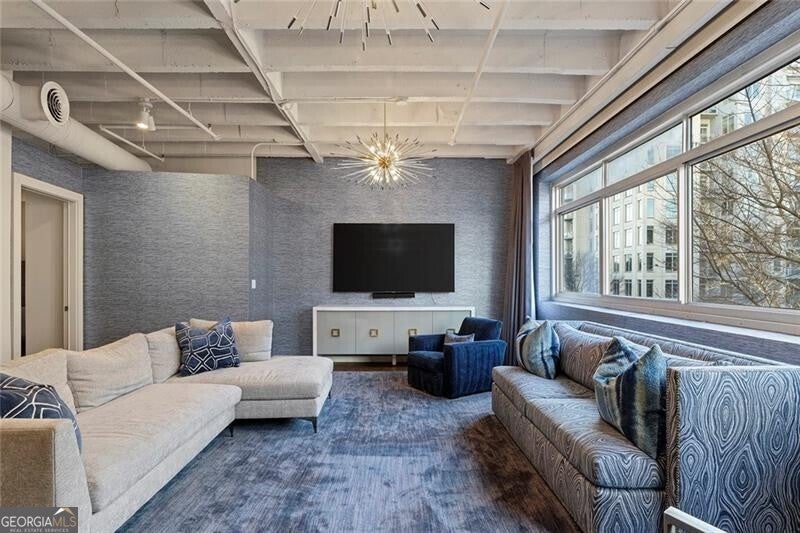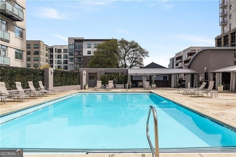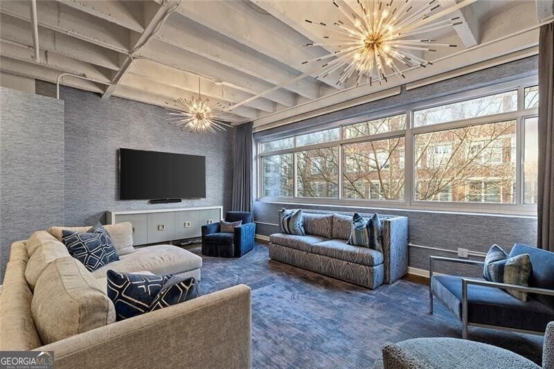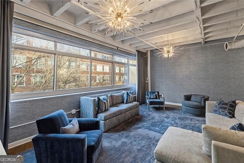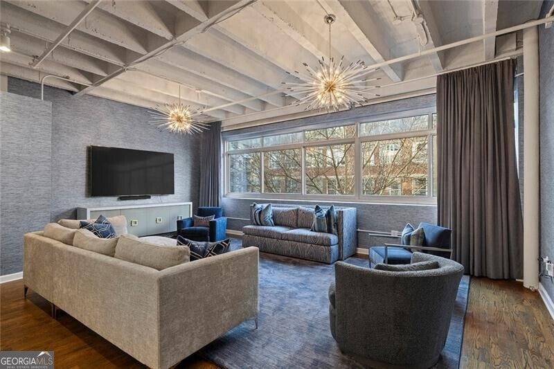 Located in the heart of Midtown, this expansive and light-filled two-bedroom, two-bath condo/loft offers sophisticated city living with refined finishes throughout. Wide-plank hardwood floors flow seamlessly through the residence, complemented by a beautifully renovated kitchen featuring quartz countertops, updated stainless steel appliances, gas cooking and custom cabinetry with exceptional storage. Designer custom wallpaper and statement Jonathan Adler lighting create a curated, high-end aesthetic, while electric shades and custom drapery provide both style and privacy. The thoughtfully designed roommate-style split floor plan includes a separate laundry room, an expansive living area and unobstructed, sky-filled views through commercial-grade, dual-pane glass that opens for fresh air. Additional highlights include a private storage unit conveniently located on the same floor and two assigned, gated and covered parking spaces. 805 Peachtree Lofts offers a full suite of luxury amenities, including a 24-hour concierge, a large, updated fitness center, a clubroom and a resort-style saltwater pool with cabanas and a fire pit. Residents also enjoy gated parking, rare guest suites, convenient guest parking, bike storage, Google Fiber and EV charging stations. Unbeatable Midtown location with walkability to over 90 restaurants, Piedmont Park, the Atlanta BeltLine, Fox Theatre, High Museum, MARTA, Georgia Tech, Colony Square, Trader Joe's and more-offering the perfect blend of urban energy and elevated living.