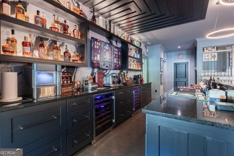 - Interior FeaturesBookcases, Double Vanity, High Ceilings, Separate Shower, Soaking Tub, Tray Ceiling(s), Two Story Foyer, Walk-In Closet(s), Wet Bar, Wine Cellar