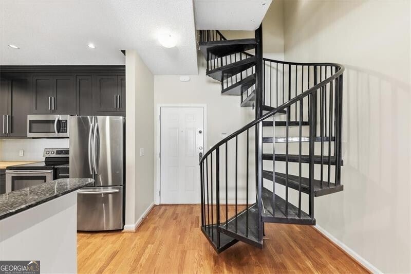 Super rare townhome floor plan with a loft overlooking living room. What an amazing opportunity to live in the heart of Midtown. Walk to Piedmont Park, The Beltline, hundreds of shops & restaurants that create this vibrant part of Atlanta. The well-appointed kitchen f, stainless features unique gray cabinetry, stainless appliances, a breakfast bar with pendant lighting that opens into the 2-story living room. The upstairs loft makes an excellent home office and has a large custom closet. The primary suite has its own walk-in custom closet, ceiling fan and windows overlooking the central courtyard with charming fountain. The HVAC is about 5 years old and was serviced 12/25. Tuscany is a gated, boutique community with a sparkling pool, fitness center and on-site management office. 2 parking spots come with the unit and there is plenty of guest parking is available, too!