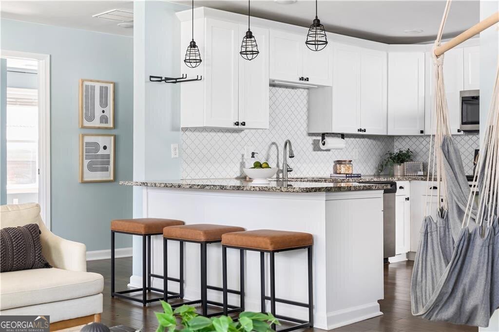 This home is where charm, comfort, and convenience come together in Hapeville. This home is located on a quiet street offering you neighbors who value community and also the convenience of being minutes from the vibrant energy of downtown Hapeville. This beautifully updated home offers a lifestyle rooted in simplicity, connection, and modern ease. From the moment you arrive, the inviting front porch sets the tone for the relaxed living this home will offer. Once inside, you will be delighted in the open floorplan that perfectly blends the living room, dining room and kitchen. The living room is anchored by a stylish fireplace and windows all around. The updated kitchen features granite countertops, white shaker cabinetry, tons of countertop and cabinet space, stainless steel appliances, and a breakfast bar for casual meals or entertaining friends/family. Adjacent to the kitchen, the dedicated dining room connects seamlessly to the other spaces and to the back deck and back yard The home's layout places the spacious primary suite in its own rear wing for added privacy. Enjoy the well thought out ensuite bathroom with it's separate glass-enclosed shower next to a charming clawfoot tub framed by a picture-perfect window so that soaking here feels like a getaway. The double vanity and medicine cabinet mirrors both provide great storage for the bathroom. Across the home on the other side, two additional bedrooms have access to a convenient full hall bath, offering flexible space for guests, a home office, studio or whatever your specific life calls for. Every inch of this home has been tastefully curated for function. Function meets peace of mind with this home as all major systems, including the roof, HVAC, plumbing, and electrical, are newly updated within the last 5 years, offering you low-maintenance living from the start. Located approximately 1.4 miles from downtown Hapeville, you'll love being near coffee shops, restaurants, breweries, art installations, parks, and the community theater. Explore the city's rich cultural vibe and enjoy a truly pedestrian-friendly lifestyle. With unbeatable proximity to Hartsfield-Jackson airport and Delta's corporate campus, this location is perfect for frequent travelers, yet you're still just minutes from downtown Atlanta, offering the best of both worlds: access and retreat. Whether you're looking for your forever home, first home or a smart city-close investment, this home delivers on every level. It's a smart design, with practical updates, and a location that celebrates connection, creativity, and convenience.