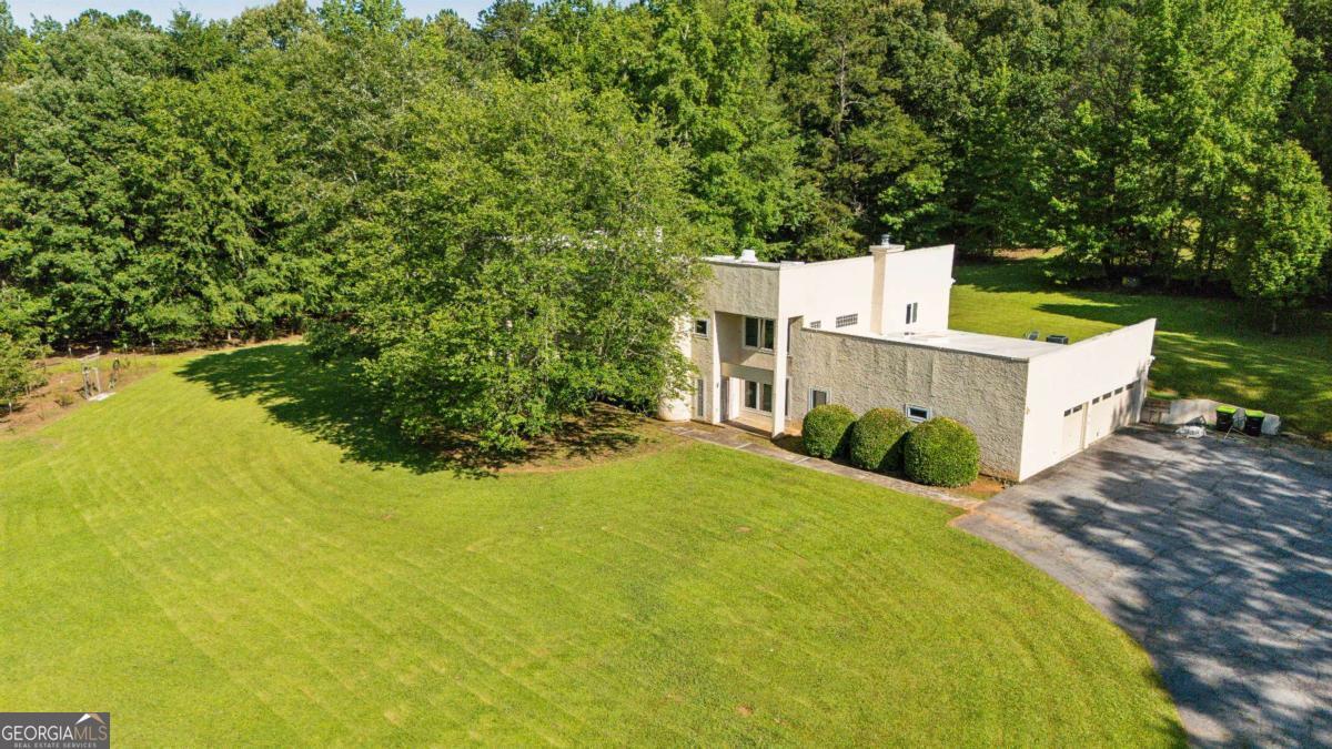 Cash-only investor special! Proof Of Cash Funds Required to view this property. Own your own piece of Hollywood History. Secluded on five level acres, this flat-roof contemporary now boasts a 2022 white membrane roof with a dramatic row of skylights that pour daylight into the soaring two-story great room and indoor lap-pool wing. Clean modernist lines, a main-level owner's suite, office with wet bar, three-car garage with broad motor court, newer Pella windows, and solar pool equipment enhance the canvas. Nearby estate sales support an $850k-$1.2 M ARV once renovated. Minutes to Trilith Studios, Pinewood Forest, and Peachtree City, it sits squarely in Georgia's "Hollywood of the South." Sold strictly AS-IS; lender financing will not qualify. Proof of funds and a signed hold-harmless are required before showings. Quick cash close preferred-restore this modern oasis and capture serious equity!