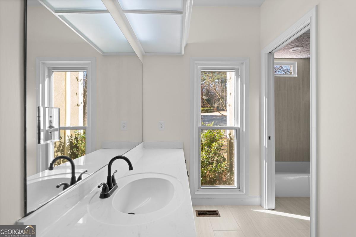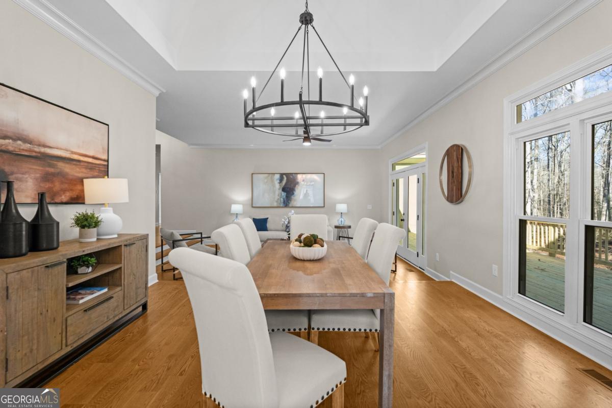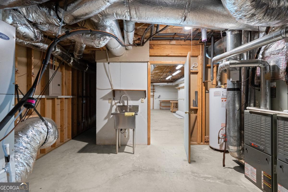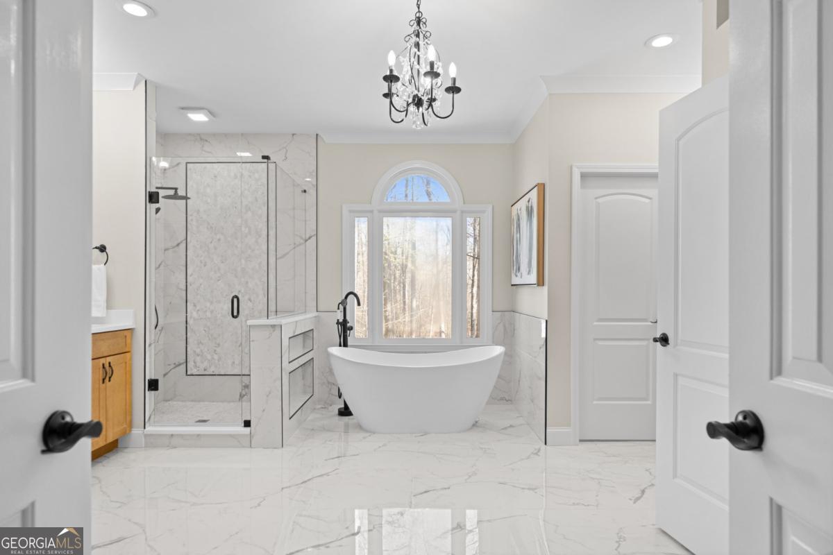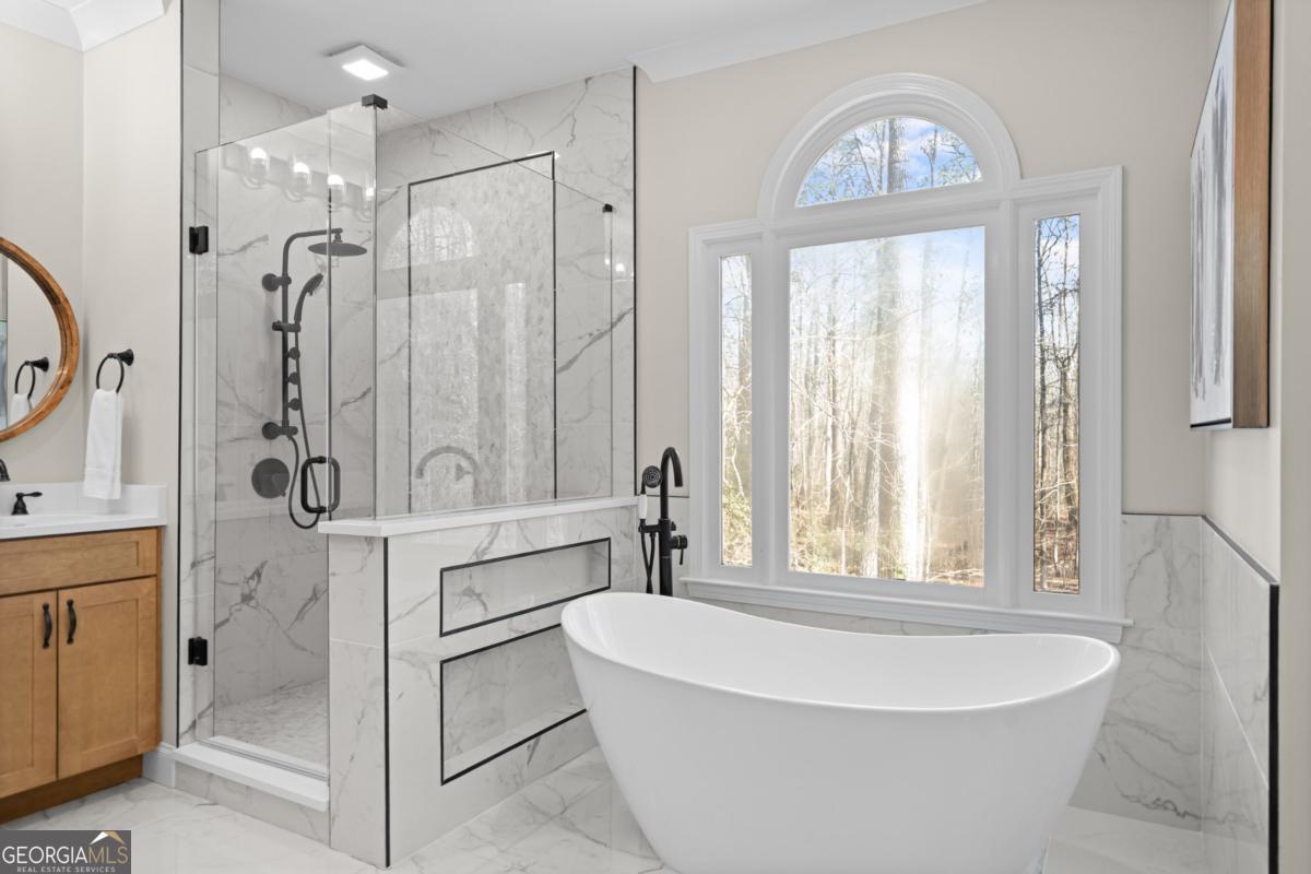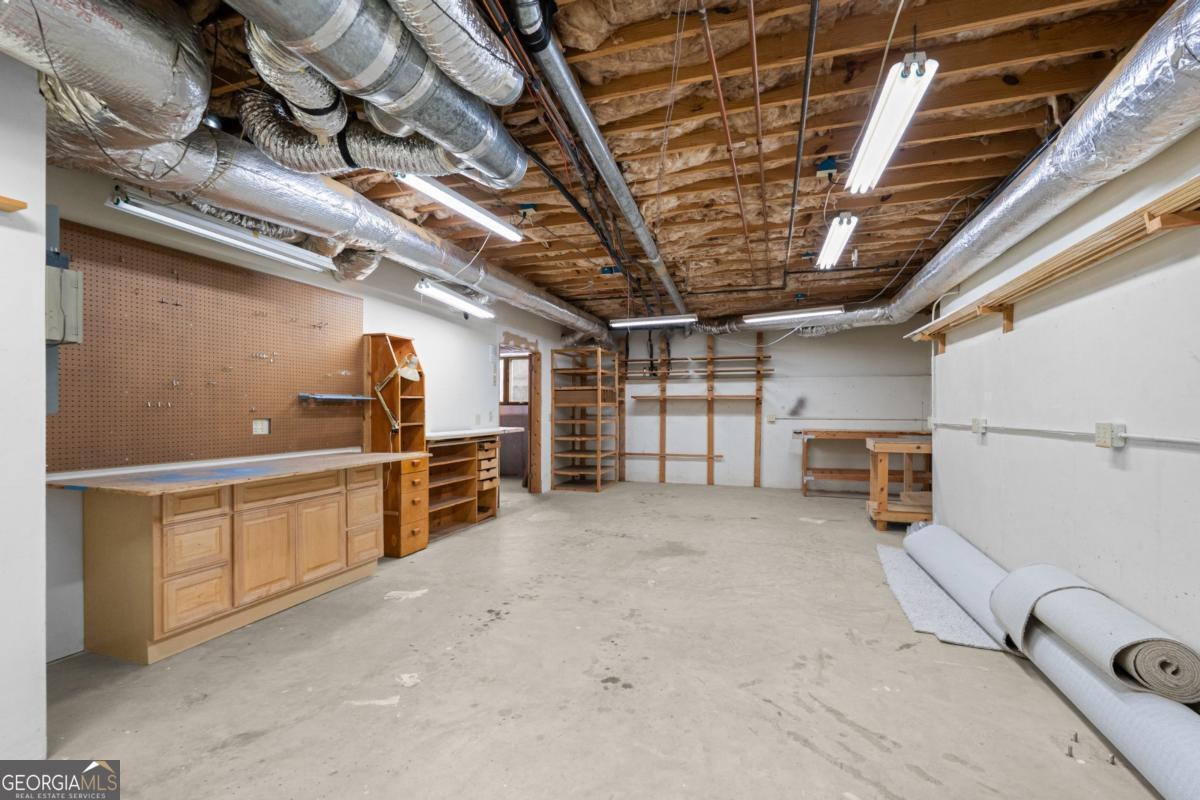 Wake up to protected forest views, peaceful wildlife, and miles of scenic trails just steps from your backyard. This exceptional ranch home directly borders Kennesaw Mountain National Battlefield Park, offering a level of privacy, serenity, and long-term value that simply cannot be replicated. Designed as a spacious ranch-over-basement, the home delivers effortless living with thoughtful flexibility for entertaining, remote work, and multi-generational living. The main level features three current bedrooms and three full baths, highlighted by a luxurious owner's retreat. The expansive primary suite offers a private sitting area, a cozy fireplace anchored by custom built-ins, and a vaulted flex space currently used as an office that could easily be converted back to serve as a forth bedroom. Direct access to the oversized deck allows you to enjoy peaceful mornings and sunset views surrounded by nature. The spa-inspired ensuite bath features a frameless tiled shower, a soaking tub, dual vanities, and elegant quartz finishes. The updated kitchen anchors the home with quartz countertops, a subway tile backsplash, and generous workspace. It flows seamlessly into the vaulted family room with a fireplace, creating an inviting environment for both daily living and entertaining. Outdoor living shines on the oversized deck overlooking protected parkland. This space is ideal for gatherings, quiet evenings, and taking in the sights and sounds of nature. The finished terrace level offers private exterior access with two bedrooms and a full bath, along with a dedicated private movie theater for an elevated entertainment experience. Plumbing is already in place for a future kitchenette, making this level well suited for an in-law suite, guest quarters, or an income-producing apartment. Over 1,800 square feet of additional unfinished storage, access to a third bay garage, and a well-equipped workshop further enhance the home's functionality and versatility. Major updates include a newer roof, 50% of the windows have been updated with the remaining windows ordered to be installed, whole-house water filtration, and recently serviced ductwork. These improvements provide peace of mind for years to come. The property is also located within a desirable swim and tennis community, offering access to a community clubhouse-ideal for hosting small gatherings and private events. The location offers exceptional convenience with proximity to top public and private schools, including Hillgrove High School and Mt. Paran Christian School. Enjoy easy access to Kennesaw Mountain Park, Marietta Square, and The Avenue West Cobb for shopping, dining, and entertainment. Quick connectivity to I-75 and surrounding commuter corridors makes daily travel effortless. This is more than a home. It's a lifestyle defined by permanent natural beauty, refined comfort, resort-style amenities, and unmatched accessibility in one of West Cobb's most desirable settings.