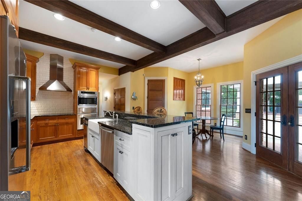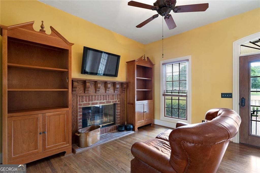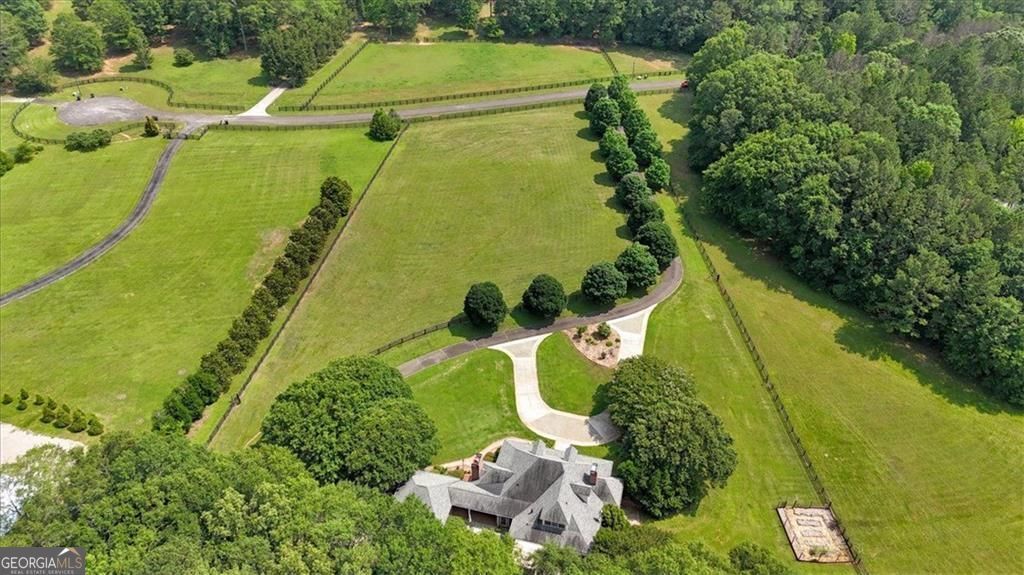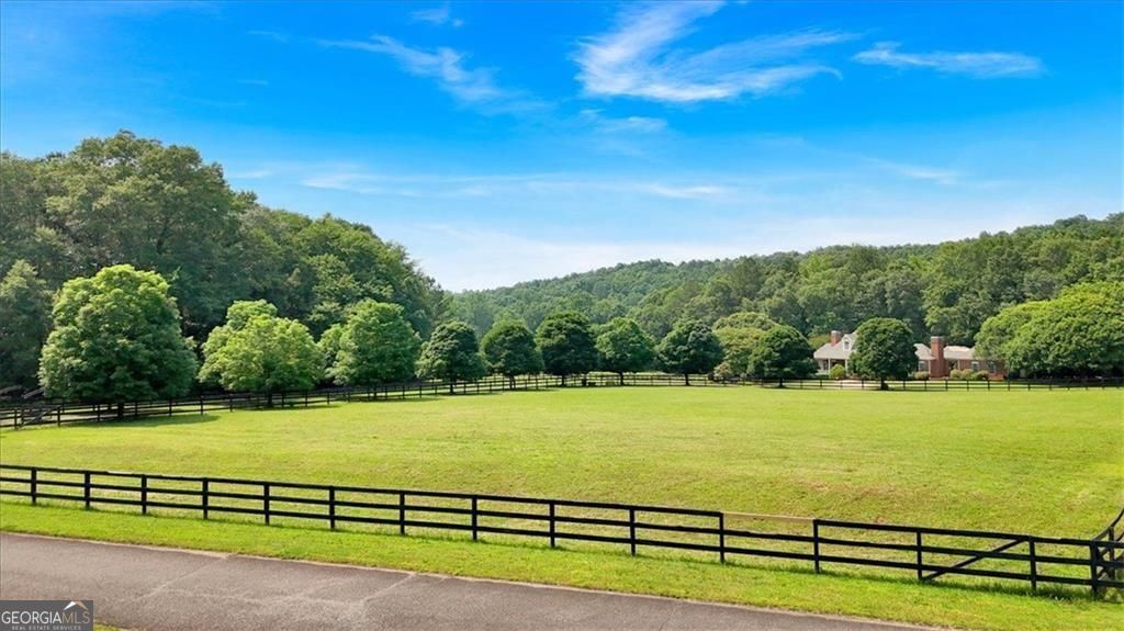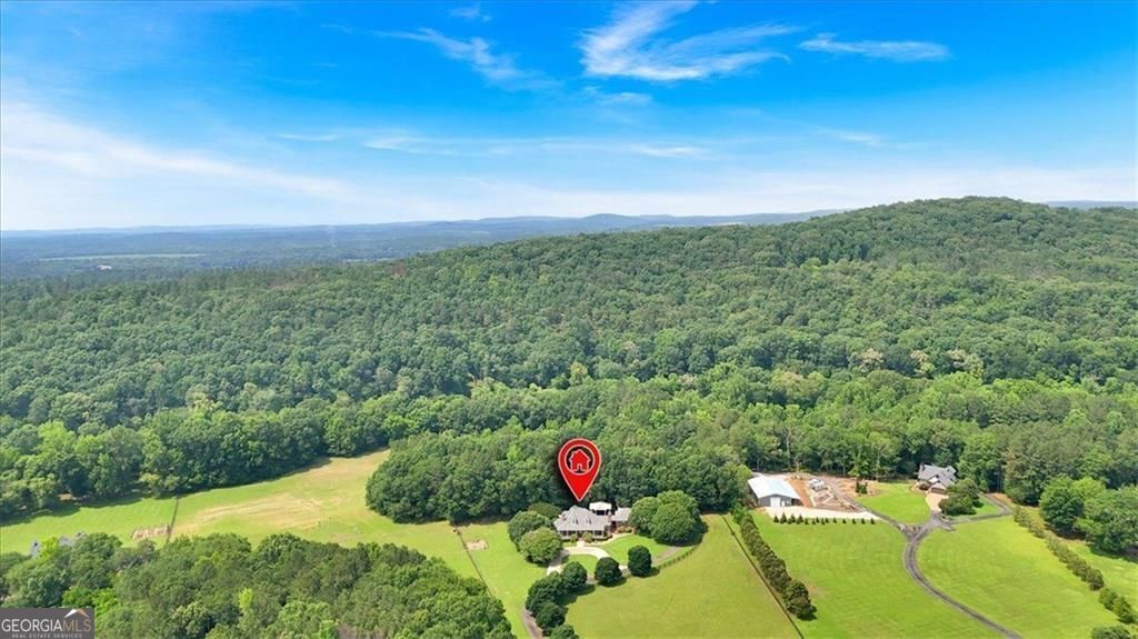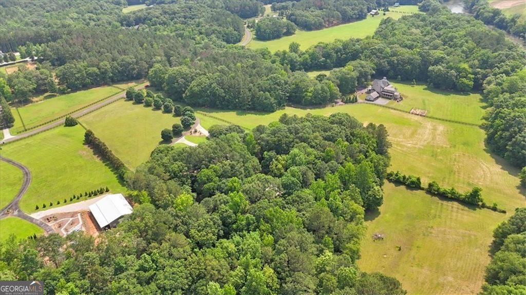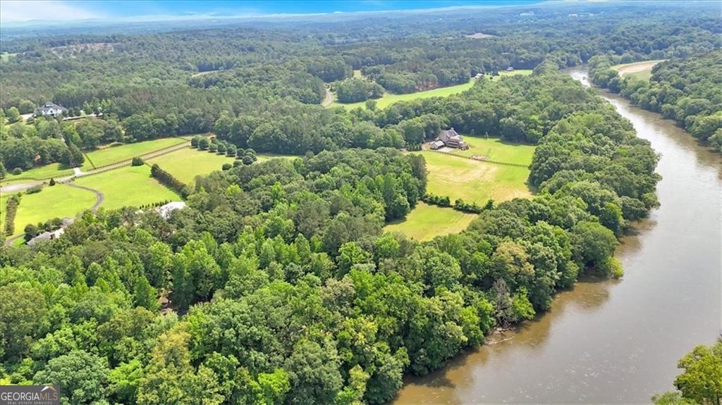 An extraordinary opportunity to own a legacy estate offering over 900 feet of Etowah River frontage, tucked behind dual gates in one of Bartow County's most prestigious equestrian communities. A classic wraparound porch introduces a light-filled interior with a dramatic two-story foyer, formal dining room, and inviting fireside living spaces. The chef's kitchen is thoughtfully designed with commercial-grade appliances, custom cabinetry, stone countertops, a generous center island, and exposed beams, flowing into a keeping room and breakfast nook ideal for everyday living and entertaining. The main-level primary suite is a peaceful retreat featuring a spa-inspired bath and custom closets, while a richly wood-paneled study with fireplace provides a warm and versatile space for work or relaxation. Upstairs, two en-suite bedrooms and a spacious bonus room complete the main residence. Outdoor living shines with a recently upgraded pool, expansive stone patio, pavilion with chandelier, and Vikings Spa hot tub. A separate guest house, styled as an upscale hunting lodge, offers vaulted wood ceilings, an open living area, two bedrooms, a full bath, and laundry, perfect for guests or staff. Equestrian amenities include a well-appointed barn with three stalls, tack room, hay loft, and fenced pastures, complemented by a climate-controlled two-car garage, adjacent two-car carport, and a serene estate setting convenient to Rome, Cartersville, and metro Atlanta.