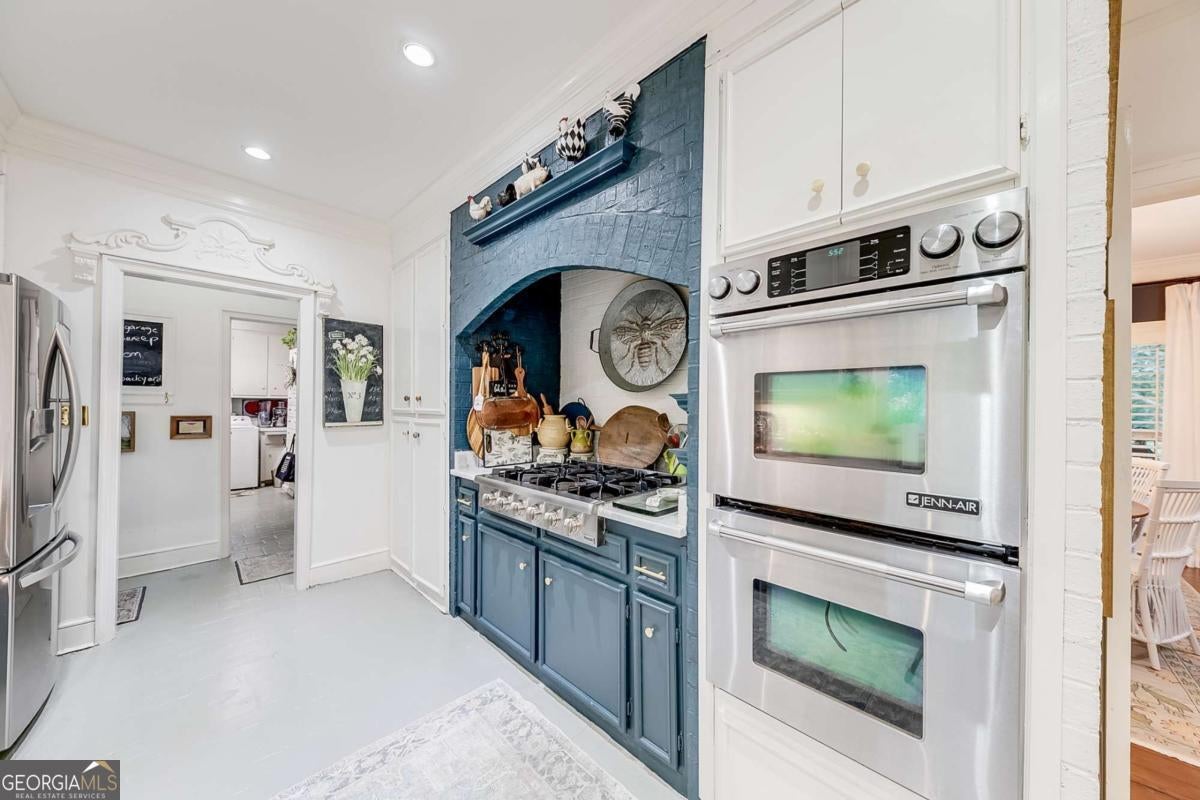 Where do we begin? Famed UGA basketball coach Hugh Durham built this remarkable home as his personal estate in 1979. Now offered by only its third owner, this Southern classic has been painstakingly restored and is simply breathtaking. Set on nearly 4 private acres, the property is accessed via a long, winding driveway from Old Jefferson Road, with additional access from Walton Creek Road. With AR zoning and no HOA, horses and stables are permitted. A circular driveway and side-entry two-car garage provide ample parking. Lush, opulent landscaping-fully irrigated by well-fed sprinklers-sets the tone as you enter "'tween the hedges," a nod to the original owner and UGA. A brick walkway leads to the double-balconied facade and welcoming grand foyer. Inside feels straight from the pages of Southern Living, featuring wide heart-of-pine floors, rich custom millwork, and deep moldings throughout. Formal living and dining rooms flank the foyer and flow into the expansive great room with a wood-burning fireplace and wainscoting. A wet bar with granite counters, sink, built-ins, and refrigerator nook sits adjacent, along with one of two main-level powder rooms. The chef's kitchen is accessible from the foyer, dining room, and great room, and features brick flooring and accents, marble countertops, high-end appliances, and custom built-ins. A second half bath and large mudroom/laundry room with abundant storage complete the main level. A full-length rear deck overlooks the inground pool and gardens. Upstairs, the owner's suite offers exceptional closet space and a spa-like bath with steam shower/sauna, deep Jacuzzi tub with its own water heater, and custom cabinetry. Two additional bedrooms and baths complete the second level. The upper balcony, accessible from the owner's suite or front bedroom, is ideal for morning coffee. The third floor features a large private suite with sitting area, bedroom, and ensuite bath. The terrace level includes an incredible in-law suite (approx. 1,500 sq ft per owner) with a full kitchen, walk-in pantry, second laundry, bedroom, bath, expansive living/sunroom areas, and a stone fireplace. French doors open to the patio and pool area. Outdoor spaces include curated garden "rooms," roses, peonies, fruit trees, raised vegetable beds with deer fencing, and easy-care irrigation. The pool and sprinklers are well-fed. Additional features: approx. 5,750 sq ft, four gas HVAC systems (three new with UV light), two gas water heaters, all windows and appliances replaced, recently inspected roof, and central vacuum. Truly remarkable in every way-be the one to make this exceptional estate your next chapter