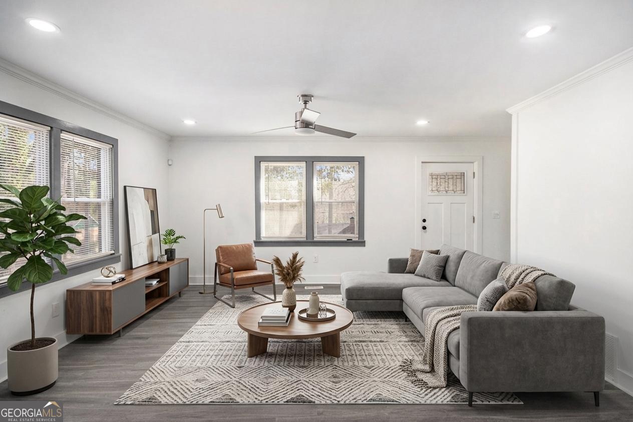 A true turn-key ready home, this property offers a fully updated interior and exterior full of modern touches and features. The home truly boasts a new home feel, offering all new plumbing, new windows, new roof, new driveway and sidewalks, new tankless water heater, new insulation, new upper HVAC unit, new flooring throughout, new appliances, new cabinets, new LED fixtures, updated electrical, as well as fresh paint. With 4 bedrooms and 3.5 bathrooms this home has plenty of space available while still offering space for a large den, dining area, as well as potential home office. Perfect for entertaining, the large den and dining area sit open to the completely redone kitchen complete with quartz countertops, new cabinetry, as well as all new black appliances that tastefully tie into the color palette of the space. Every bathroom is updated, featuring stylish new vanities, fixtures, LED touch mirrors with defogging features, glass showers, and tile flooring. Multiple faucets even include LED illumination based on the water temperature as well as the master bath including a fan that doubles as an LED speaker. A new front porch, back porch with walkout access from the kitchen, and fully fenced backyard make it easy to enjoy the perks of sitting on such a large lot for the area. The new, lengthy driveway allows for plenty of access for vehicles and parking as well. Placed in an ideal location, this home sits just minutes from downtown Atlanta and the many amenities and entertainment options the city has to offer. The close proximity to I-85 also makes any and all commuting that much easier and more convenient.