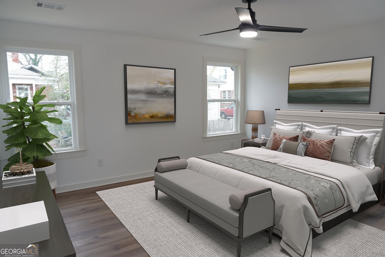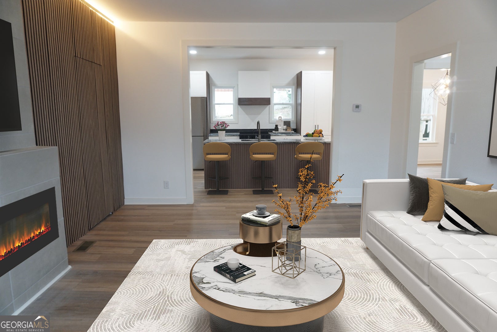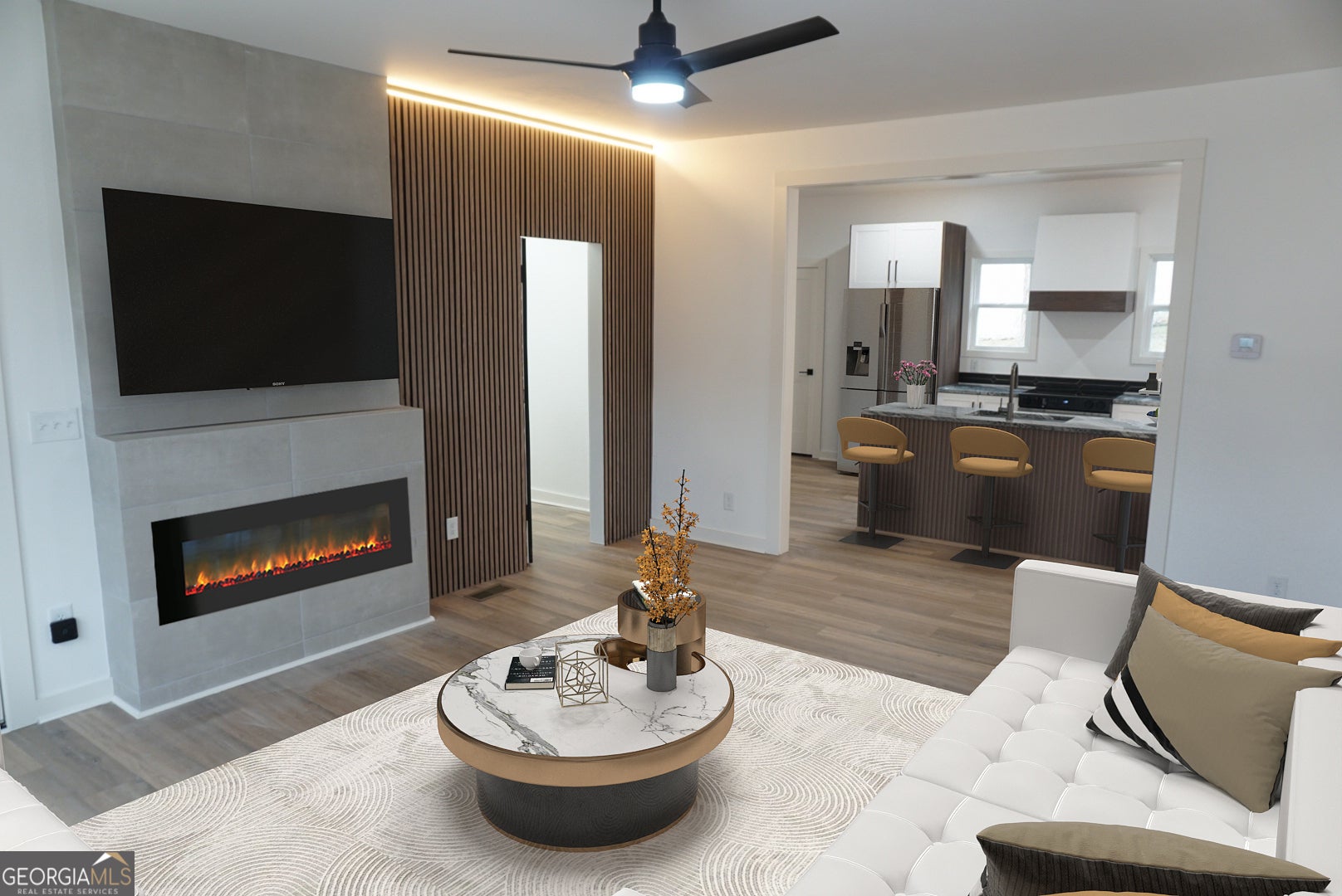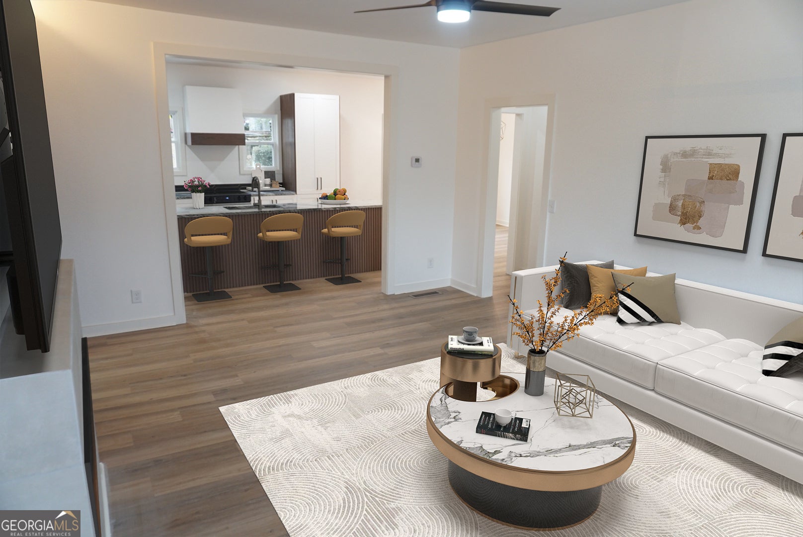 Welcome to this thoughtfully reimagined beauty; where historic character meets modern living. Featuring 4 bedrooms, 3 full baths, and a flexible bonus room that can serve as a playroom, pet room, office, or storage space, this two-story residence is designed to adapt to the rhythm of everyday life. Located at the meeting point of West End and Westview, the home offers walkable access to the Westside Beltline Trail and the vibrant Lee & White district-a growing hub with restaurants, breweries, a food hall, a park, and cultural spaces enjoyed by families, cyclists, runners, and pets. Interior highlights include a spacious open living area with great natural light, a kitchen with a sculptural 10-foot island wrapped in vertical slatted paneling that adds texture and architectural interest, all-new stainless-steel appliances, and LVP waterproof flooring throughout for durability and ease. The main level features a full bedroom with an adjoining bath-ideal for an office, guest suite, or multigenerational living-along with a bonus flex room off the living area suitable for a playroom, pet room, storage, or hobby space. The primary suite offers a bright and peaceful retreat with a soaking tub, separate walk-in shower, dual vanities, and a walk-in closet with natural light. For long-term peace of mind, the home includes all-new electrical, HVAC, plumbing, and roof, along with a smart thermostat. Upstairs are two well-sized bedrooms and a full hallway bath with modern finishes. Outdoor living includes a large porch for morning coffee or afternoon downtime and a spacious backyard ready for gardening, play, or entertaining. The location provides close proximity to a neighborhood experiencing thoughtful growth-rooted in community, history, and creativity-with immediate access to the West End Beltline Trail, the Lee & White food and brewery district, nearby parks, shops, and daily essentials. Seller to provide appliance allowance with the sale. VIRTUAL STAGING ONLY.