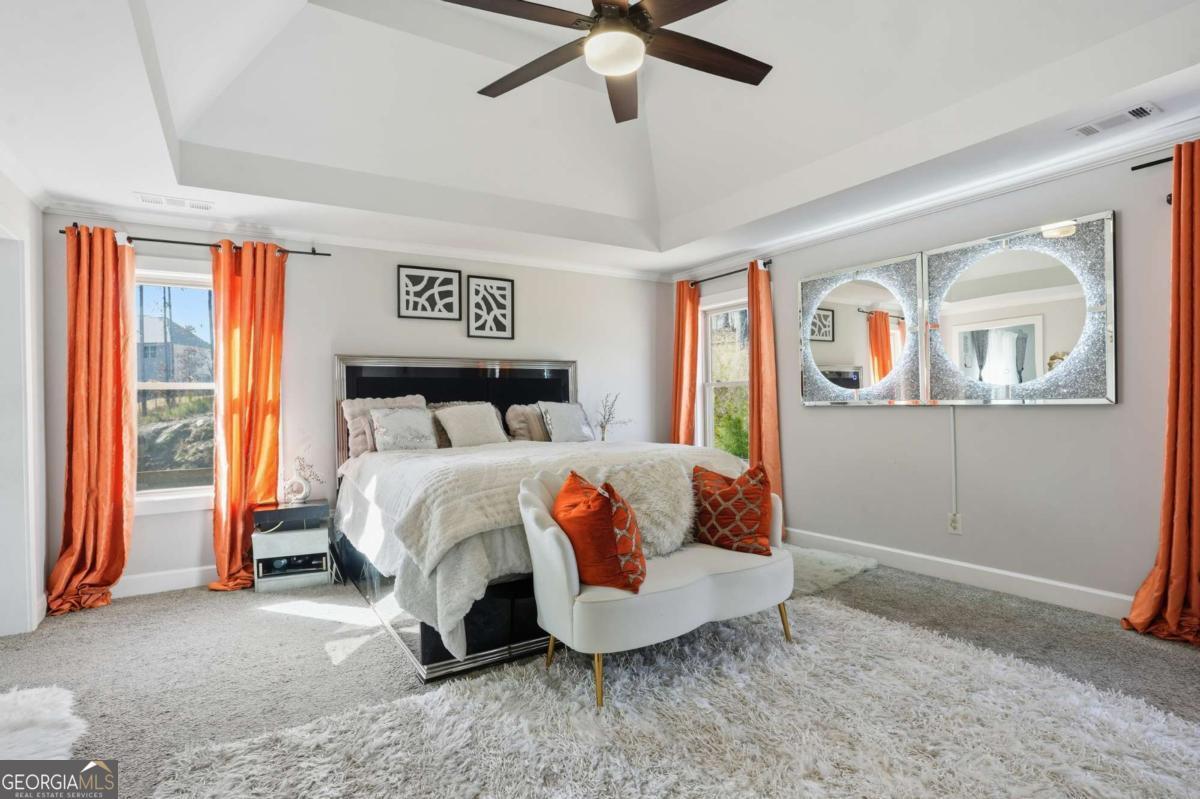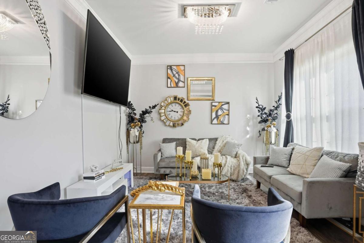 Welcome to 5663 Eternal Drive, a stunning retreat in one of Atlanta's premier communities. This almost-new five-bedroom, four-bath home offers the perfect blend of elegance, comfort, and convenience. Step into the grand two-story foyer filled with natural light and rich hardwood floors throughout. The elegant dining room with chic accent walls is perfect for entertaining, while the spacious living area with fireplace creates a warm and inviting gathering space. The beautifully appointed chef's dream kitchen features generous counter space, modern finishes, and a layout that keeps you connected to the heart of the home- perfect for both everyday living and hosting. A main-level guest suite offers flexibility for visitors or multi-generational living. Upstairs, the owner's suite is a true sanctuary featuring a spa-like bath designed for relaxation. Additional bedrooms are generously sized, providing comfort and privacy for everyone. Enjoy outdoor living in the backyard-ideal for relaxing, entertaining, or creating your own private oasis. Select furnishings may be available for purchase, offering a convenient, move in ready option for the next owner. Located in a quiet cul-de-sac within a resort-style community, residents enjoy access to a pool, tennis courts, gym, and clubhouse. Plus, you're just minutes from major highways, shopping, dining, and Hartsfield-Jackson Airport. Don't miss your opportunity to own this exceptional home-schedule your private tour today.