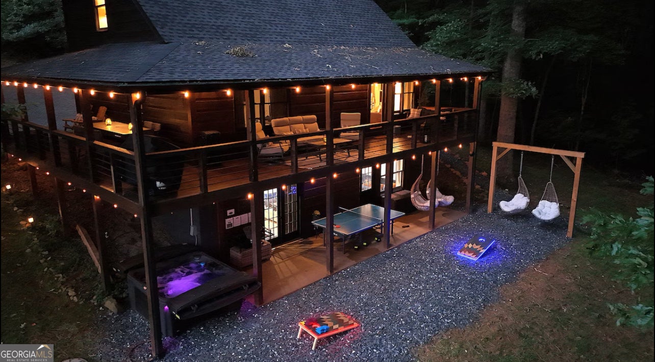 Tucked into the woods of Blue Ridge, Georgia, 120 Brookhaven Trail is a warm, welcoming cabin that feels like home the moment you arrive. This 4-bedroom, 3-bathroom retreat sits on nearly two acres of quiet land, with tall trees all around and a peaceful feeling you can sense right away. Inside, tall ceilings and hardwood floors make each room feel big and bright. A cozy stone fireplace in the living room invites you to relax on cool mountain nights, while the large Welcome to 120 Brookhaven Trail, a peaceful cabin tucked away in the quiet woods of Blue Ridge, Georgia. This warm and welcoming home has 4 bedrooms and 3 bathrooms, and it sits on almost two acres filled with tall trees and gentle breezes. From the moment you arrive, you feel calm, happy, and right at home. Inside, the tall ceilings and shiny hardwood floors make everything feel open and bright. The living room has a big stone fireplace, perfect for staying warm on chilly mountain nights. The kitchen is big too, with plenty of room to cook, eat, and laugh together. Downstairs, the finished basement gives you even more space to enjoy. There's a big media room for watching movies, a bar area for snacks and fun, and a quiet corner to relax and rest. Step outside and you'll find a private outdoor jacuzzi tub, hidden among the trees. It's the perfect place to soak and look up at the stars. And now, there's something new and special-a peaceful pathway that leads right to a quiet, serene creek. It's a lovely place to sit and listen to the water, think about happy things, or just enjoy the sounds of nature. This home has also been a successful short-term rental, so it's not just a cozy retreat-it's a smart investment too. It can be sold fully furnished, which means you can start enjoying it right away. If you love how it looks, the furniture can also be bought to keep that warm and cozy feeling. With all the space inside and out, and with nature surrounding you in every direction, this cabin is ready to be your happy place in every season-whether you're looking for quiet mornings, fun evenings, or peaceful nights by the creek.