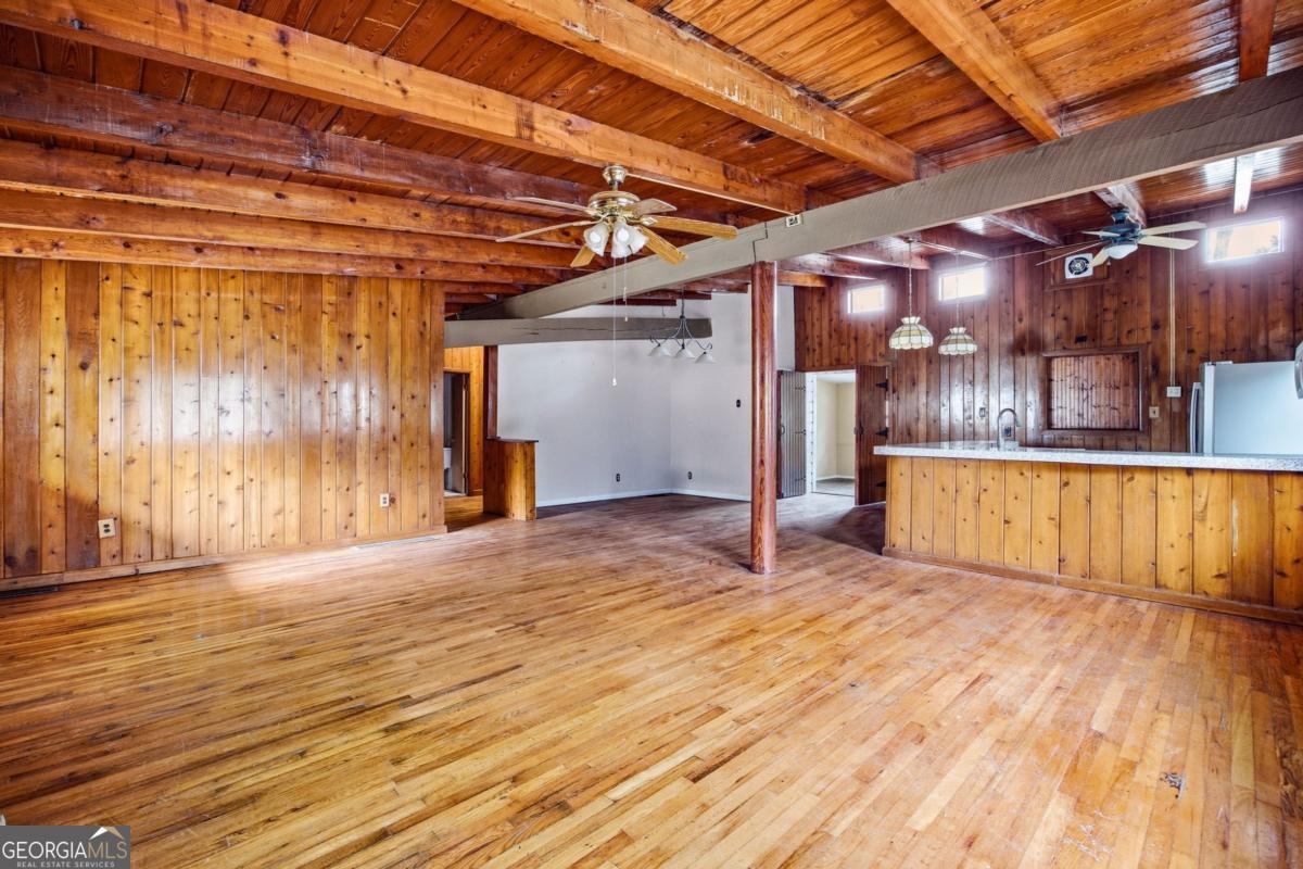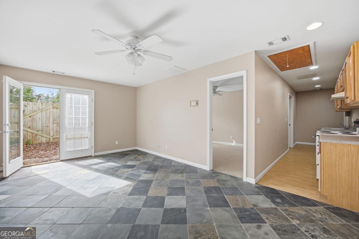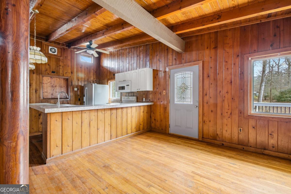 Rare Lake Allatoona opportunity with no HOA and a private deeded dock located just a short walk from the house. This unique Woodstock property offers exceptional flexibility and lake lifestyle living. The main home features three bedrooms and two and a half bathrooms with soaring vaulted ceilings, abundant natural light, and a stunning fireplace that anchors the main living space. The open layout provides comfortable flow for everyday living and entertaining. The property also includes a separate apartment offering one bedroom, a flex room: ideal for an office, bonus room, or guest space, a full kitchen and laundry area. The partial basement offers a full bathroom and room for expansion. This setup is perfect for multi-generational living, guests, or potential income opportunities. Enjoy easy access to Lake Allatoona with a dock permit already in place, which is required to be renewed every five years. With no HOA restrictions and unique location, this property offers endless possibilities as a full-time residence, weekend retreat, or investment opportunity, all just minutes from downtown Woodstock shopping, dining, and entertainment.