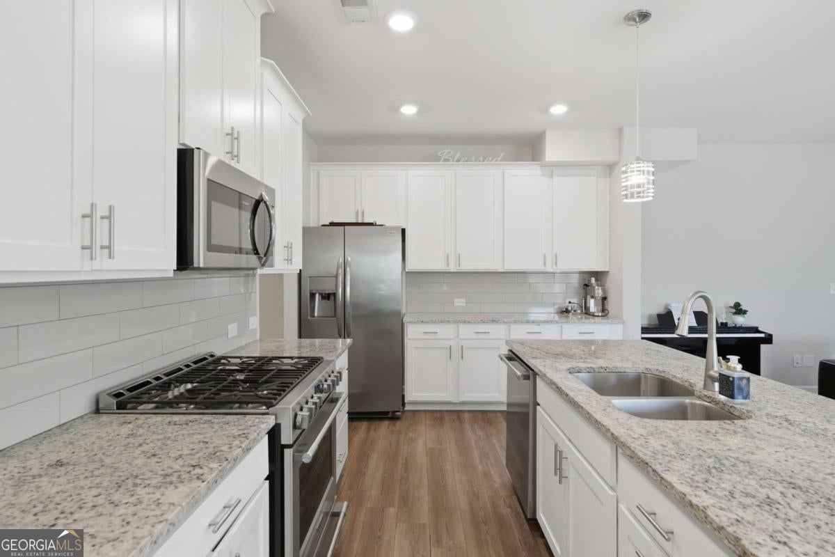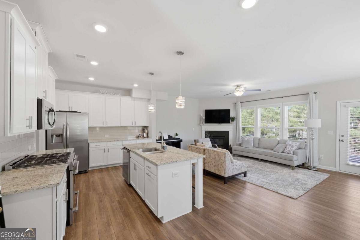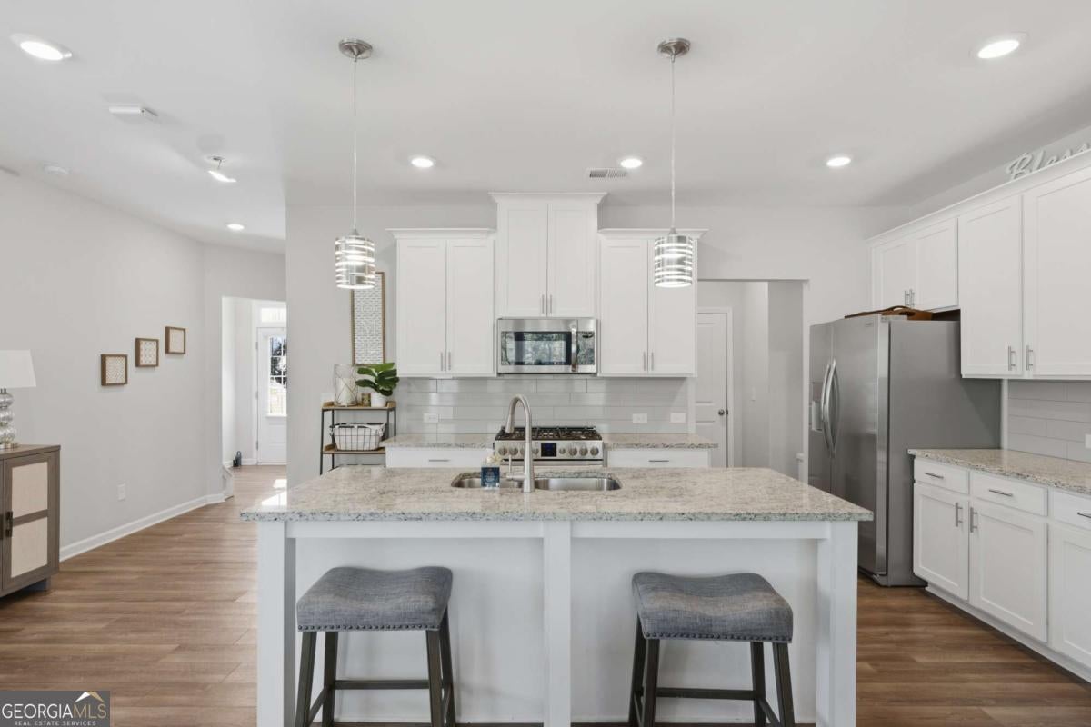 Welcome to Bryton Trace, an intimate enclave of just 42 townhomes ideally located in the heart of Cumming, less than two miles from GA 400, The Collection at Forsyth, and Halcyon. Enjoy the convenience of award-winning Forsyth County schools, premier shopping, dining, and entertainment all just minutes from your doorstep. This beautifully designed, move-in ready end unit townhome offers 4 spacious bedrooms, 3.5 bathrooms, and a flexible bonus space perfect for a home office, playroom, or media room. The open-concept main level is thoughtfully designed for modern living and effortless entertaining, featuring a chef-inspired kitchen that flows seamlessly into the family room with a cozy fireplace. The kitchen is a standout, showcasing natural stone countertops, an oversized island with sink and pull-out trash bin, breakfast bar seating, a generous walk-in pantry, and stainless steel appliances including a gas range, refrigerator, and dishwasher. Abundant natural light highlights the home's stylish finishes throughout. Upstairs, the luxurious owner's suite serves as a private retreat with an oversized walk-in closet, double vanity, garden tub, and separate shower. A convenient second-floor laundry room adds everyday ease. Additional features include a mudroom entry from the two-car garage, smart lock entry, and modern smart home technology for added comfort and security. With its thoughtful layout, upscale finishes, and unbeatable location, this exceptional townhome offers the perfect blend of style, functionality, and convenience-an ideal place to call home.