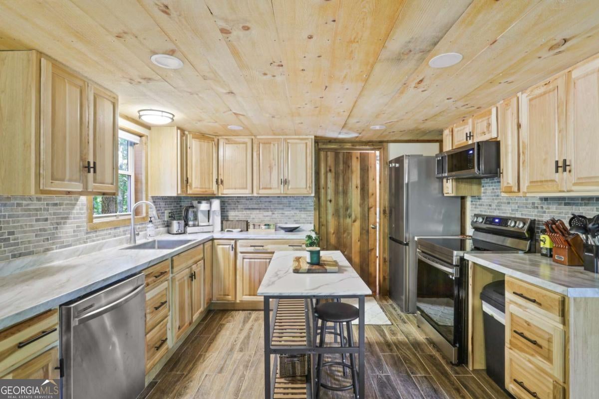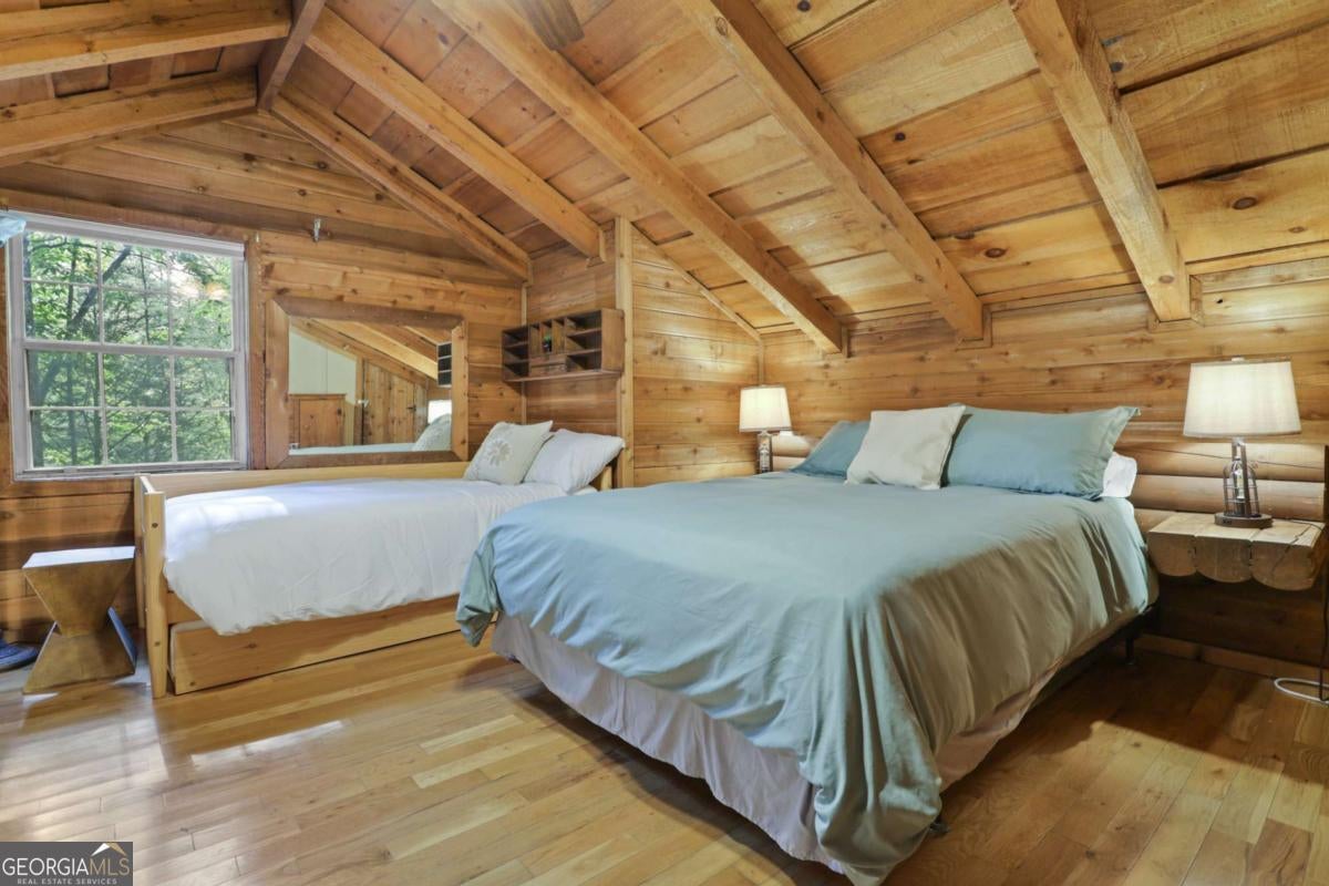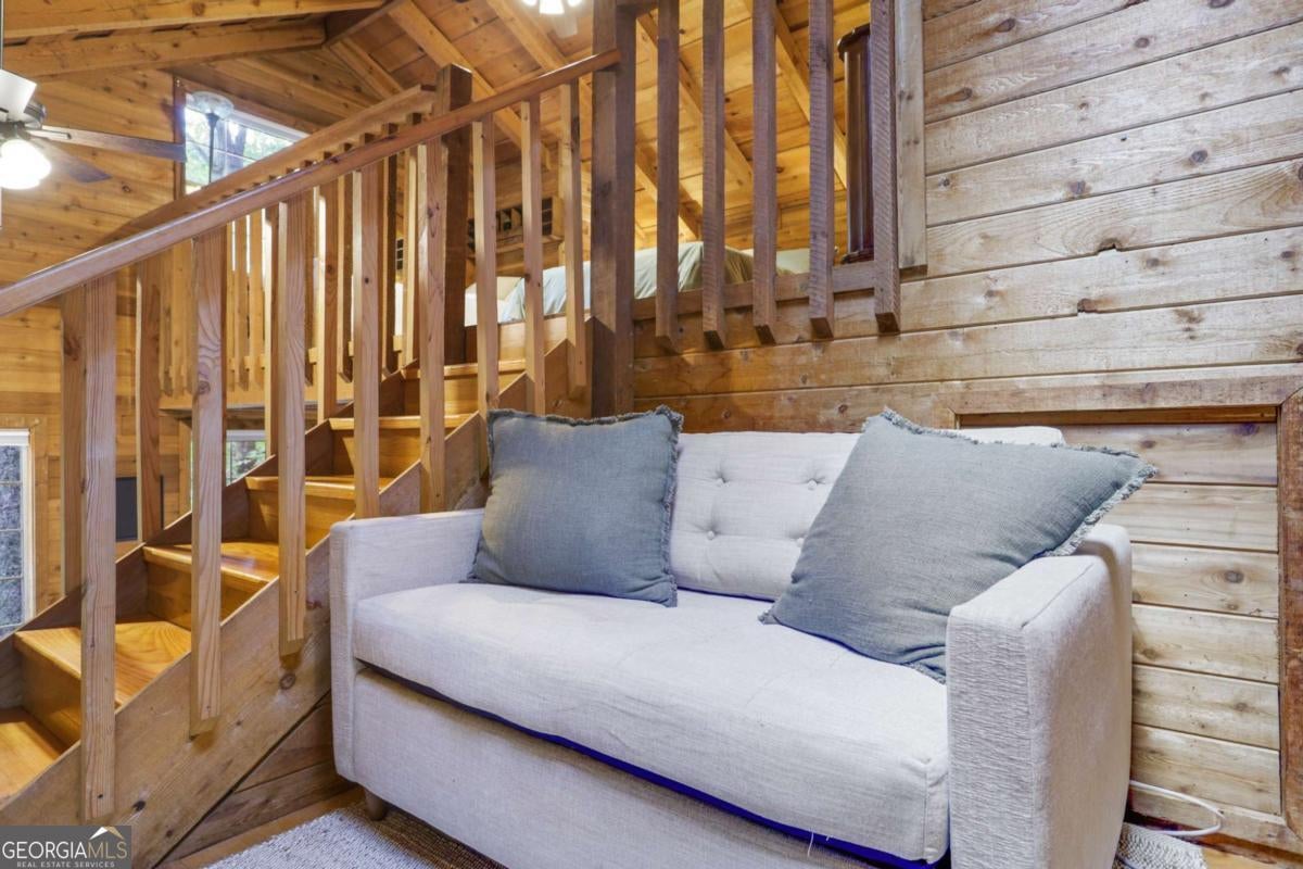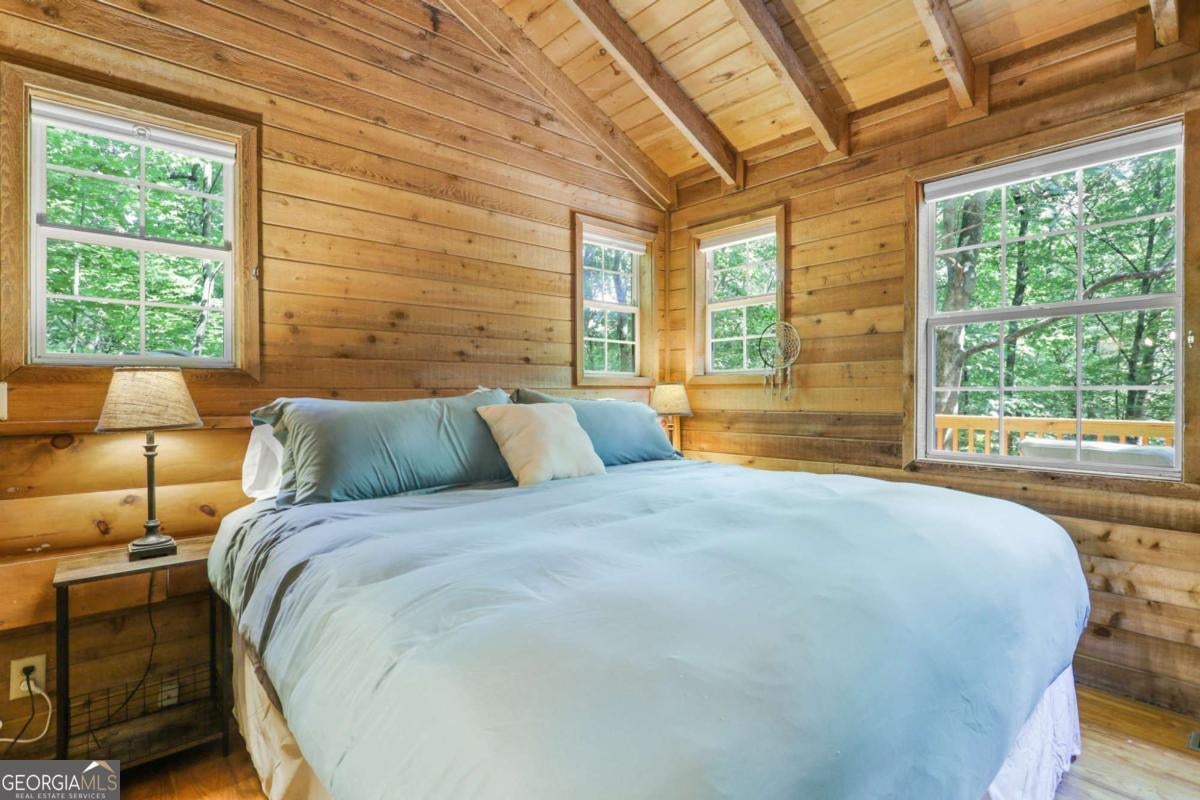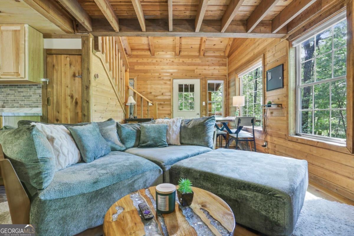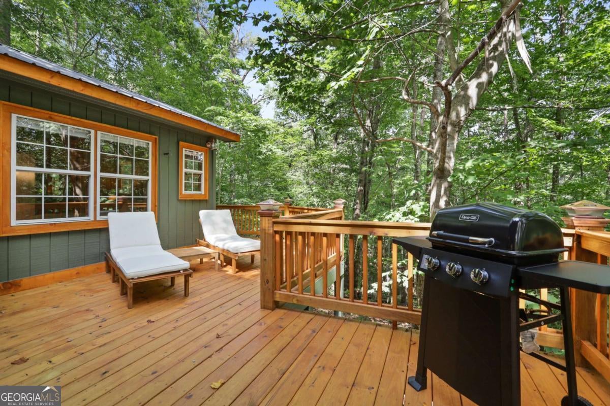 Escape to serenity with this enchanting retreat now available for lease! Nestled in the tranquil woods just minutes from downtown Blue Ridge, this fully furnished haven perfectly blends natural beauty with modern amenities. Step into a cozy yet spacious home featuring 2 inviting bedrooms, 2 full bathrooms, an office study with a picture-window view, and open layout designed for relaxation and inspiration. The expansive deck surrounded by trees is your front-row seat to breathtaking forest views-perfect for morning coffee, al fresco dinners, or simply soaking in the peaceful surroundings. Unwind after a long day in the bubbling hot tub, sip a glass of wine by the propane fire-pit, cook out on the BBQ or enjoy the thoughtfully curated interior with plush beds and smart TVs and high-speed wi-fi. The kitchen has been completely remodeled with all new appliances and is fully stocked for those who like to cook. Cabin also has a brand new water heater, HVAC, nest remote thermostat and refurbished hot tub! The neighborhood has walking paths and a picturesque pond down the road. Whether you're looking for a creative escape, extended family vacation or a quiet place to call home, this retreat is move-in ready and waiting for you. Don't miss this rare opportunity-schedule your tour today and start living the dream!