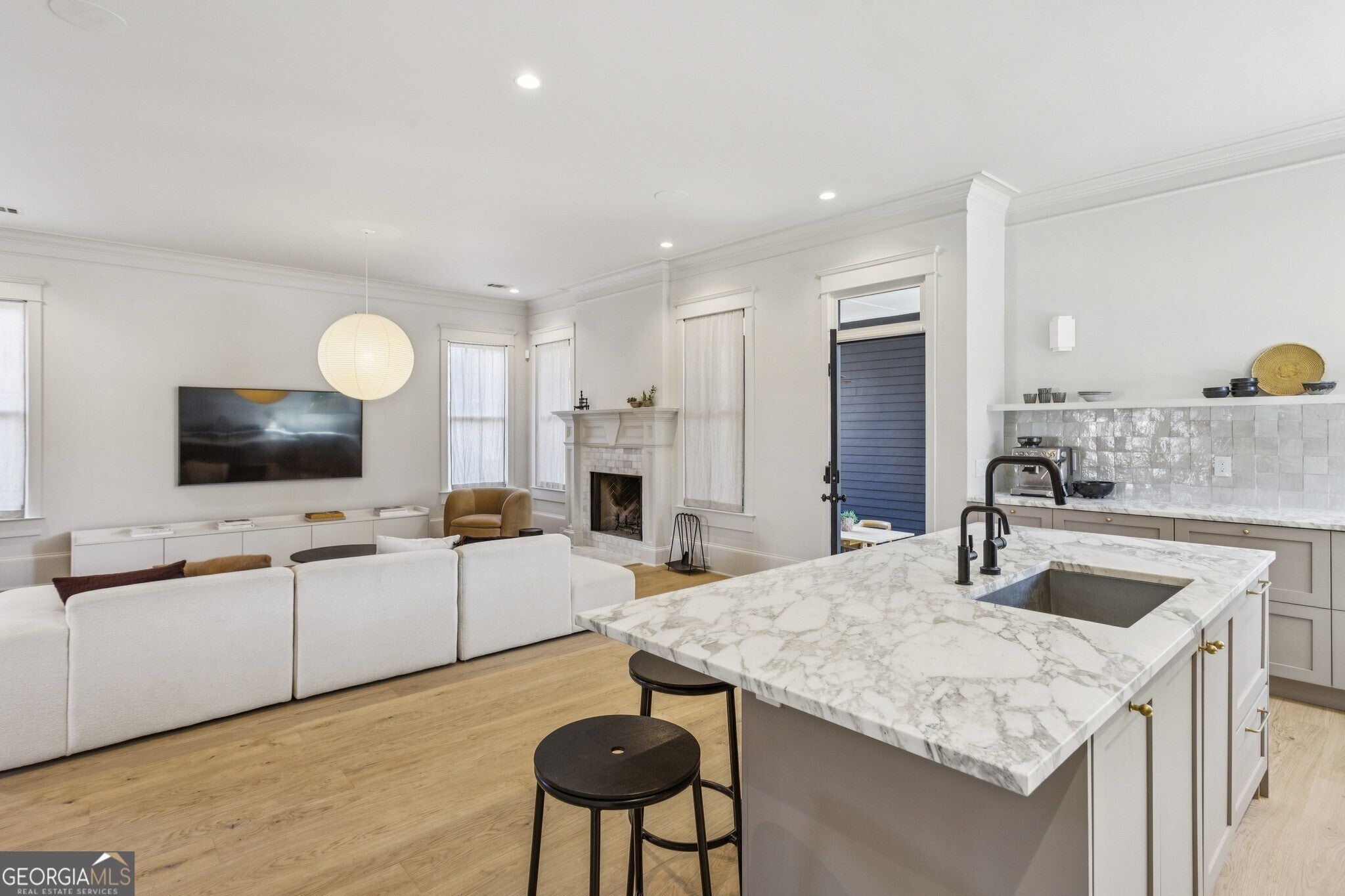 An Exceptional Opportunity on one of the Best Streets in Old Fourth Ward, this Gorgeous, Fully Updated Craftsman blends Classic Architecture with Elevated, Design-Forward Finishes curated by a West Coast-based designer. From the moment you step inside, brand-new Wide-Plank White Oak Hardwood Floors by Stuga, 10-Foot Ceilings, Bright White Walls, and detailed Crown Molding and Wainscoting set the tone for a home that feels both refined and welcoming. The Open-Concept Main Level is designed for effortless entertaining, anchored by a light-filled Fireside Living Room with a Marble-Tiled Wood-Burning Fireplace and thoughtfully selected Designer Lighting that flows seamlessly into the heart of the home. The Chef's Kitchen is a true showstopper, featuring Calacatta Vagli Marble Countertops, a Large Island, Custom Cabinetry, Floating Shelves, a Gas Range, Fisher & Paykel Appliances, and a Handmade Zia Tile Backsplash with artisan-crafted ceramic tiles that add texture and warmth. A Butler's Pantry with Marble Countertops and a Beverage Fridge connects the Formal Dining Room to the kitchen, while a Dedicated Home Office with Custom Built-Ins provides a serene work-from-home retreat. Upstairs, the Primary Suite is a Chic Sanctuary with space for a Sitting Area, Statement Lighting, and a Spa-Like Bathroom showcasing a Soaking Tub, Tiled Walk-In Shower, Marble Vanity, Custom-Made Mirrors, Unlacquered Brass Fixtures designed to patina beautifully over time, and a Large Custom Walk-In Closet. Spacious Secondary Bedrooms and Beautifully Designed Bathrooms complete the upper level. Outdoor living is just as impressive with a Fully Screened Brick Patio featuring a Ceiling Fan for year-round dining, Multiple Covered Balconies, a Turfed Yard, and Fully Fenced Grounds an incredibly rare Intown offering. A Two-Car Garage, Gated Driveway, and Generous Parking add everyday convenience. Custom European Linen Curtains throughout expertly tailored and made to order further elevate the home's cohesive, designer aesthetic. Perfectly positioned just moments from the Atlanta BeltLine, Historic Fourth Ward Park, Ponce City Market, Krog Street Market, and Inman Park Village, with easy access to neighborhood favorites including A Mano, Two Urban Licks, New Realm Brewing, Finca to Filter, and the Tony Hawk-Designed Skate Park at the end of the street, this home delivers the very best of Intown Living where Thoughtful Design, Walkability, and Lifestyle come together effortlessly.