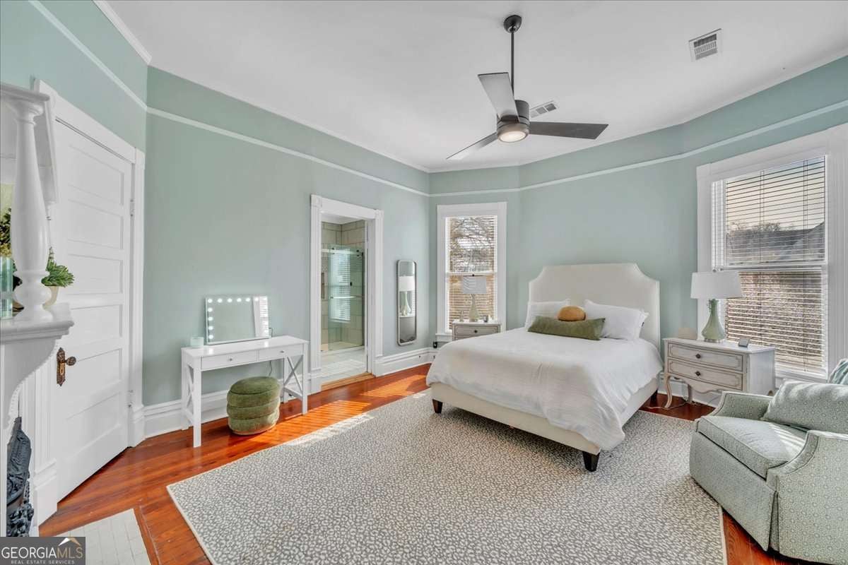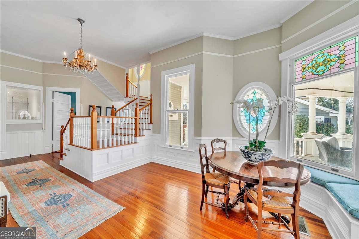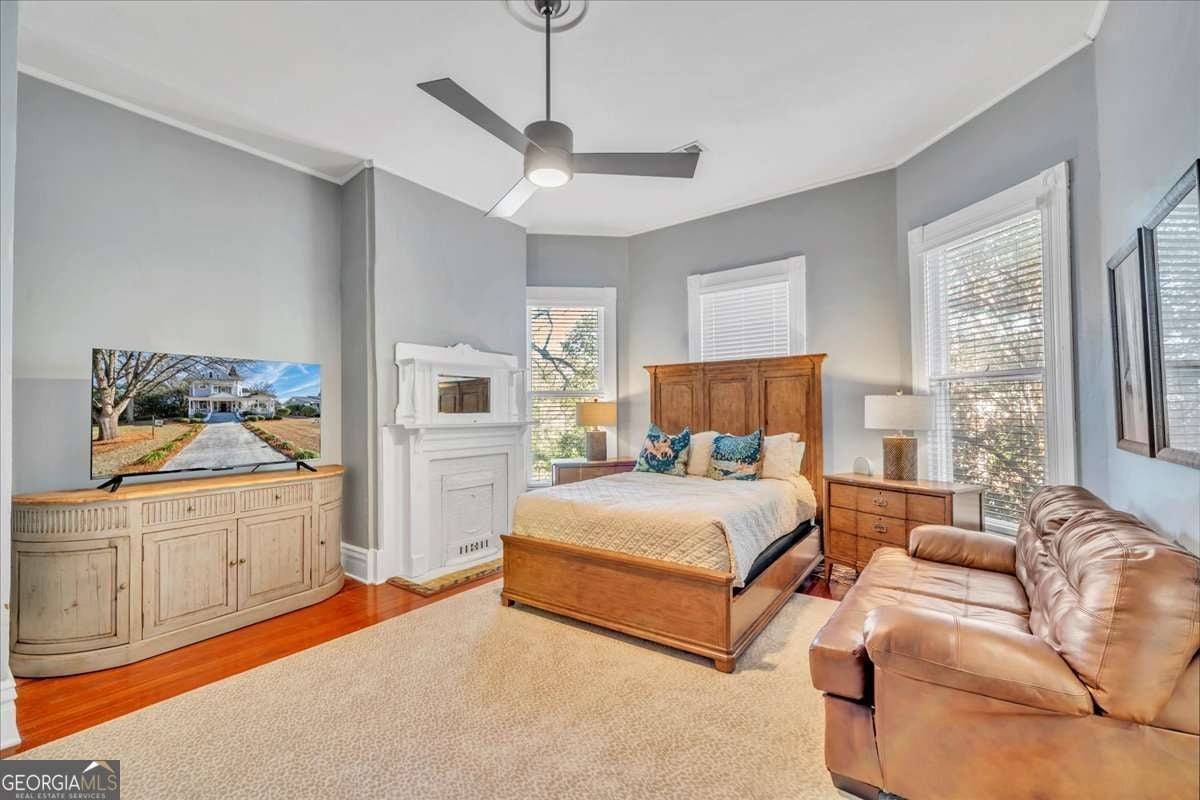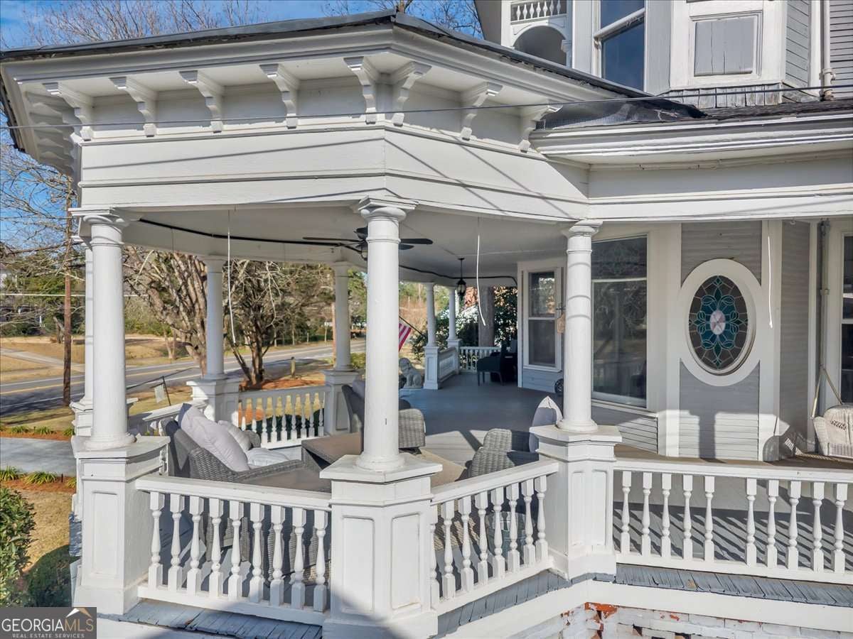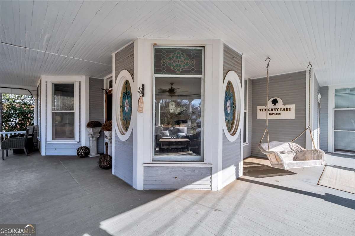 Step into timeless Southern grace with this beautifully remodeled Victorian historic home known as the "Grey Lady" in Americus. Thoughtfully updated for today's lifestyle while preserving its rich character, this residence showcases original hardwood floors, stained glass windows, decorative fireplaces, & thoughtful architectural details that exude period charm. Inside, enjoy fresh interior paint throughout, updated bedrooms, bathrooms, kitchen, dining room, & much more making everyday living effortless. The spacious master bedroom conveniently located on the main floor offers privacy, while four to five additional bedrooms upstairs-including an all-new bonus room is perfect for extra sleeping space giving flexibility for family, guests, or rental use. Dual staircases add to the home's character and function, while the newly constructed covered back porch is ideal for relaxing or entertaining outdoors. The asphalt driveway provides easy access and ample parking. With the professional interior design & offered mostly furnished, this home allows you to move right in or continue its past success as a rental investment. Experience the perfect blend of historic charm and modern living in this inviting and character-filled home.