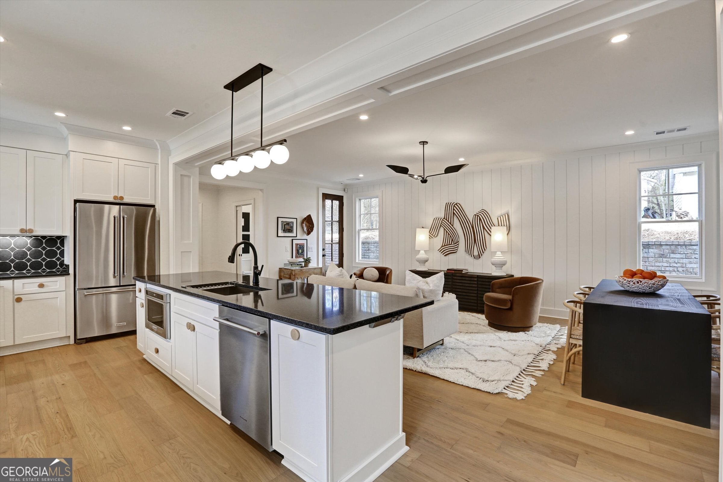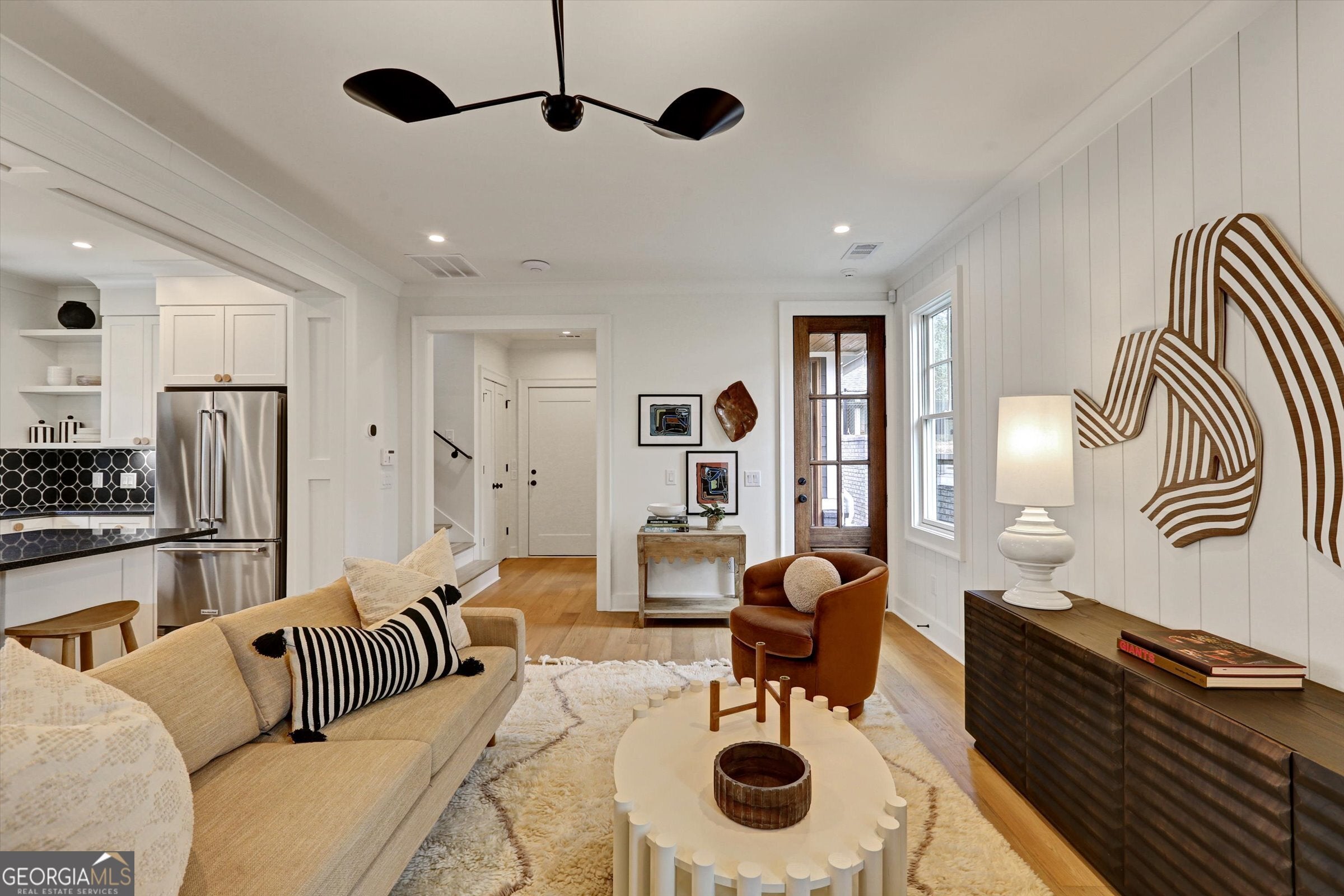 724 Bradford, a beautiful 3 bedroom, 2 1/2 bathroom townhome with classic cottage appeal. The entry welcomes you with statement lighting and the texture of paneled walls. The spacious Living Room with space for dining and relaxing. Accent wall with paneling and center statement lighting. The bright kitchen with white cabinets offering plenty of storage, wall sconces and the backsplash in a striking charcoal slate and stone counter tops. All stainless steel Kitchen Aide appliances including counter depth refrigerator. Charming Powder Room with warm wood accent wall, marble vanity and black & white checkered tile floor. An upstairs Primary suite offers picture molding, statement lighting and natural light. The Primary bathroom is in a black mosaic with ebonized wood vanity and marble countertop. A Jack and Jill bathroom with warm wood cabinets and large format black tile floors between the two additional bedrooms. Close to Downtown Gainesville Square and all your dining and shopping. Make this your NEW HOME!