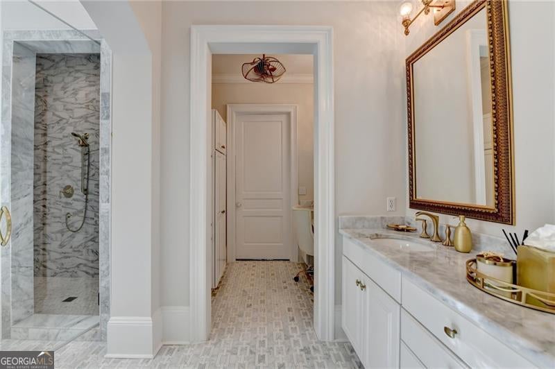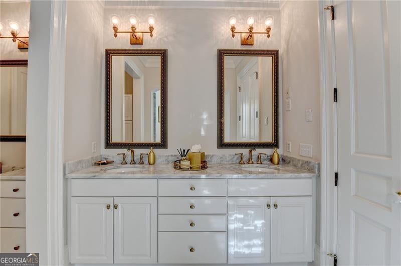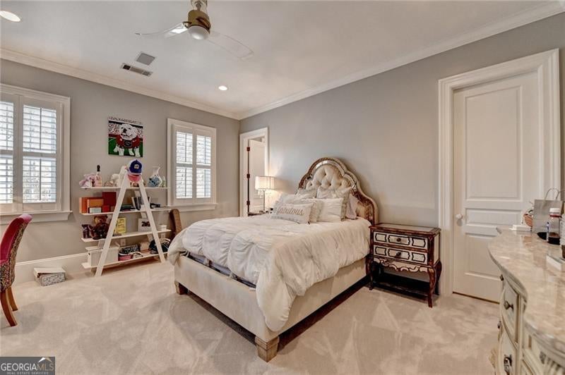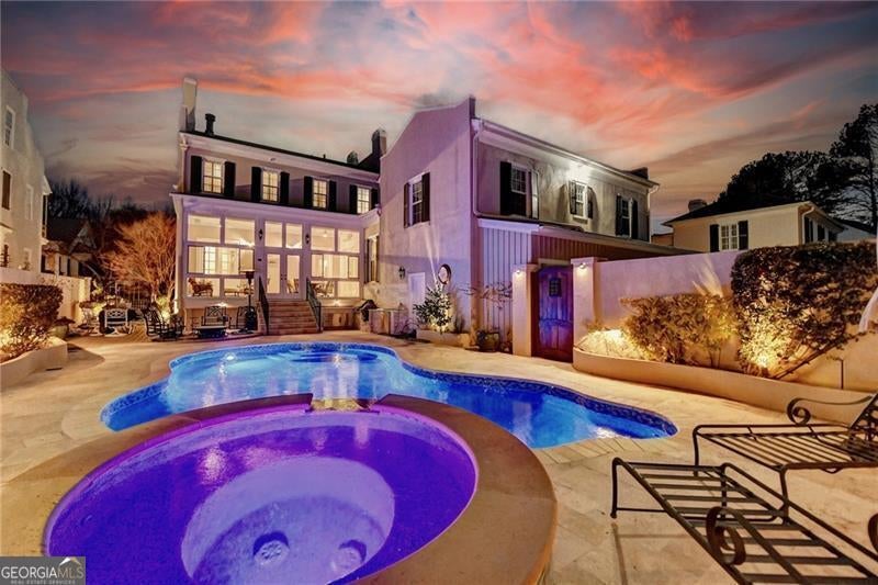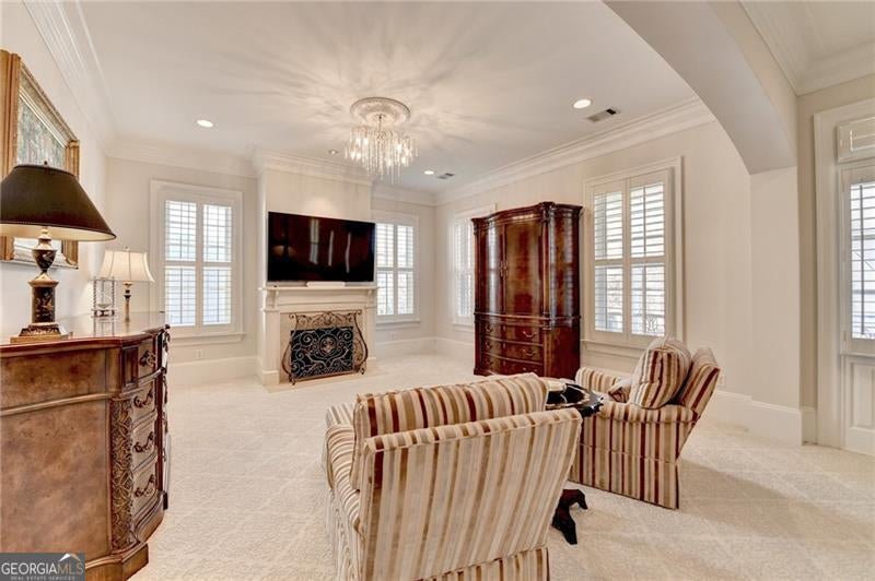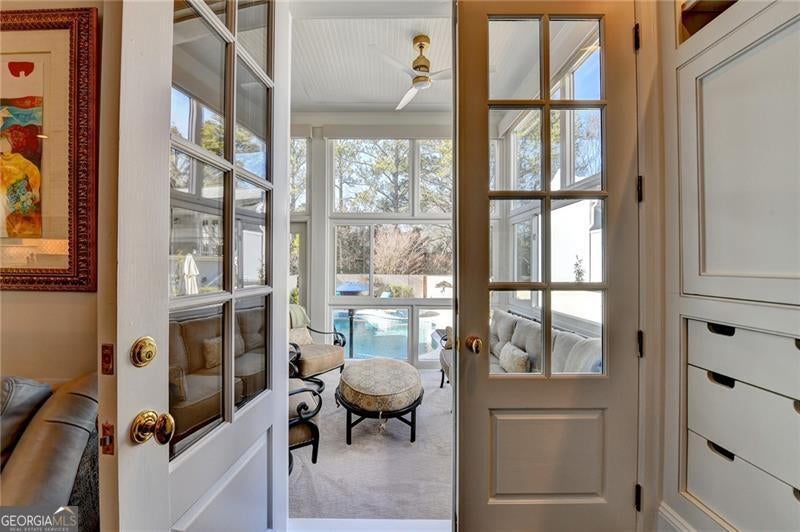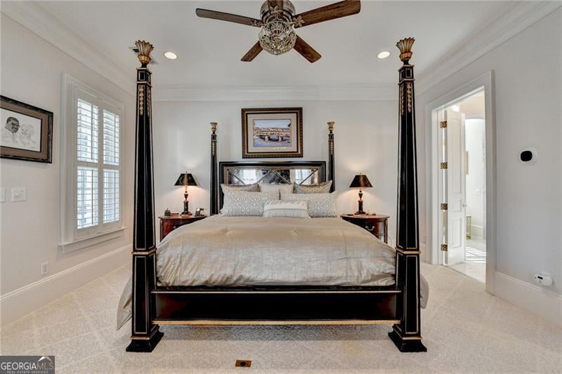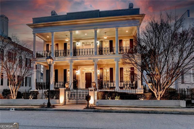 Finally the essence of modern luxury, stunning architecture and convenience meet exquisite historical charm in this drop dead gorgeous and totally renovated one of a kind estate. The seller spent over $400,000 making this home a show stopper! It is Turn Key and ready for your happily ever after. This elegant 1849 Greek Revival Center Hall reproduction is a replica of the Payne-Strachan House located on First Street in the Garden District of New Orleans. All of the homes in the exclusive, gated community of Sweet Bottom Plantation on the Chattahoochee River were designed in the same timeless and graceful New Orleans style. Feel yourself unwind upon entering the community with streets lined with lovely gas lanterns, manicured lawns and neighborhood green space. Before you even step foot into the home, you will fall in love with deep double front porches, beautiful wrought iron gate and a lovely fountain with travertine courtyard on the side of the home. Everything about this home is stunning but the sellers renovated it to perfection. You will love the open kitchen with large marble waterfall island, ample storage and high end appliances. The eat in kitchen is stylish and well proportioned. The comfortable family room is open to the kitchen and is steps away from a sunroom that might become your favorite room in the home. Flanked by floor to ceiling windows, this room features remote control blinds and overlooks the most scrumptious backyard and pool. The entire backyard was renovated to perfection to include new Pebbletec pool surface, new tile pool coping, new pool equipment, luscious travertine pool deck, new stunning mahogany doors as well as a new fully equipped outdoor kitchen with Viking grill and other high end appliances. Enjoy additional dining and relaxing areas in this entire private backyard sanctuary. Upstairs, the primary suite and bath are works of art. Relax in this oversized retreat with fireplace that is merely steps away from the upstairs porch. This is the perfect spot to soak in the charm of this peaceful neighborhood after a long day. But if you would rather soak in a luxurious bath, you will love the renovated primary bath with marble floors, marble counters, new steam shower and gold soaking tub. The fabulous continues in the renovated His and Her top of the line custom closets that feature large marble island, shoe storage with lovely glass cabinets and built ins. All secondary baths have been renovated with luxurious materials and secondary bedrooms are private and sizeable. The terrace level is where the fun continues with large bar with new granite counters and appliances, full theater, gym, and storage. Additional luxury upgrades to this showcase home include New designer lighting throughout, New carpet, New garage doors, Tankless water heater, Mosquito system, and Whole-house audio system for seamless indoor and outdoor entertainment. New windows. New 3 inch plantation shutters. New flooring in terrace level. The list is endless! This extraordinary home combines timeless elegance, modern conveniences, and the essence of New Orleans charm, all in a vibrant, close-knit community. Don't miss your chance to make this breathtaking home yours.