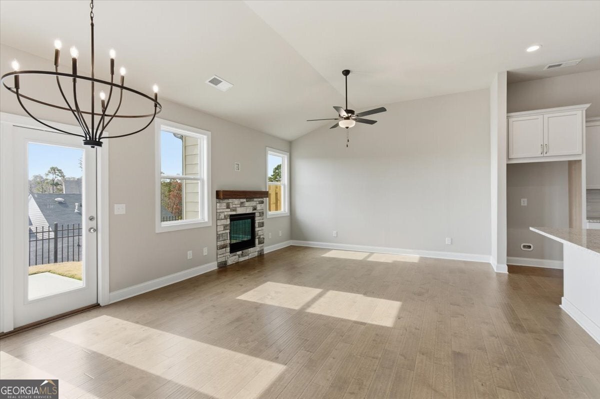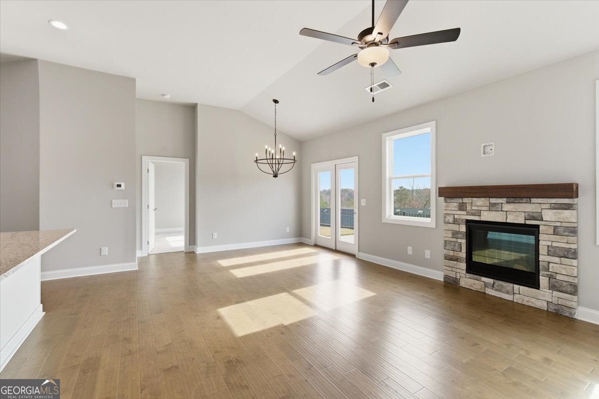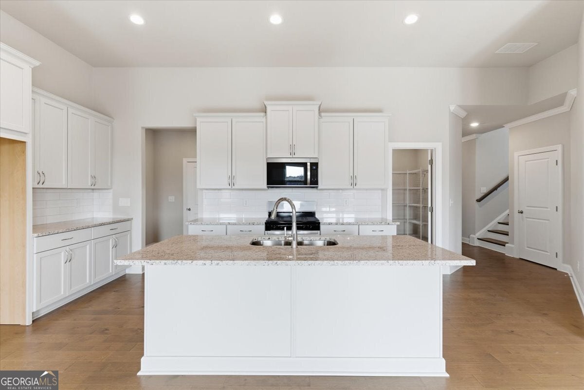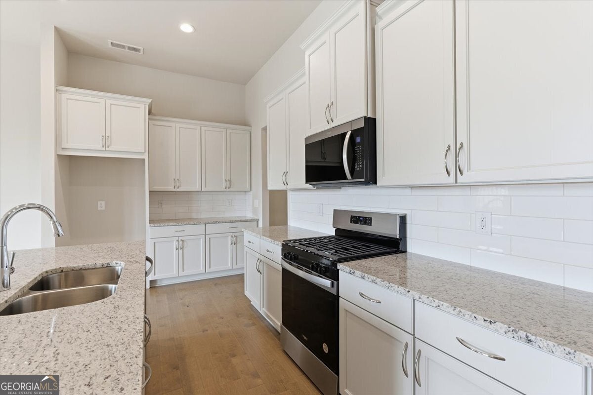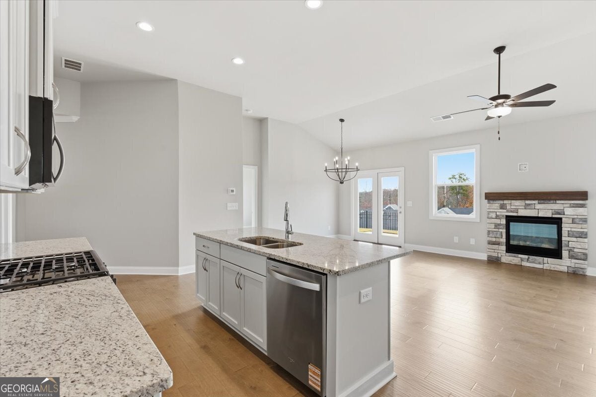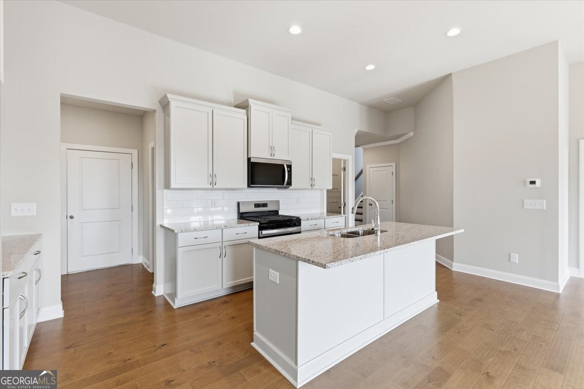 The Beautiful Sidney Floorplan - Comfort Meets Style in Great Sky! The Sidney offers thoughtfully designed main-level living with the primary suite on the main floor, complete with hardwood flooring, a luxurious zero-entry tiled shower with bench, and dual vanities with granite countertops. The kitchen is perfect for entertaining, featuring a large island, granite counters, and soft-close cabinets and drawers, all open to the fireside family room with hardwood floors throughout the main level, including the primary bedroom and upstairs hallway. A flexible office or den provides extra space for work or relaxation. Upstairs, enjoy spacious secondary bedrooms and tiled baths. Located in the master-planned community of Great Sky, residents enjoy access to a vibrant community house with year-round activities, three swimming pools, tennis and pickleball courts, and picturesque walking trails. Ideally situated just minutes from I-575, top-rated schools, Northside Cherokee Hospital, shopping, and fine dining. New Price! Seller pays $10k total toward closing. Exclusively using Movement Mortgage (Wesley Boyd Team) for financing. Offer may be withdrawn at any time without prior notice. *Minimum loan amount may affect the amount of lender credit being paid.