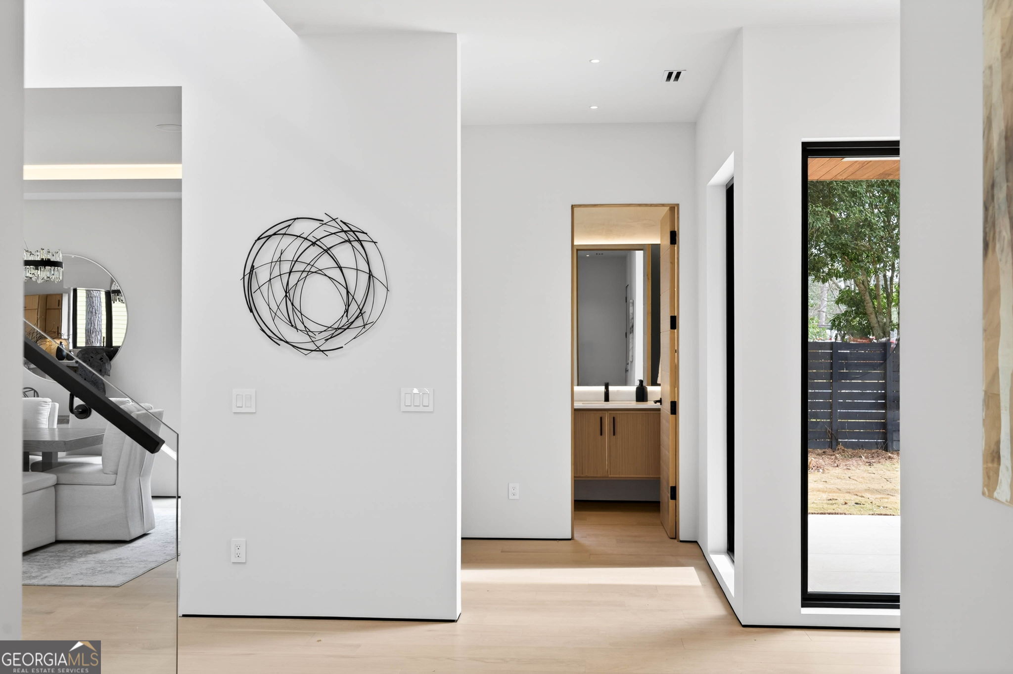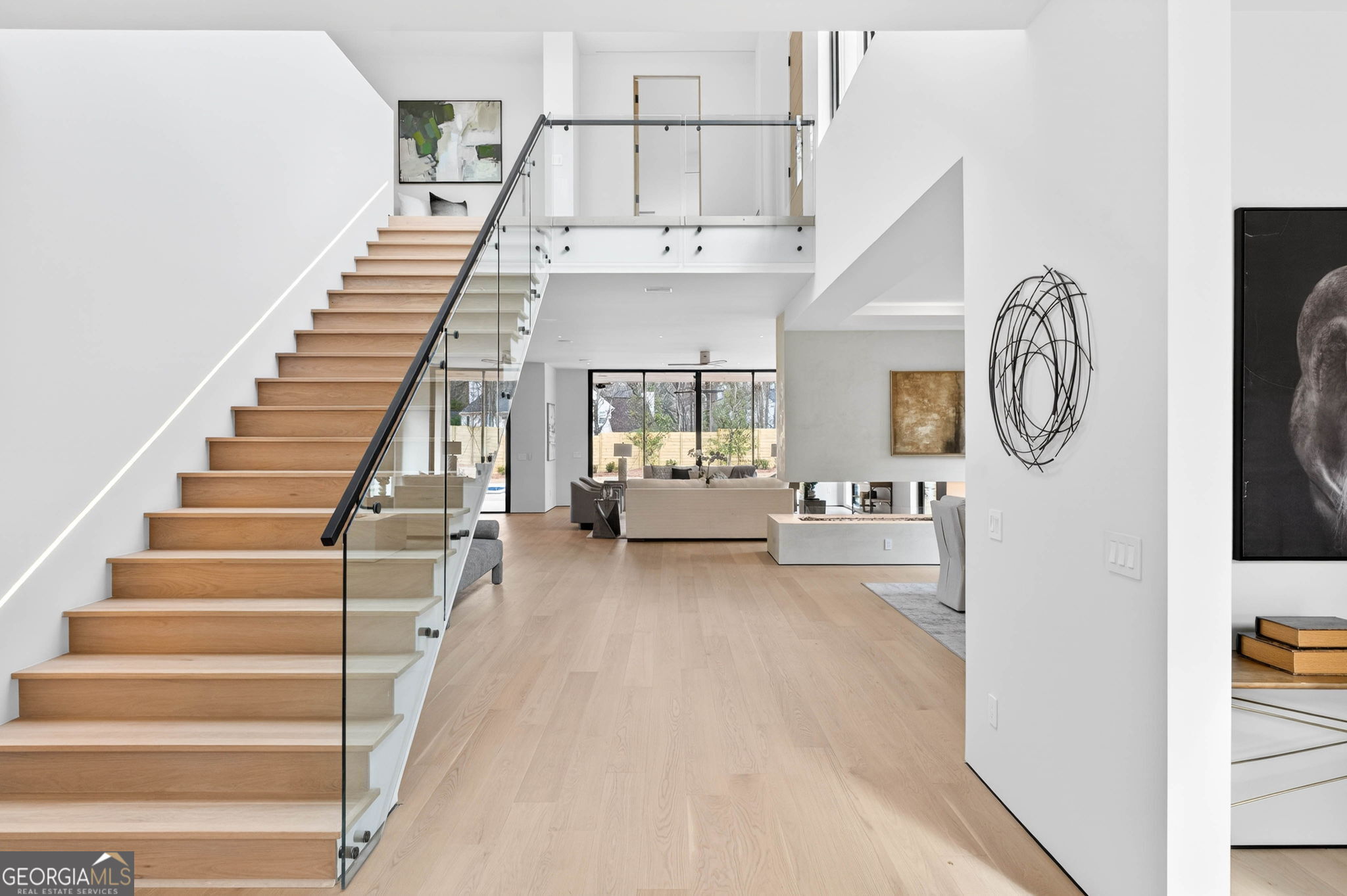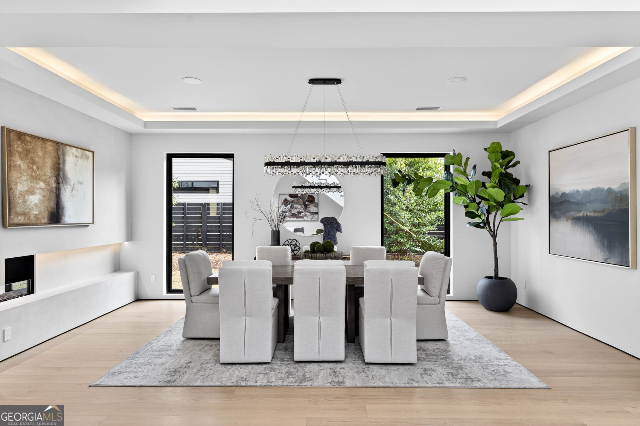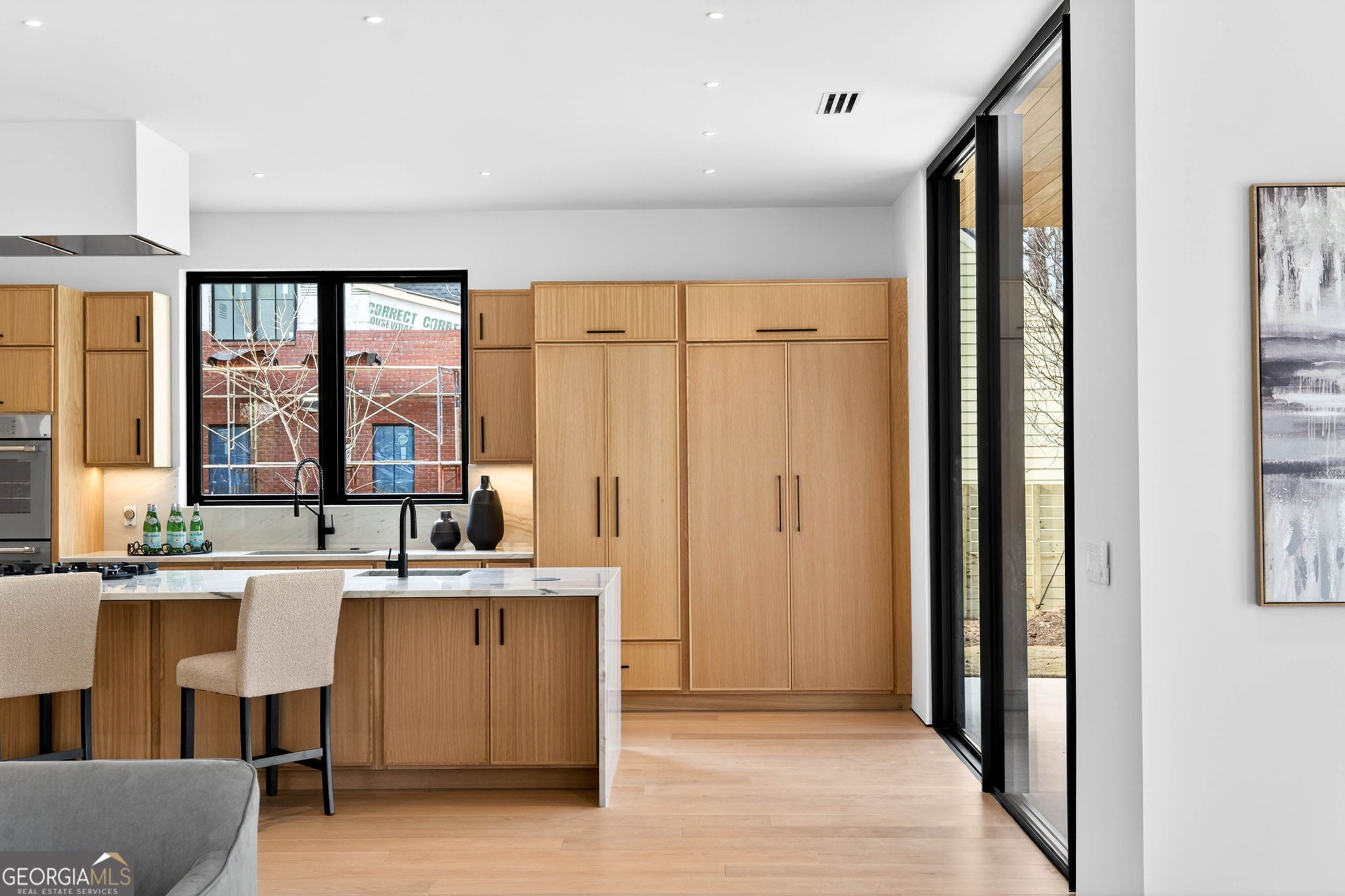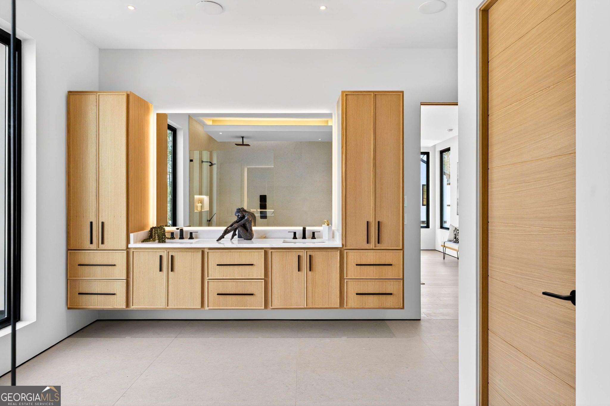 Discover unparalleled luxury in this stunning Alpharetta home, meticulously crafted to blend elegance with modern convenience. Cozy up and unwind by the distinctive 3-sided peninsula Bio-Ethanol fireplace that creates a warm, inviting ambiance. The gourmet kitchen showcases a premium Thermador Stainless Steel Appliance Suite, featuring a 48" Refrigerator/Freezer, Double Ovens, Microwave, Pitt Cooktop, and Dishwasher, all complemented by custom White Oak cabinetry and exquisite Bellagio Marble countertops that extend seamlessly into the spacious pantry. Storage is abundant with a large walk-in pantry and a functional scullery. Indulge in the refined beauty of Bianco Rhino Marble in the Primary Bath, Powder Room, and Secondary Baths, while the upper level Laundry Room boasts sleek Pure White Quartz countertops. Designed for both comfort and productivity, the home includes a main-level office complete with a full bathroom-ideal for remote work or guest accommodations. Throughout the home, designer backlit mirrors add a sophisticated glow. Organize effortlessly with custom closet systems in the Primary Bedroom and main-level office. Step outside to an inviting expansive patio with a gas connection for grilling, ideal for effortless entertaining. The highlight of the outdoor space is a stunning saltwater pool with a complete Pentair equipment package, a flush spa with therapeutic jets and two-sided spillover, as well as a 6' x 8' sun ledge with an integrated bubbler water feature. Additional highlights include private balconies off both the Master and secondary bedrooms, second floor skylights, a custom large front pivot door that makes a striking first impression, and a large package-receiving mailbox with wood facing that harmonizes with the house facade. Nestled in a prestigious Alpharetta community, this residence offers the perfect balance of serene suburban living and vibrant city amenities. Enjoy proximity to local shopping, diverse dining options in downtown Alpharetta, expansive parks, nature trails, and the upscale Avalon development with premier retail, dining, and entertainment. Convenient access to major highways ensures effortless commuting. Schedule your private tour today and step into a lifestyle defined by comfort, elegance, and convenience.