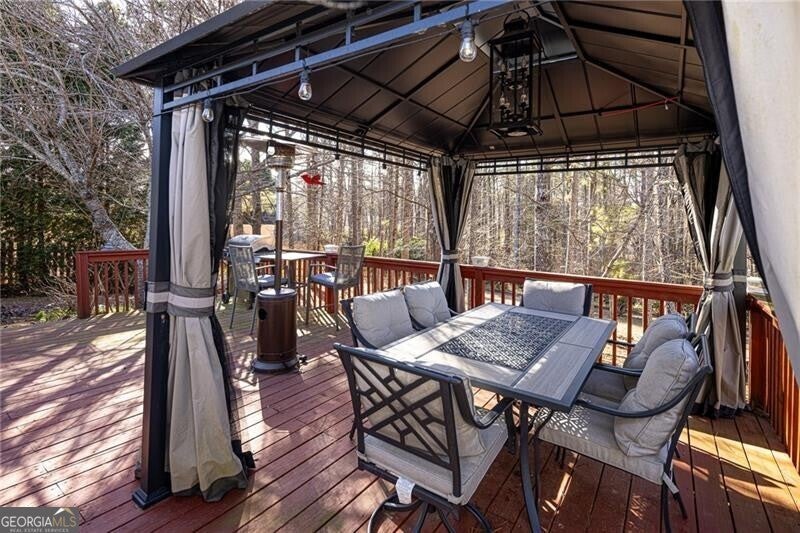 Welcome to easy, one-level living! This home rests on a large, private lot with a heavily wooded backyard in the vibrant Harbins Estates swim/tennis community, located within the desirable Archer School District. The main living areas feature expansive cathedral ceilings that offer abundant natural light. The kitchen is equipped with stainless steel appliances, space for a breakfast table, and an oversized granite peninsula with seating for five-perfect for gatherings. The primary suite includes a trey ceiling, a walk-in closet, and a bathroom featuring a double vanity and a freshly renovated, luxurious walk-in shower. All secondary bedrooms offer generous closet space, while the oversized laundry room provides additional storage. Outside, you can enjoy grilling and entertaining on the large deck overlooking a serene, natural setting. This home is located only minutes from Harbins Park, Tribble Mill Park, and Fort Yargo State Park, and is centrally located near shopping and dining.
