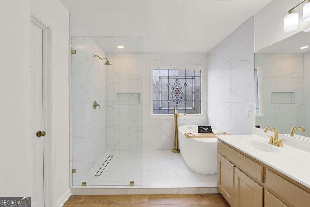 Welcome to this stunning four-bedroom, two-and-a-half-bath home, nestled in the sought-after Great Oaks Landing subdivision, within the highly desirable Grayson High School district. As you enter, you're greeted by beautiful hardwood floors that flow through the open-concept living areas, complemented by a separate dining room and a versatile formal living space that can also serve as an office. The kitchen features elegant granite countertops, a gas stove, and a spacious eat-in area with access to a large deck overlooking a beautiful wooded space with a creek. Upstairs, you'll find four spacious bedrooms, including an extra-large master suite with a stunning newly renovated primary bathroom, featuring a tub and shower combo with marble tile and new flooring. Downstairs, you are greeted with a versatile area perfect for entertainment or or your favorite hobby. Additional living space, along with an extra room that can easily serve as a bedroom with a large closet. Access to a private backyard from basement also makes it convenient for quiet time or gatherings. Lifetime Leafguard gutters installed. Close to Lawrenceville, Snellville, Shoppes at Webb Gin and Sugarloaf Pkwy. This home is waiting for it's new buyer. Priced reduced.
