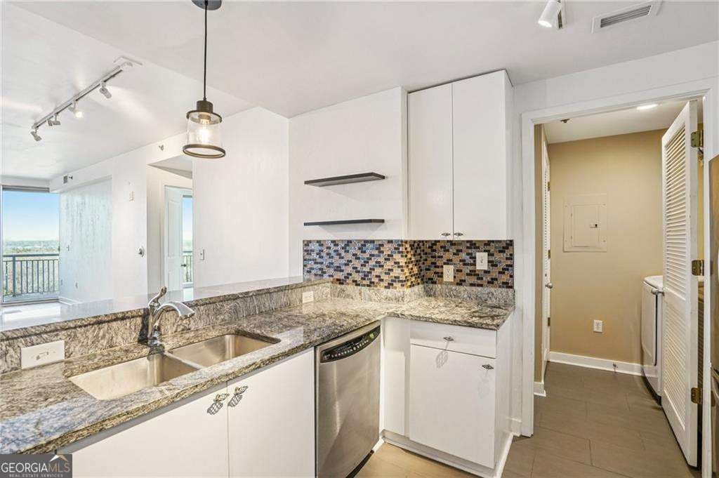 As soon as you enter this FULLY RENOVATED home, you're greeted by beautifully paneled entry walls, giving you the perfect ,cozy space to hang your coats and add a shoe/umbrella rack. The kitchen features white cabinets w/upgraded handles, stone counters, and most importantly, GAS COOKING (the only building in this price point that offers 'Gas Cooking) in our area. The kitchen faces a wall of Windows across the room, NOT a painted Wall, making it much more inviting for you and your guests. You can entertain in style in the open & spacious main living area that opens onto a MASSIVE DOUBLE BALCONY(not standard) No crowding into a tiny space, and take in the miles & miles of UNOBSTRUCTED VIEWS. The Bedroom Blinds are fully MOTORIZED for your convenience, and HVAC is controlled by a NEST thermostat. Fully Renovated Bathroom, Newer water heater, new flooring throughout, new tile throughout, including the kitchen backsplash, and face of breakfast bar. New lighting throughout. In this building you wont just meet your neighbors, you'll get to KNOW them, thanks to the beautiful Sky Bar, where you can socialize 4 days a week. Washer/Dryer included (less than 2 years old). Assigned Parking Spot #385- covered. Wine Locker #283 in climate controlled wine cellar on lobby level.