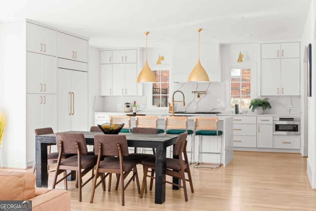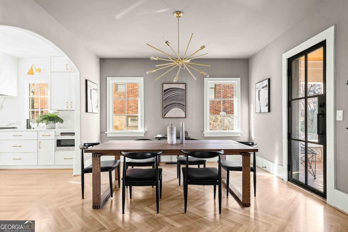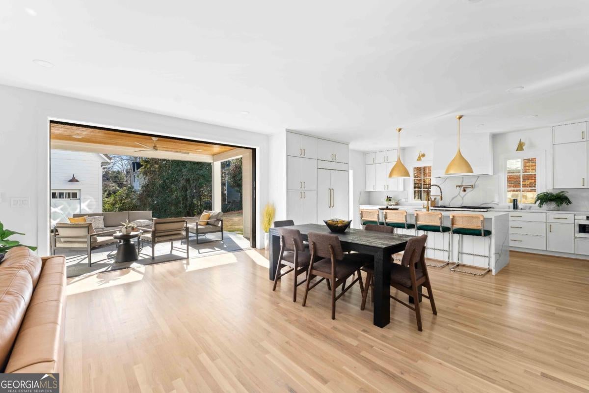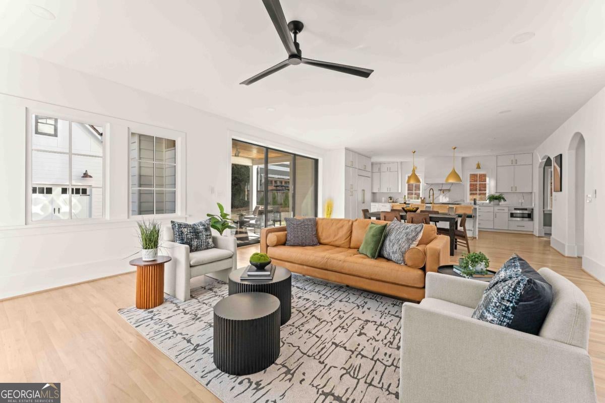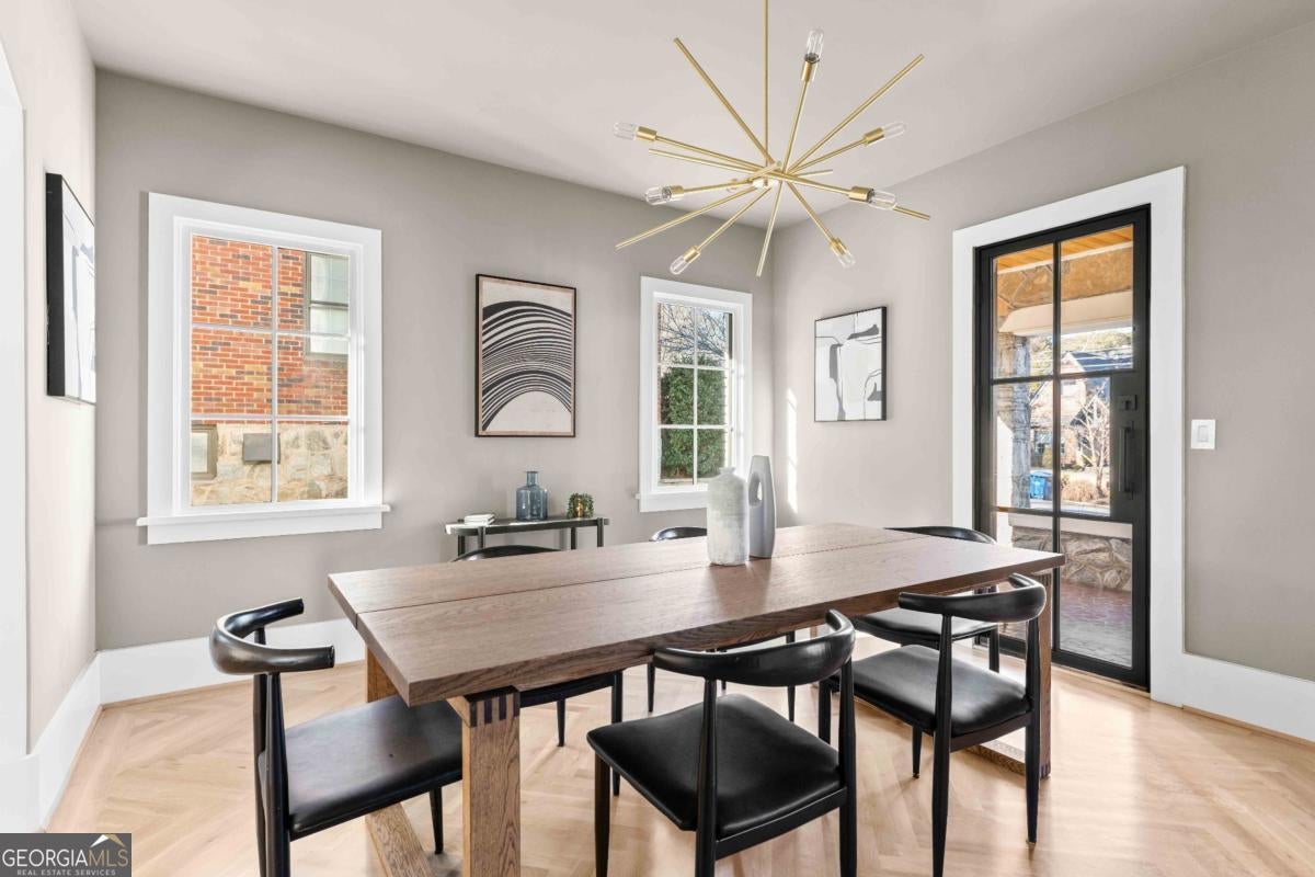 Tucked along one of Morningside's most historic and sought-after streets, this extraordinary custom-built home masterfully blends classic craftsmanship with modern elegance. From the moment you enter, the attention to detail defines this home-every space intentionally designed for both beauty and function. A hand-made iron front door leads you into the foyer, with views of custom-cut herringbone hardwood floors in the dining room and arched doorways, a nod to the refined sophistication of craftsman architecture. The gourmet kitchen is a chef's dream, featuring a high-end Wolf range, paneled appliances, and a spacious island that anchors the open-concept living area, framed by a beautiful fireplace, setting the stage for quiet nights at home and entertaining family and friends alike. Large disappearing sliding doors seamlessly merge the indoors & outdoors, leading out to a covered patio and a lush, private backyard-the perfect setting for a future pool or outdoor entertaining. The primary suite is a true retreat, highlighted by a stunning barrel-rolled ceiling, spa-inspired bath, versatile rain shower, and generous walk-in closet. The primary is flanked by three additional upstairs bedrooms (see if you can find the secret playroom), as well as another on the main floor, two of which have en suite baths. A detached garage with a beautifully finished carriage house provides flexible options for guests, an au pair suite, or a studio. Every detail-from the millwork to the natural light-reflects impeccable design and craftsmanship. Located just moments from Morningside Village, Piedmont Park, and the BeltLine, this home captures the essence of refined intown living.