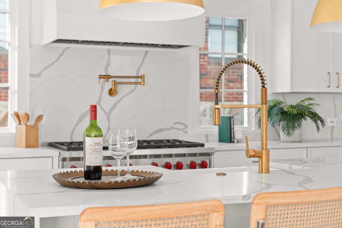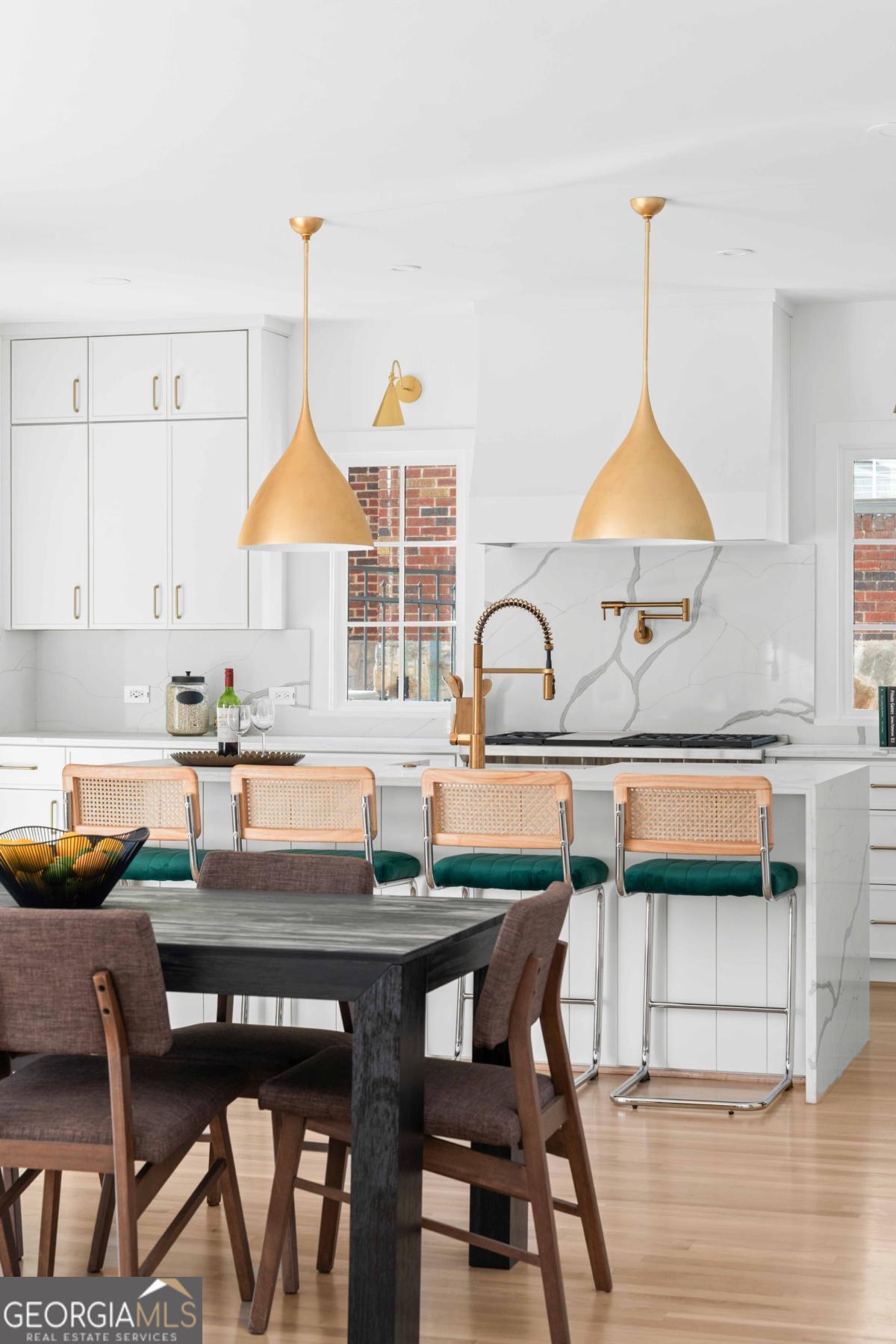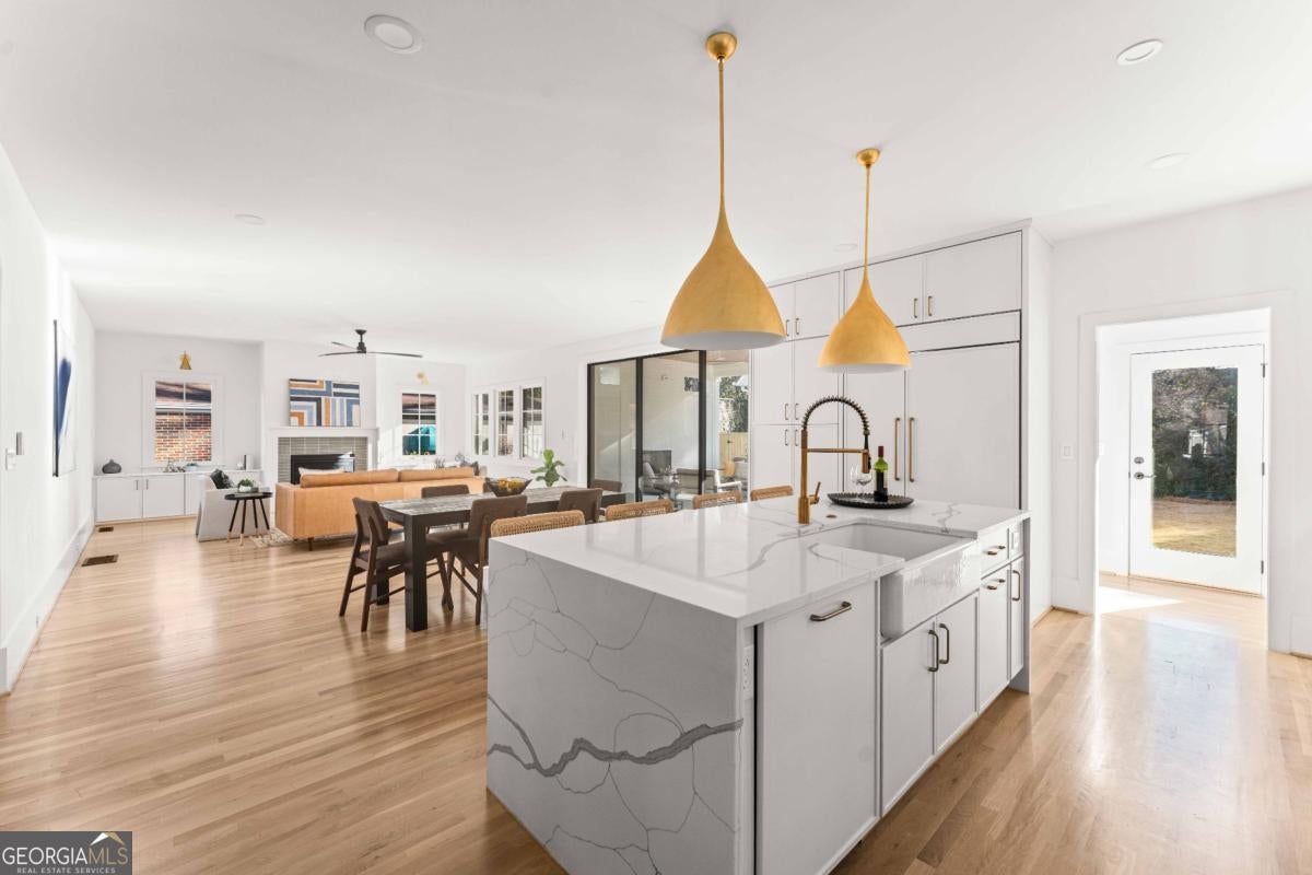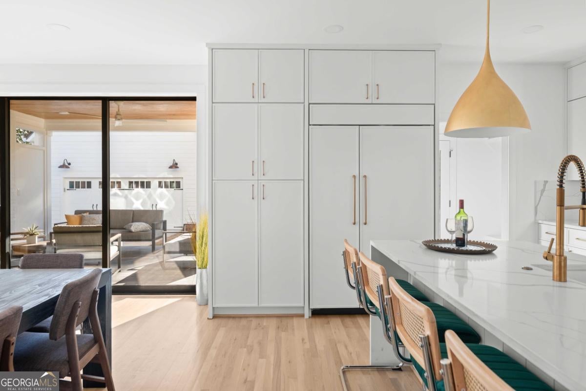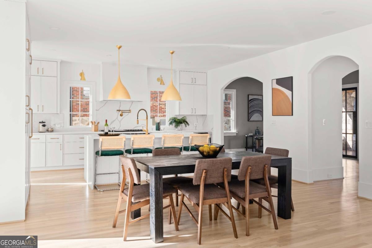 Tucked along one of Morningside's most historic and sought-after streets, this extraordinary custom-built home masterfully blends classic craftsmanship with modern elegance. From the moment you enter, the attention to detail defines this home-every space intentionally designed for both beauty and function. A hand-made iron front door leads you into the foyer, with views of custom-cut herringbone hardwood floors in the dining room and arched doorways, a nod to the refined sophistication of craftsman architecture. The gourmet kitchen is a chef's dream, featuring a high-end Wolf range, paneled appliances, and a spacious island that anchors the open-concept living area, framed by a beautiful fireplace, setting the stage for quiet nights at home and entertaining family and friends alike. Large disappearing sliding doors seamlessly merge the indoors & outdoors, leading out to a covered patio and a lush, private backyard-the perfect setting for a future pool or outdoor entertaining. The primary suite is a true retreat, highlighted by a stunning barrel-rolled ceiling, spa-inspired bath, versatile rain shower, and generous walk-in closet. The primary is flanked by three additional upstairs bedrooms (see if you can find the secret playroom), as well as another on the main floor, two of which have en suite baths. A detached garage with a beautifully finished carriage house provides flexible options for guests, an au pair suite, or a studio. Every detail-from the millwork to the natural light-reflects impeccable design and craftsmanship. Located just moments from Morningside Village, Piedmont Park, and the BeltLine, this home captures the essence of refined intown living.