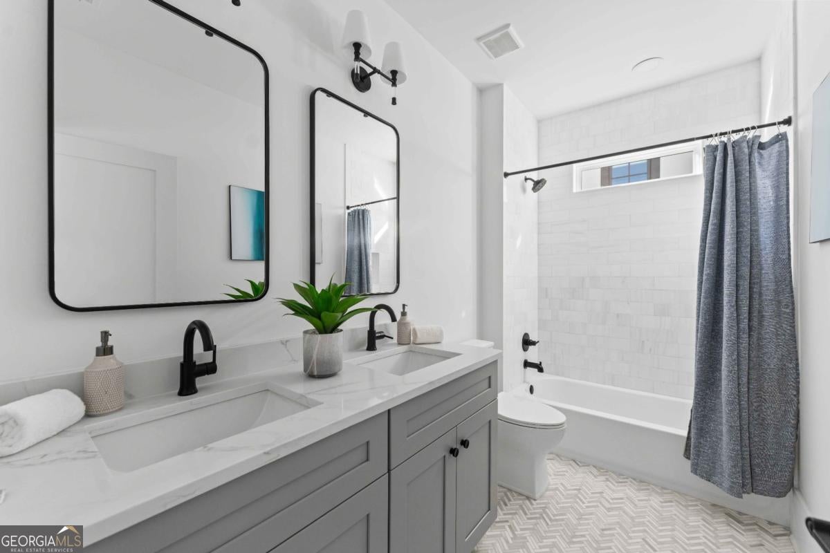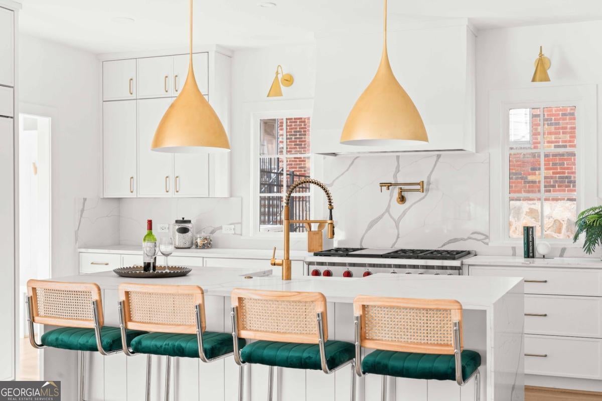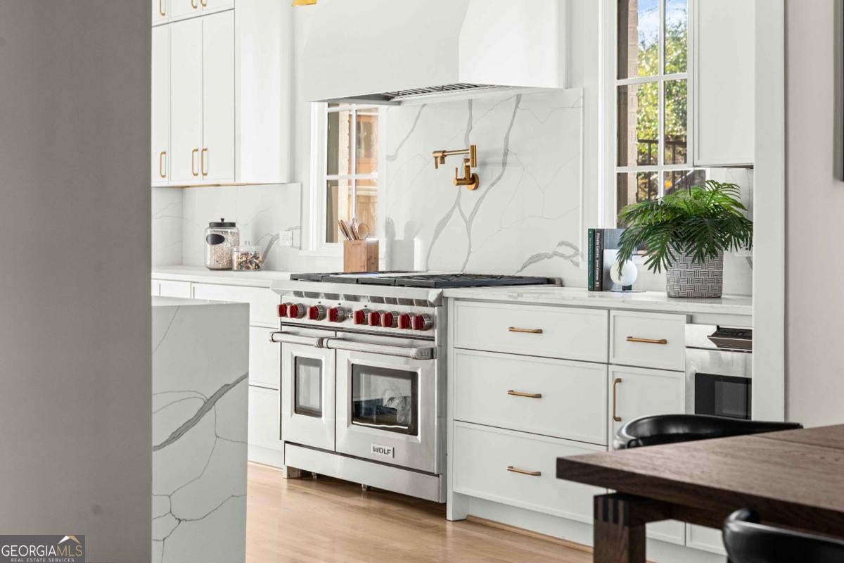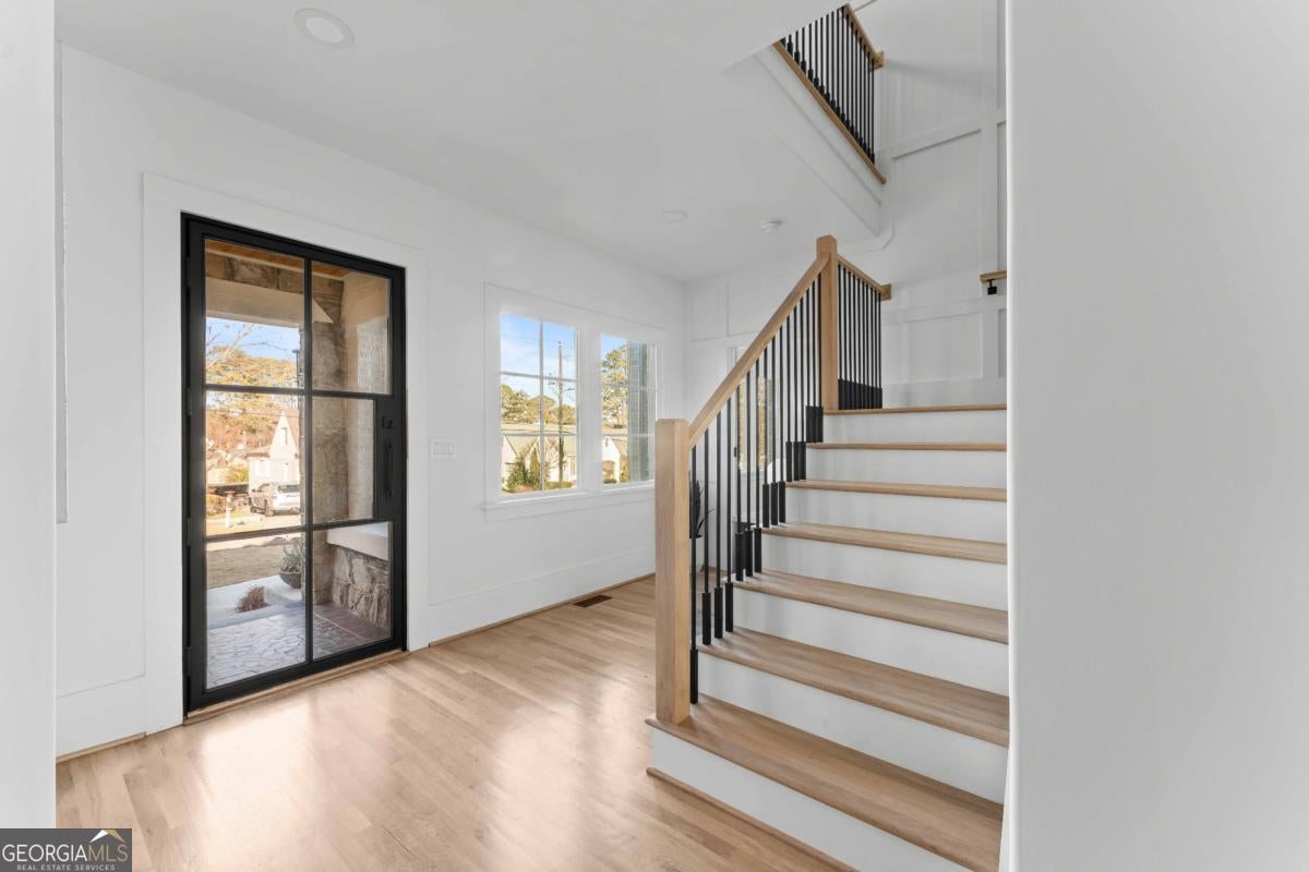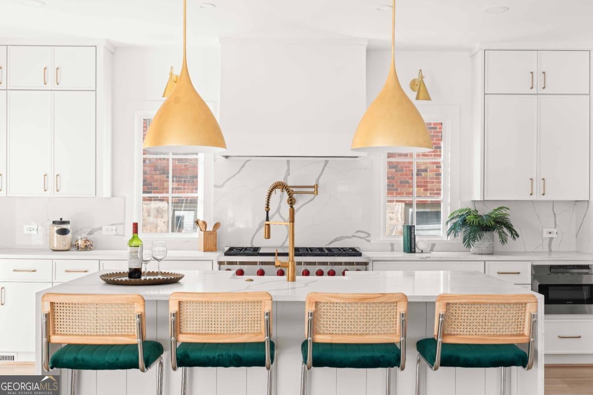 Tucked along one of Morningside's most historic and sought-after streets, this extraordinary custom-built home masterfully blends classic craftsmanship with modern elegance. From the moment you enter, the attention to detail defines this home-every space intentionally designed for both beauty and function. A hand-made iron front door leads you into the foyer, with views of custom-cut herringbone hardwood floors in the dining room and arched doorways, a nod to the refined sophistication of craftsman architecture. The gourmet kitchen is a chef's dream, featuring a high-end Wolf range, paneled appliances, and a spacious island that anchors the open-concept living area, framed by a beautiful fireplace, setting the stage for quiet nights at home and entertaining family and friends alike. Large disappearing sliding doors seamlessly merge the indoors & outdoors, leading out to a covered patio and a lush, private backyard-the perfect setting for a future pool or outdoor entertaining. The primary suite is a true retreat, highlighted by a stunning barrel-rolled ceiling, spa-inspired bath, versatile rain shower, and generous walk-in closet. The primary is flanked by three additional upstairs bedrooms (see if you can find the secret playroom), as well as another on the main floor, two of which have en suite baths. A detached garage with a beautifully finished carriage house provides flexible options for guests, an au pair suite, or a studio. Every detail-from the millwork to the natural light-reflects impeccable design and craftsmanship. Located just moments from Morningside Village, Piedmont Park, and the BeltLine, this home captures the essence of refined intown living.