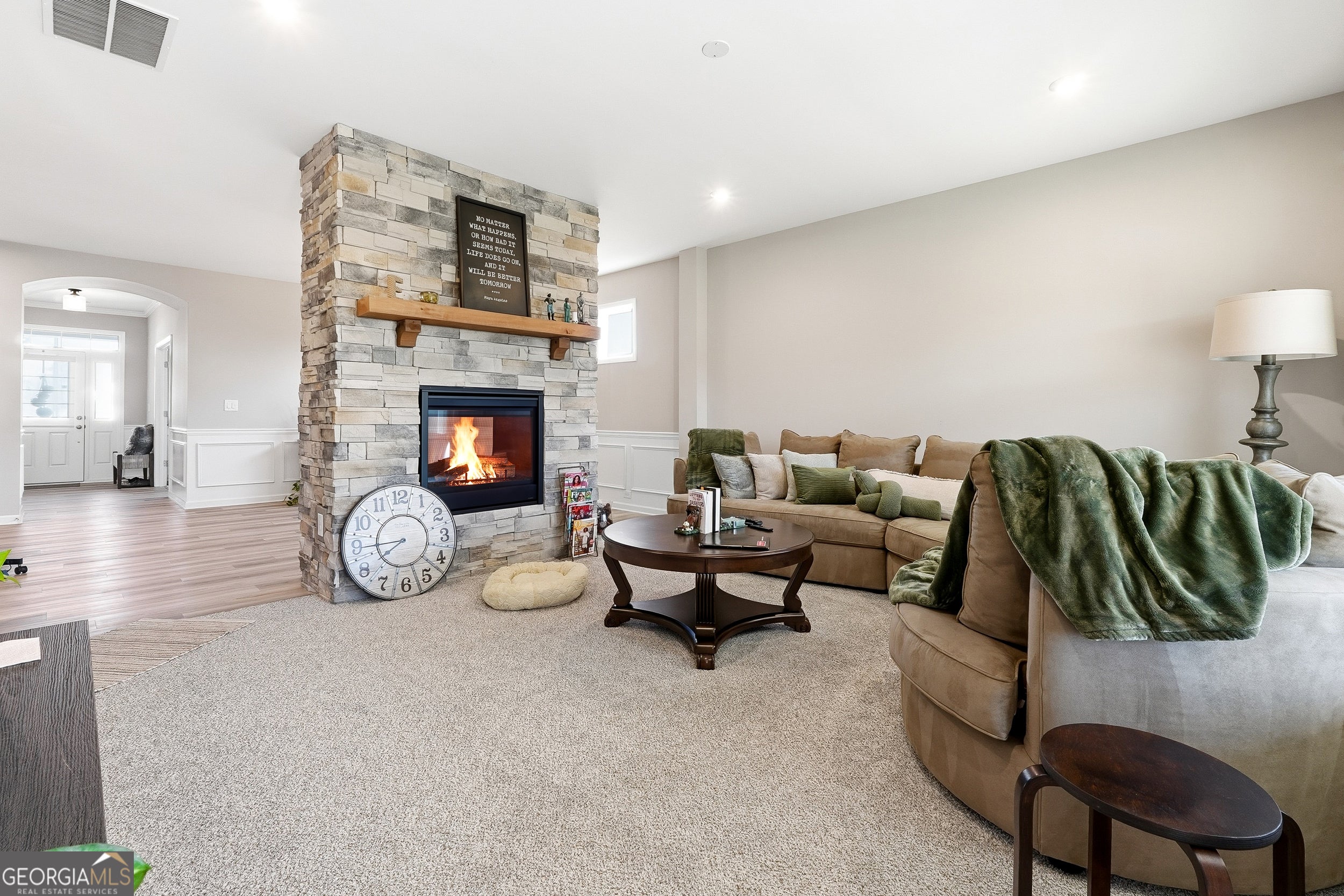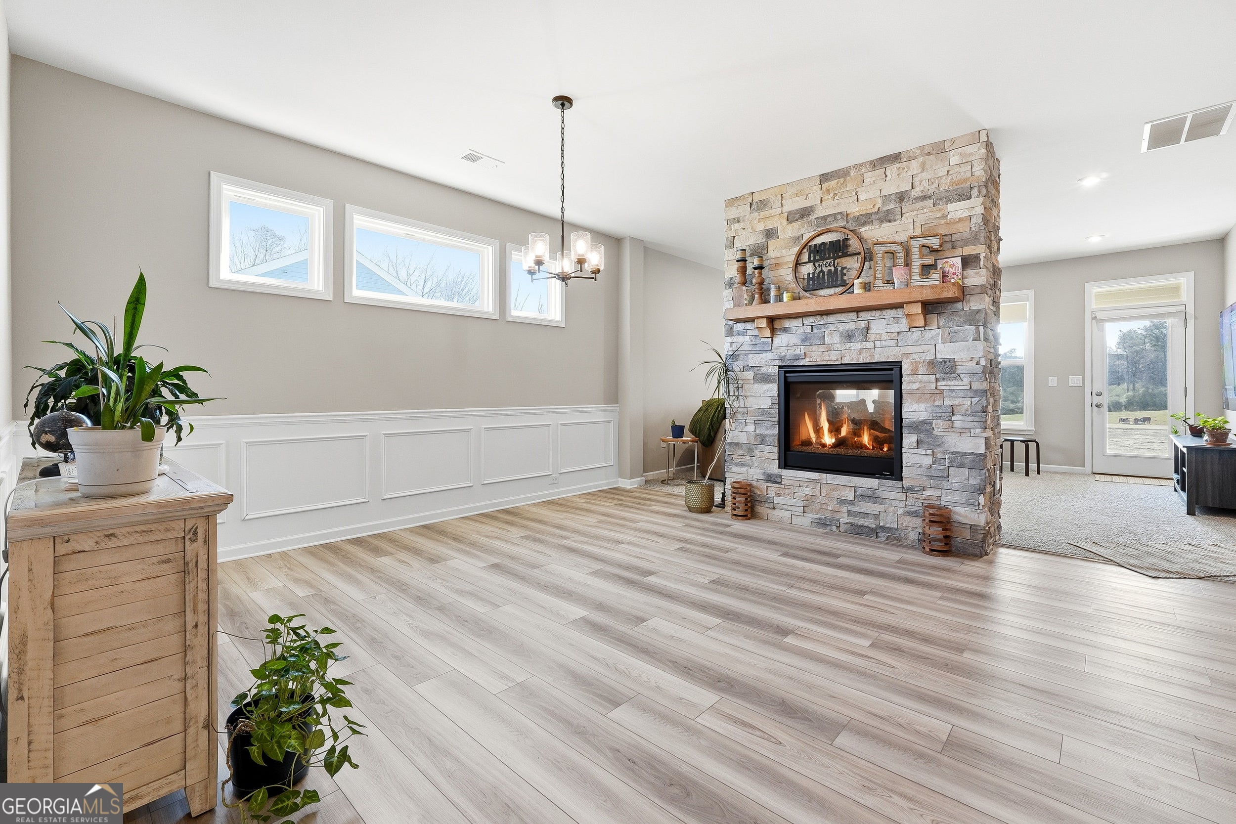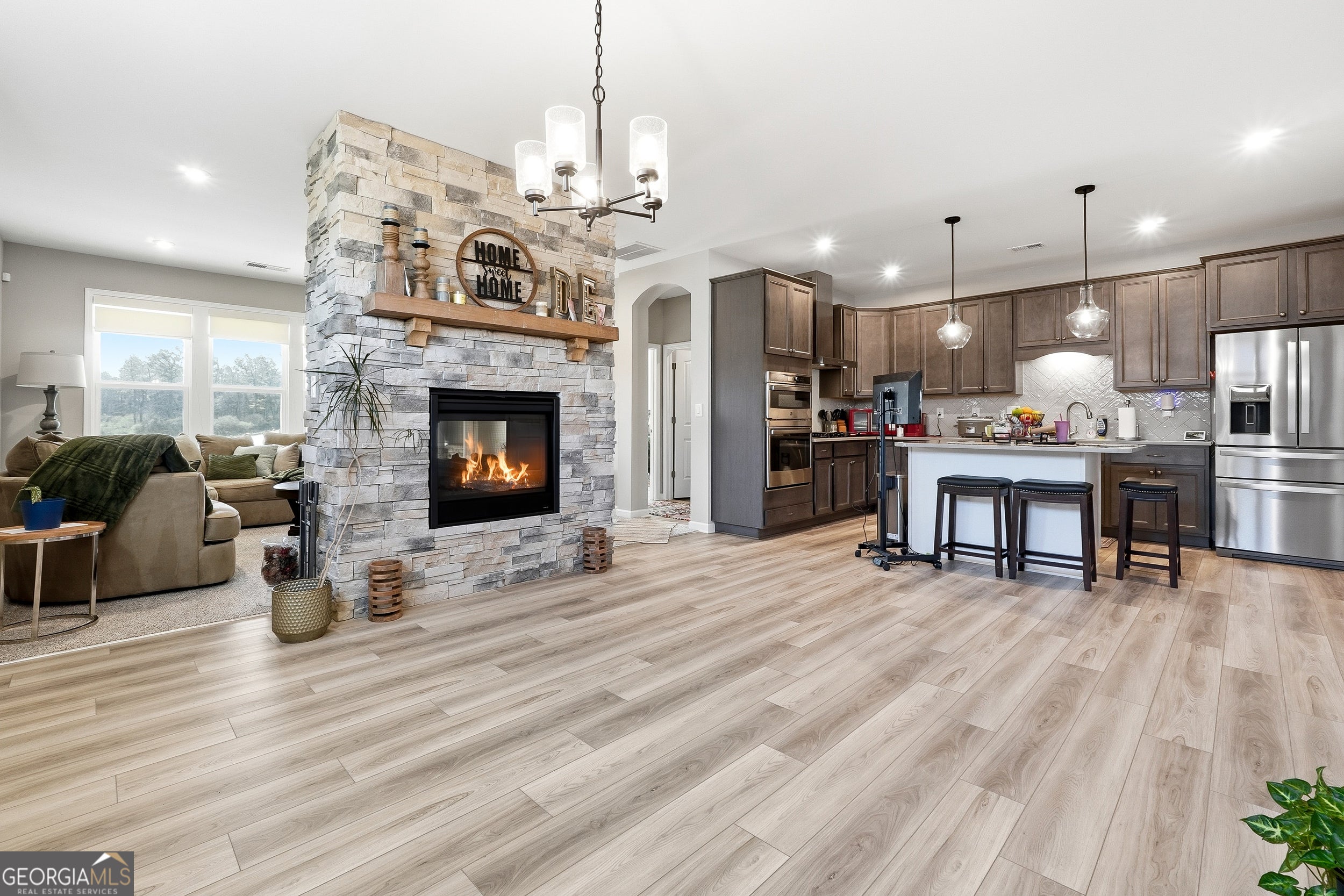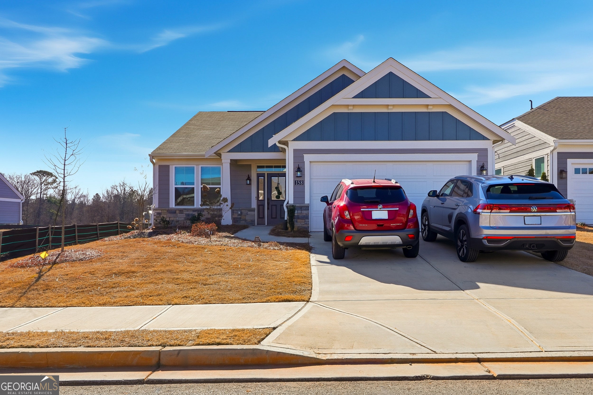 SELLER HIGHLY MOTIVATED! BRING ALL OFFERS! Welcome to your beautiful like-new ranch residence at 158 Laurel Farms Lane, a meticulously maintained home built in 2024 and situated within a highly desirable Active Adult community in Dallas, Georgia. Located on a quiet cul-de-sac, with breathtaking views, this elegant property offers the perfect blend of modern comfort, thoughtful design, and low-maintenance living - ideal for discerning buyers seeking both convenience and style. As you approach, the traditional ranch exterior with cement siding and an attached 2-car garage presents classic curb appeal. Spanning 1,758 square feet of one-level living space on a beautful well-maintained lot, this home boasts a thoughtful floor plan that effortlessly connects daily life with relaxed entertaining. Step inside to discover soaring ceilings, a gracious entry foyer, and an open-concept layout that unifies the living, dining, and kitchen spaces. The centerpiece of the home is an elegant and stunning double-sided stone fireplace, providing warmth and ambiance viewable from both the living room and dining area - perfect for cozy evenings or gatherings with friends and family. The chef's kitchen features a large breakfast bar island, solid surface countertops, stainless steel appliances, and extensive cabinetry that offers abundant storage. Elegant luxury vinyl plank flooring flows throughout the main living areas, while custom window shades enhance comfort and style. The primary suite serves as a private retreat, complete with a spacious layout, expansive walk-in closet, and a spa-inspired ensuite bathroom featuring a double vanity and a walk-in shower with glass surround. The secondary bedroom, also generously sized and with easy access to a full bathroom, offers flexibility for guests or family. A roomy home office with provides an ideal space for remote work, hobbies, or quiet reflection, while the centrally located laundry room and convenient mudroom drop station off the garage ensure everyday routines are effortless. Nature lovers will appreciate the seamless indoor-outdoor connection. Step outside to the oversized screened-in porch with potential for future glass inserts - easily transformable into a four-season room - or enjoy the open patio area, perfect for grilling, relaxing, or evenings gathered around a firepit while taking in serene countryside views. Laurel Farms is a vibrant active adult community offering amenities that enhance lifestyle and encourage connection. Thoughtfully landscaped common areas, street lighting, and a welcoming clubhouse provide opportunities for socializing, leisure, and community engagement. Additional interior features include recessed lighting, tray ceilings, quality insulation, and energy-efficient systems. The property includes public water, sewer, and natural gas utilities, ensuring modern convenience and comfort year-round. Whether you're downsizing from a larger home, seeking your next chapter in comfort, or simply desiring refined one-level living with exceptional quality, 158 Laurel Farms Lane delivers. With its thoughtful design, premium finishes, and ideal location within a desirable active adult setting, this residence represents a turnkey lifestyle opportunity in Paulding County. Also, conveniently located near Wellstar Paulding Hospital, Walmart, Publix, Kroger and the Silver Comet Trail. This amazing home is also located only 30 miles from Atlanta, so you will have the perfect blend of the suburbs and easy access to events and activities in Atlanta. 100% FHA and VA Financing Available with Preferred Lender Cornerstone First Mortgage. Schedule your private tour today and experience all that this remarkable property has to offer.