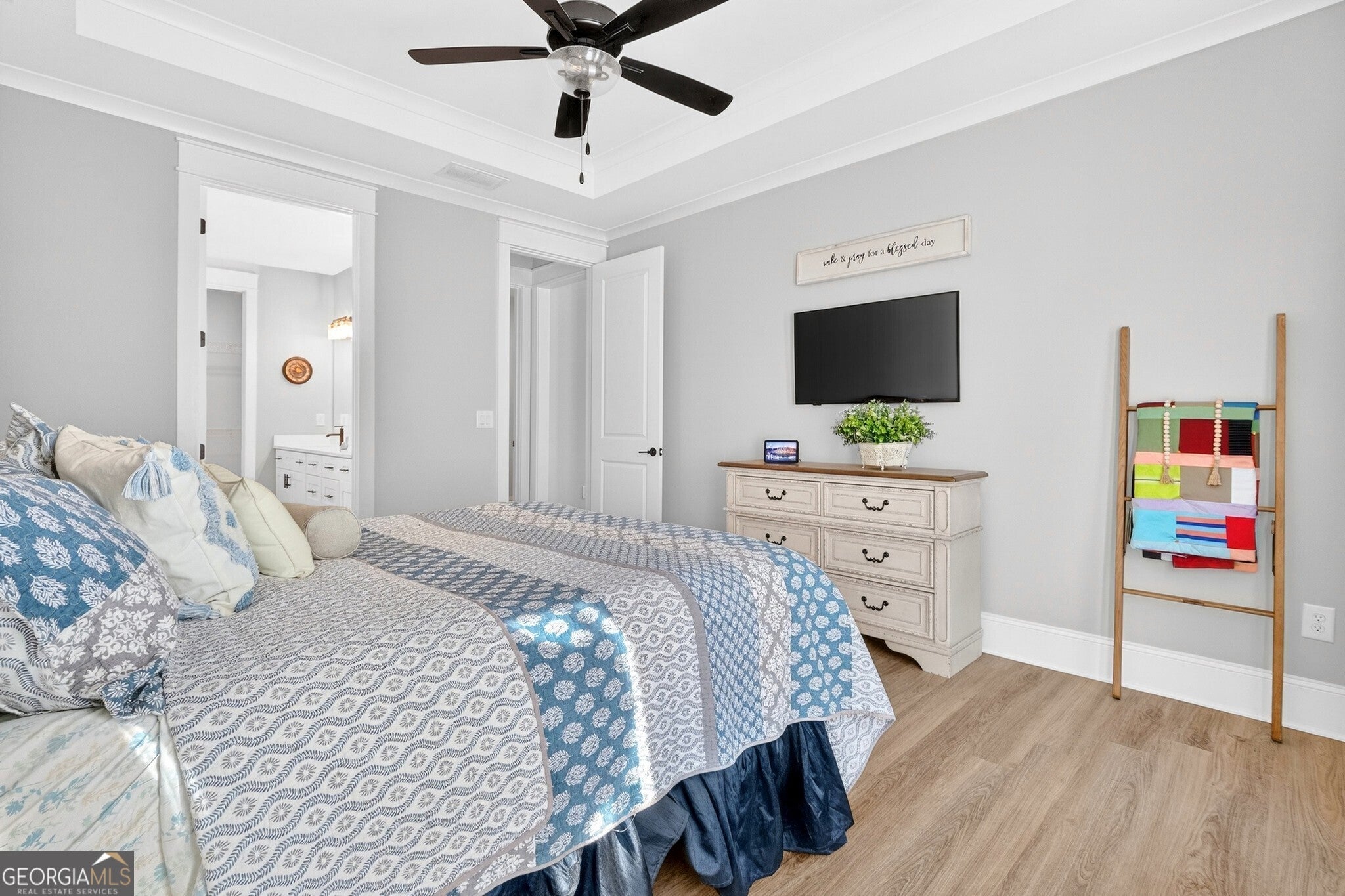 Exceptional Chadwick home in the Enclave at Keg Creek Landing, just minutes from downtown Senoia. This beautifully appointed home offers a desirable main-level owner's suite, two additional secondary bedrooms on the main floor, and an upstairs bedroom with full bath-ideal for guests or a private retreat. The spacious owner's suite features a tray ceiling, double vanity, and an elegant tiled shower. The well-appointed kitchen showcases stainless steel appliances, stainless vent hood, built-in microwave, generous pantry, and a tankless water heater for added efficiency and comfort. Enjoy enhanced privacy with a backyard that does not back up to another home and includes a privacy wall. Backyard maintenance excluded due to fencing. HOA amenities include: weekly front yard maintenance, annual weed treatment, pressure washing of driveway and home, pine straw refresh, and gutter cleaning. Optional Community pool access available for an additional annual fee of $350. And as always Call The Tonya Anderson Team and we will help you Move with Confidence.