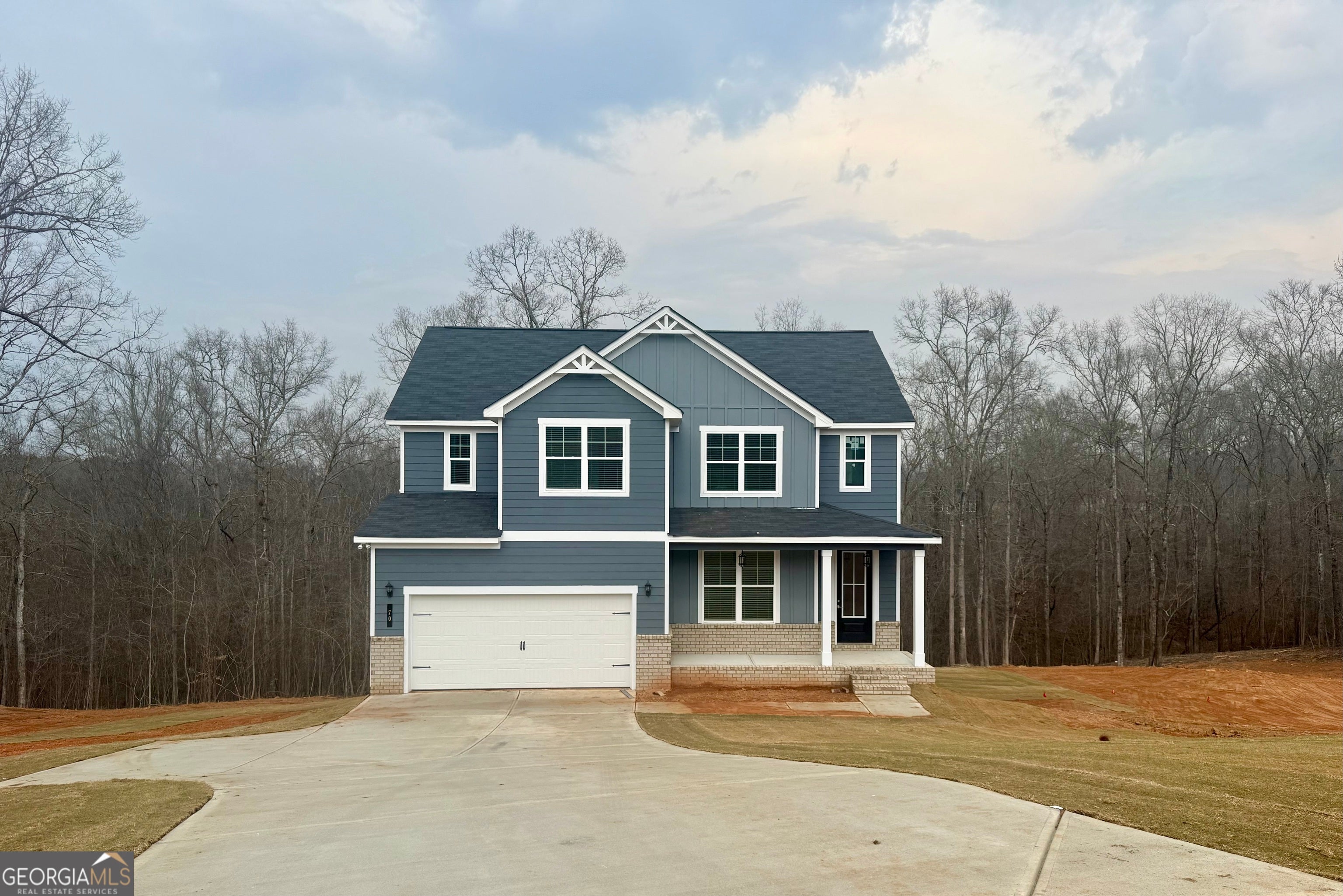 Peachwood C2 #42 - WOW! LIMITED-TIME INCENTIVE - Up to $30,000 in FLEX CASH + $1,000 RESERVES (with Preferred Lender). Welcome home to 70 Sydney Ct - a move-in ready Craftsman-style, 2-story new construction on an unfinished basement, perfectly situated on approximately 1.77 acres on cul-de-sac homesite in beautiful Mansfield, GA. This home offers 4 bedrooms, 2.5 baths and a thoughtfully designed open-concept layout ideal for today's lifestyle. Step onto the charming rocking-chair front porch and into a spacious main level featuring a gourmet kitchen with 42" cabinets, granite countertops, tile backsplash, stainless steel appliances, large center island, and walk-in pantry. The kitchen flows seamlessly into the dining area and family room with cozy fireplace and access to the rear deck-perfect for entertaining and everyday living. The main-level Primary Suite, Flex Room, and convenient powder room provide comfort and versatility. Upstairs you'll find an open loft, three generously sized secondary bedrooms, and a full bath with double vanities. Enjoy peaceful small-town living with easy access to shopping, dining, and major highways. 100% financing available, making this an excellent opportunity for first-time buyers or anyone looking for more space. Listing contains actual and file photos of similar property for representation purposes. Call today to schedule your private showing and take advantage of these incredible incentives before they're gone!