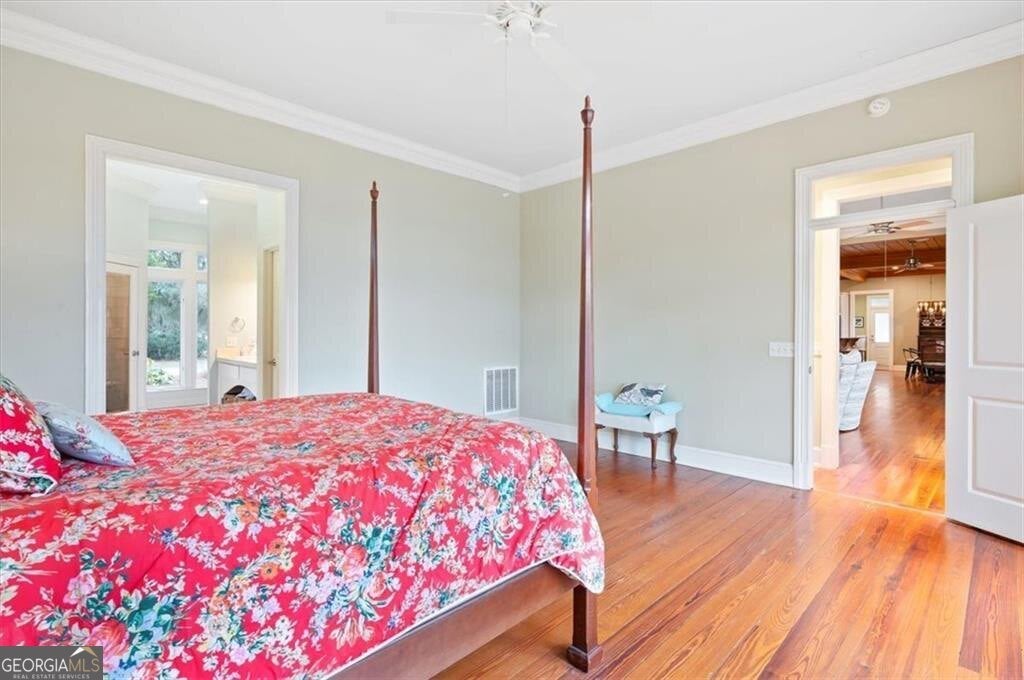 Nestled along the serene banks of the Julienton River, this stunning luxury estate offers an exceptional blend of Southern charm, modern comfort, and waterfront living at its finest. Set on 2.57 acres in a prestigious gated community, this home is perfectly positioned for those who seek both privacy and convenience. With deep-water access leading directly to the Atlantic Ocean, breathtaking river views, and proximity to the clubhouse and neighborhood dock, this property is a rare gem for boating enthusiasts and nature lovers alike. The main house is a masterpiece of craftsmanship, featuring three spacious bedrooms and three and a half bathrooms. The primary suite, located on the main level, serves as a private retreat with a lavish en-suite bathroom designed for ultimate relaxation. Upstairs, two guest bedrooms each boast their own private baths, offering comfort and privacy for residents and visitors. A versatile bonus room provides additional space, perfect for a media room, playroom, or home gym. Designed with both functionality and elegance in mind, the chef's kitchen is a dream come true for culinary enthusiasts. A striking tongue-and-groove ceiling adds character to the space, while high-end appliances, gas cooktop, and a walk-in pantry ensure effortless meal preparation. The adjacent wet bar and butler's pantry enhance entertaining possibilities, making hosting seamless and sophisticated. A formal dining room sets the stage for memorable gatherings, while the casual eat-in kitchen provides a cozy spot for everyday meals. The heart of the home is the inviting living area, where high ceilings and rich heart pine floors create a warm and welcoming ambiance. A grand fireplace serves as the focal point, perfect for cozy evenings. Step outside to experience true Southern living on the expansive screened-in back porch, complete with its own fireplace-an ideal setting for year-round enjoyment. An additional open porch allows you to take in the fresh coastal air and stunning river views. Adding to the home's thoughtful design is a dedicated dog-washing station, a unique feature that pet owners will appreciate. Beyond the main residence, a one-bedroom, one-bathroom guest apartment offers additional privacy for visitors or the perfect setup for a home office. With ample storage throughout the property, there is plenty of space to keep everything organized. The true highlight of this property is its unbeatable waterfront location. Whether you enjoy boating, fishing, or simply taking in the beauty of the river, this estate provides direct access to deep water, allowing you to embark on adventures to the Atlantic Ocean right from your backyard. The stunning views and tranquil setting make this home an unparalleled escape from the ordinary. With its blend of elegance, comfort, and prime waterfront positioning, this exceptional estate is more than just a home-it's a lifestyle. Experience the best of Lowcountry living in a private, gated community where every detail has been carefully curated for luxury and relaxation.