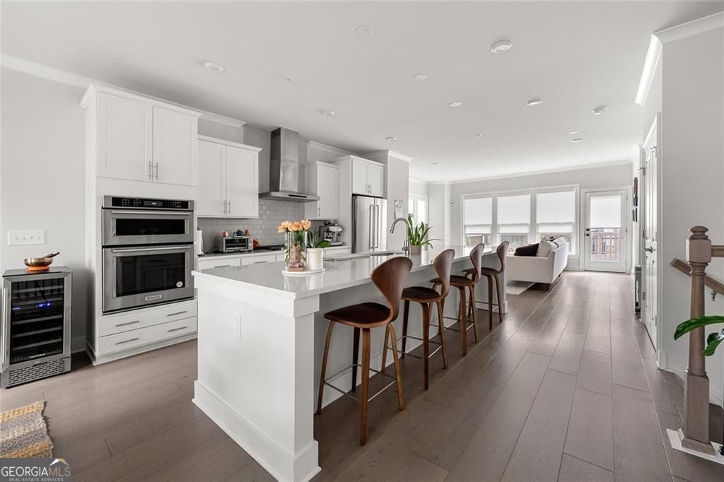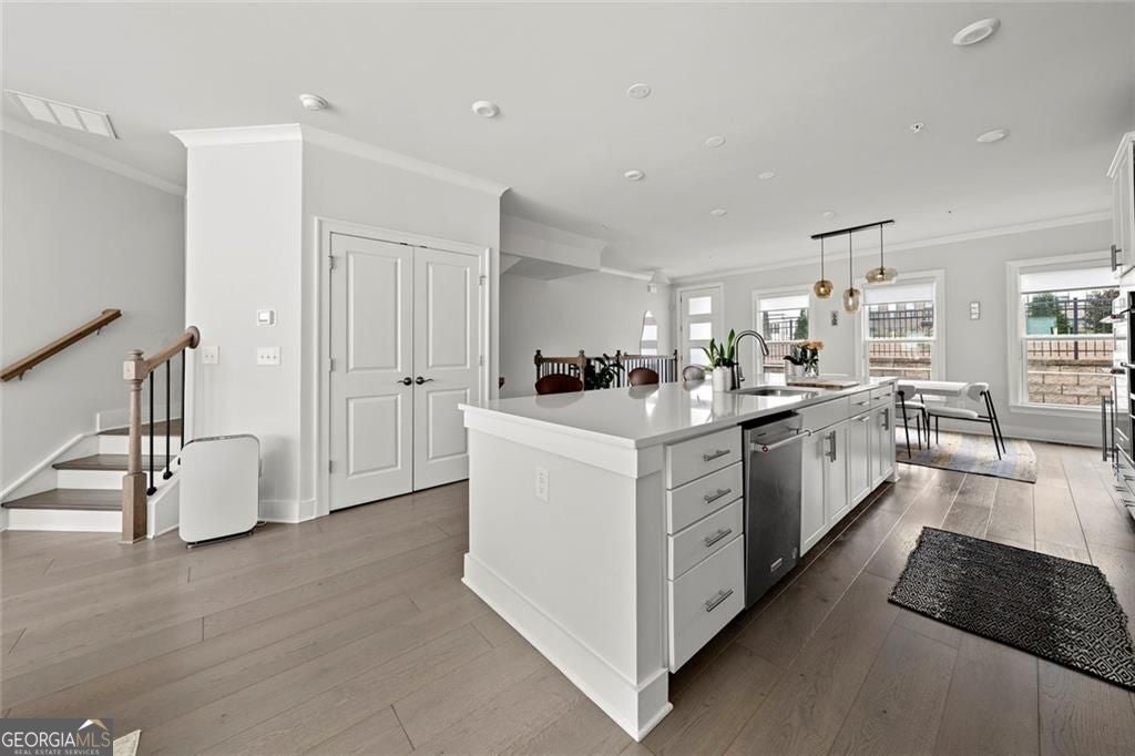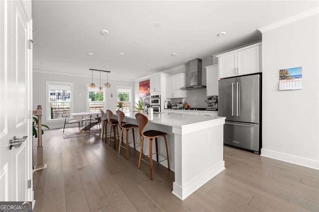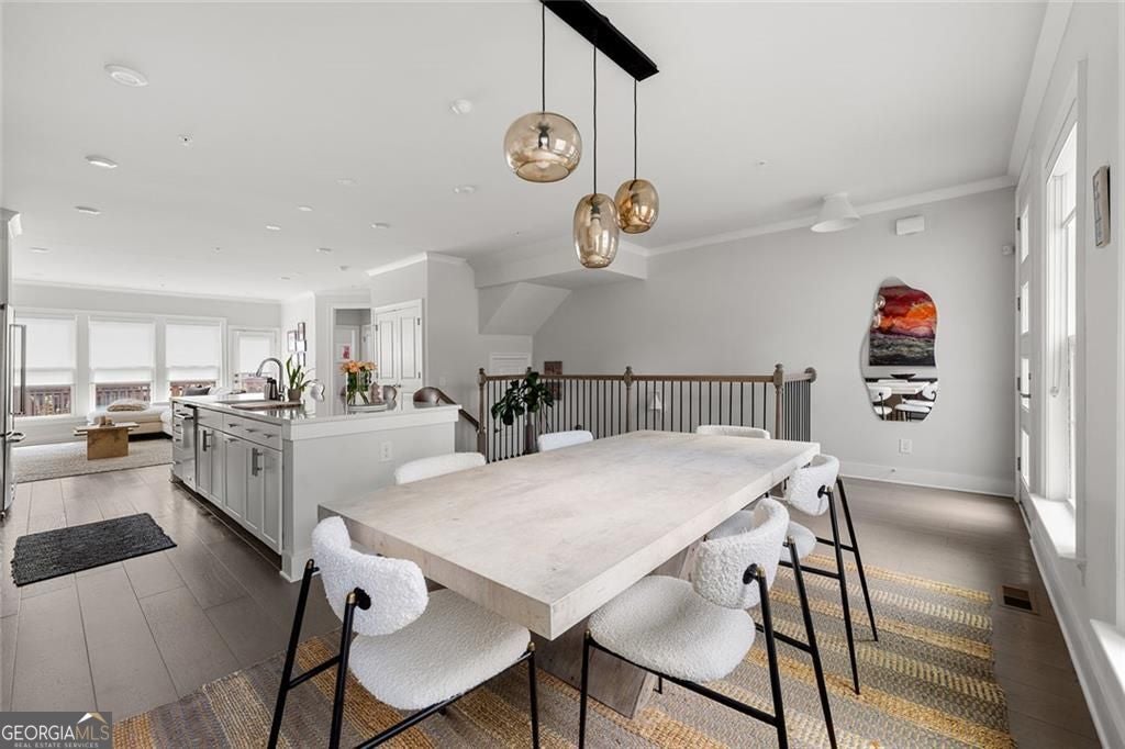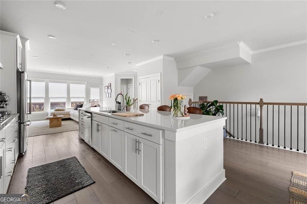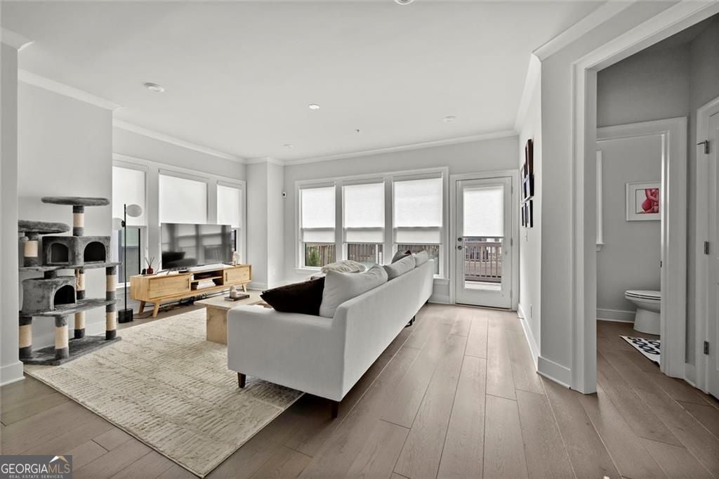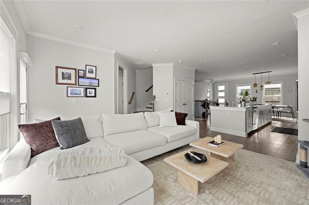 ASK ABOUT OUR PICK 3 INCENTIVE PROGRAM! Choose any three perks that matter most to you-more savings, added comfort, or extra peace of mind after closing.Set on a premium lot within one of Atlanta's most desirable Upper Westside communities, this end-unit townhome offers the perfect balance of upscale style, comfort, and convenience. Its unique position within the neighborhood provides rare park and skyline views, along with a sense of privacy and quiet that makes it feel like a retreat in the middle of it all. Built in 2022, this home feels better than new-lightly lived in, low-maintenance, with most rooms and bathrooms barely used-and includes upgrades throughout that go far beyond standard builder features. The spacious open-concept main level is ideal for gathering and entertaining. The many windows, including a bay window, fill the space with natural light, while the chef's kitchen features a KitchenAid Gourmet stainless steel package with a 36" gas cooktop, chimney hood, built-in oven and microwave, a stunning oversized quartz island, LED under-cabinet lighting, and modern soft-close cabinetry. Throughout the home, you'll find upgraded gray engineered wood floors, oak tread stairs with painted risers, iron balusters, and modern cabinetry, lighting and hardware. Additional highlights include sleek LEVOLOR roller shades on all windows, crown molding at the entry, and a smart security system with app-based control. Upstairs, the primary suite offers plenty of space with high style finishes such as tray ceiling, crown molding and two walk-in closets, and a spa-style bath featuring quartz countertops, a waterfall shower with Jolie filter, and floor-to-ceiling tile for a relaxing escape. Each secondary bedroom includes full privacy with its own full bathroom, perfect for guests, family, or a home office. On the top floor, a multifunctional loft space opens to a rooftop deck with garden lighting, a great spot to relax or host and take in the community and skyline views. With a two-car garage with electric car charger, like-new condition without the punch list, and a prime location directly across from the park and near the resort-style pool, this home stands out as one of the most desirable offerings in Upper West Midtown. Just minutes from The Path, The Works, Westside Park, and Westside Provisions District, this is the ideal blend of modern sophistication, privacy, and lifestyle.