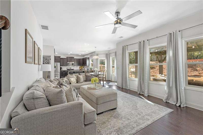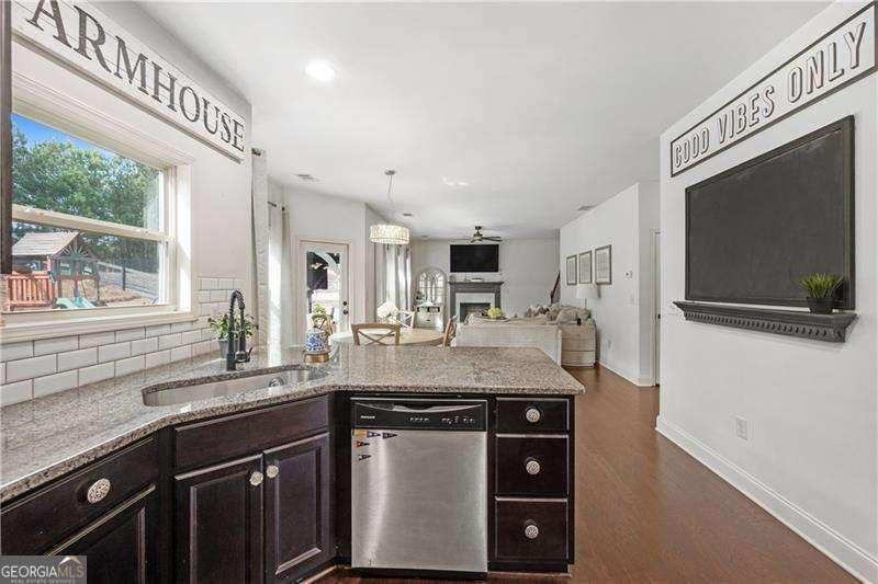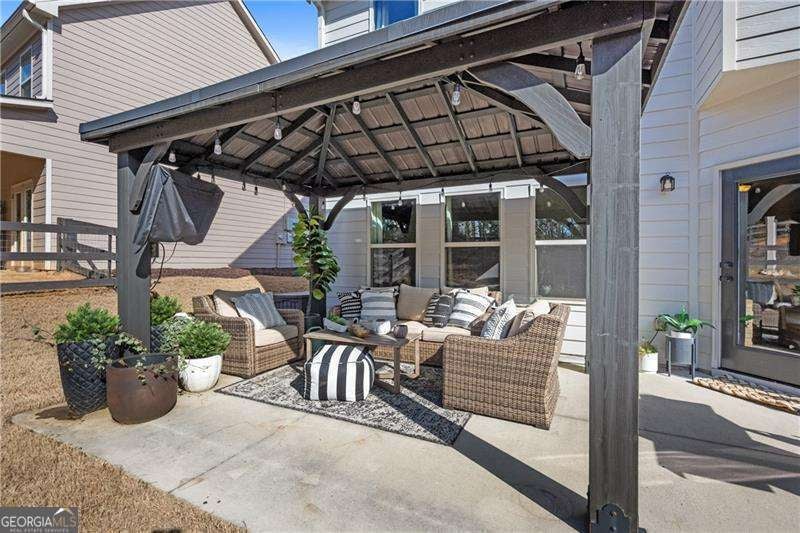 Discover effortless living in this beautifully maintained 4-bedroom, 2.5-bath home located in the sought-after Seven Hills community. Tucked along a peaceful street and backing to a private wooded backdrop, this move-in ready property blends modern comfort, smart updates, and a welcoming sense of connection in one of Paulding County's premier master-planned neighborhoods. A freshly painted exterior, architectural shingle roof replaced just a few years ago, and timeless Craftsman-style details create standout curb appeal. Inside, the bright and airy two-story foyer leads into a beautifully flowing open floor plan that's ideal for both daily living and entertaining. The spacious family room features a wall of windows and a cozy fireplace that anchors the space, seamlessly connecting to the kitchen and dining areas to keep everyone comfortably within view. The kitchen is both stylish and functional, offering granite countertops, stainless steel appliances, dark espresso cabinetry, and a large center island with bar seating. The open layout easily transitions into the breakfast nook and adjoining family room, creating the perfect setting for hosting friends, enjoying casual meals, or simply relaxing together. The formal dining room adds a touch of elegance with decorative molding, designer lighting, and a front-facing window that fills the space with natural light. Upstairs, the oversized primary suite provides a serene retreat complete with a tray ceiling, generous layout, and a spa-inspired ensuite bath featuring dual vanities, a soaking tub, separate glass-enclosed shower, and a large walk-in closet. Three additional bedrooms, a full bath, and a conveniently located upstairs laundry room offer comfort and flexibility for every lifestyle. Outdoor living takes center stage with a covered patio and pergola that provide the perfect space for entertaining or unwinding in the shade. The fenced backyard extends into a private wooded area featuring a fire pit seating spot - an ideal place to enjoy quiet evenings or morning coffee surrounded by nature. There's also ample attic storage for seasonal items and organization, ensuring space is both abundant and practical throughout the home. Enjoy peace of mind knowing this home has been lovingly maintained, freshly updated, and thoughtfully designed for today's lifestyles - truly move-in ready. As a resident of Seven Hills, you'll enjoy an unmatched amenity experience - including a 13-acre recreation area featuring a resort-style water park with a Junior Olympic pool, the signature Super Saucer Slide, and a beautiful clubhouse overlooking it all. Sports and recreation abound with 10 lighted tennis courts, pickleball, basketball and volleyball courts, playgrounds, a dog park, and miles of scenic walking and biking trails. A full-time activities director coordinates a vibrant year-round calendar filled with events, classes, and seasonal gatherings. And this summer, a second amenity complex is scheduled to open, adding even more ways to connect and play close to home. Perfectly situated near shopping, dining, and top-rated schools (Shelton Elementary, Crossroads Middle, and North Paulding High), this home combines small-town charm with modern convenience and easy access to Highway 41, I-75, and Lake Allatoona. If you're searching for a home that balances comfort, style, and community, 355 Fieldstone Lane delivers the lifestyle and value you've been waiting for - all in one of Georgia's most desirable and award-winning neighborhoods.