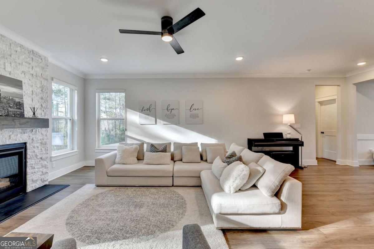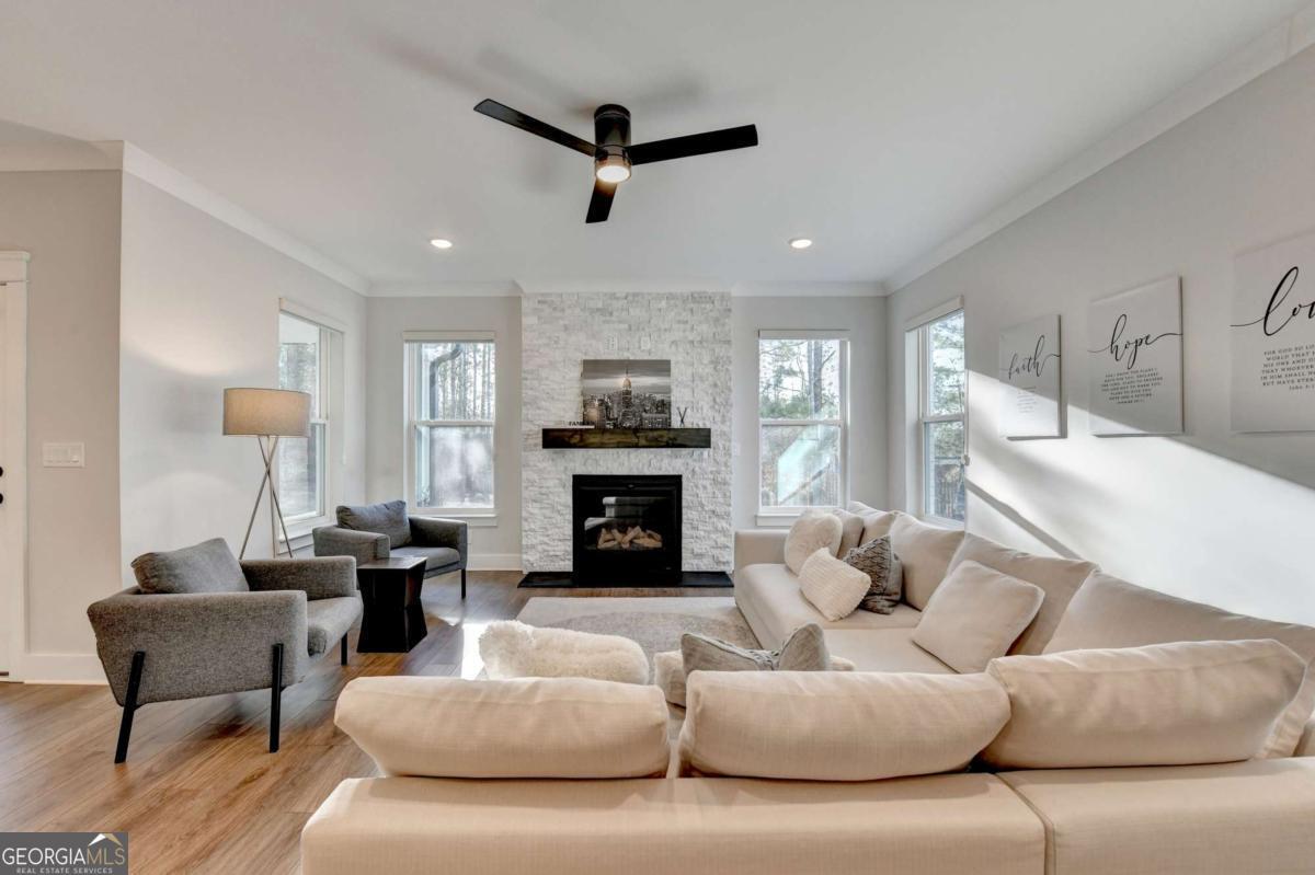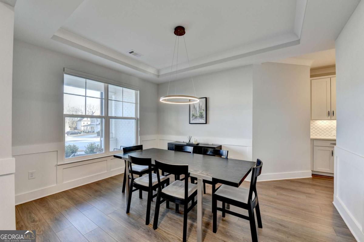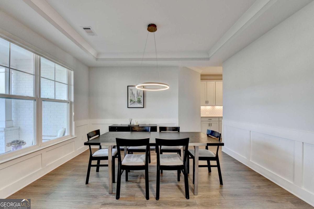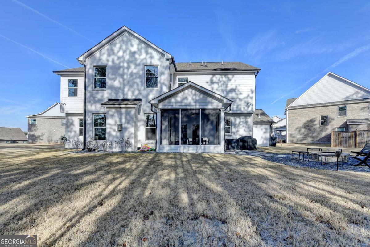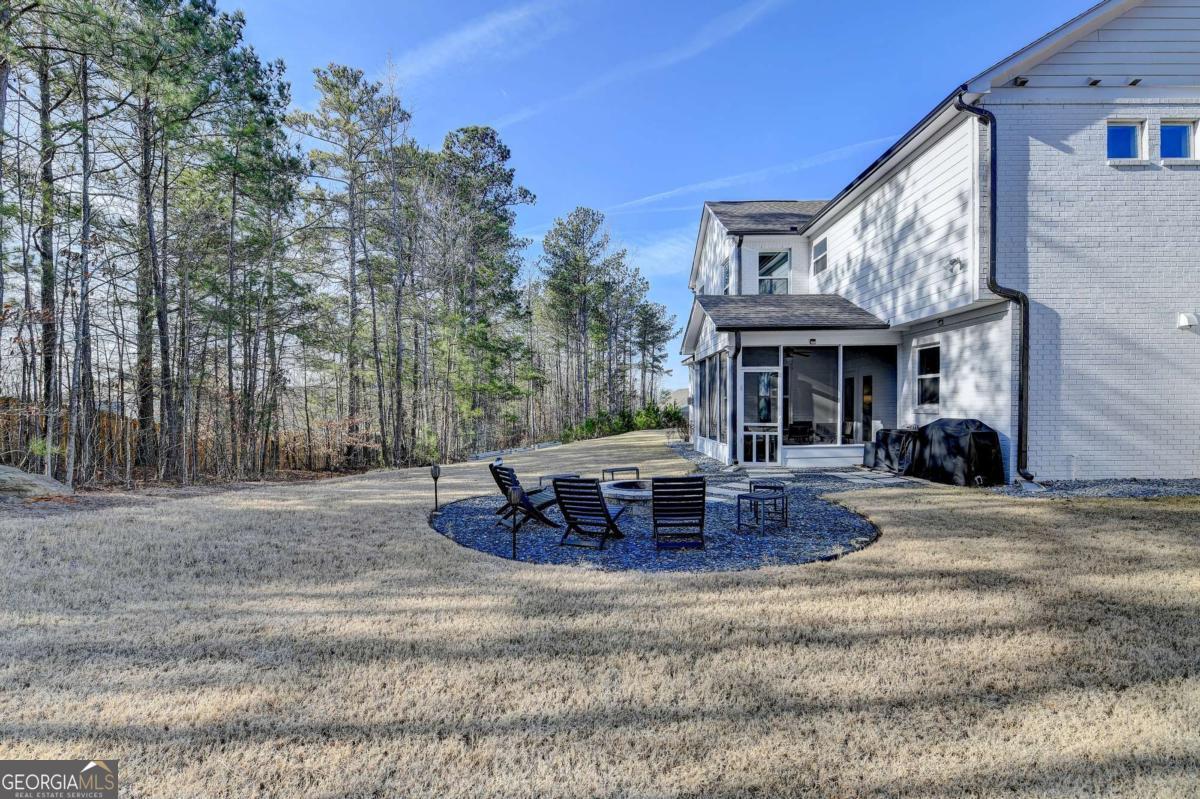 Located in the desirable Buford High School District, this stunning Eastwood Homes "Charleston" floor plan sits at the back of a quiet cul-de-sac and features elegant four-sided white painted brick. The three-car garage includes an upgraded epoxy floor and provides abundant storage and additional parking. A beautiful open foyer welcomes you with craftsman trim, cove crown molding throughout, and a tray ceiling. To the right, French doors lead to a spacious, light? filled office with four windows-perfect for working from home. The formal dining room easily accommodates a large table, making entertaining effortless. The expansive butler's pantry is a true showpiece with sparkling white quartz countertops, upgraded level?5 cabinetry, and now custom closet systems, offering the perfect bar, buffet, or display space. The open concept layout flows seamlessly from the gourmet kitchen to the breakfast area and family room, now enhanced with a beautiful stone fireplace, updated light fixtures, accent walls, and custom details throughout. The kitchen has the high-end finishes of the butler's pantry and includes a large walk-in pantry-also upgraded with a custom closet system throughout. A guest bedroom with a full bath is conveniently located on the main level. The screened in porch with tile flooring overlooks the trees and leads to a newly landscaped firepit area surrounded by decorative gravel-perfect for evenings of s'mores, barbecues, and year after year vegetable gardening. The private, wooded backyard spans both the back and side of the home, making this one of the best cul-de-sacs lots in the community. Upstairs, Total four bedrooms and two spacious bedrooms share a Jack and Jill bath, and the oversized bonus room has been transformed into a stylish media room featuring a modern linear fireplace. A private ensuite bedroom sits tucked away with its own full bath. The large laundry room includes cabinetry for added storage. The owner's suite, also positioned privately at the back of the home, features crown molding, a tray ceiling, two Walkin closets with custom systems, and a luxurious bath with separate vanities and an oversized Walkin tile shower. Smart Home features included. This home has been meticulously upgraded and offers exceptional indoor and outdoor living-truly so much more to offer.