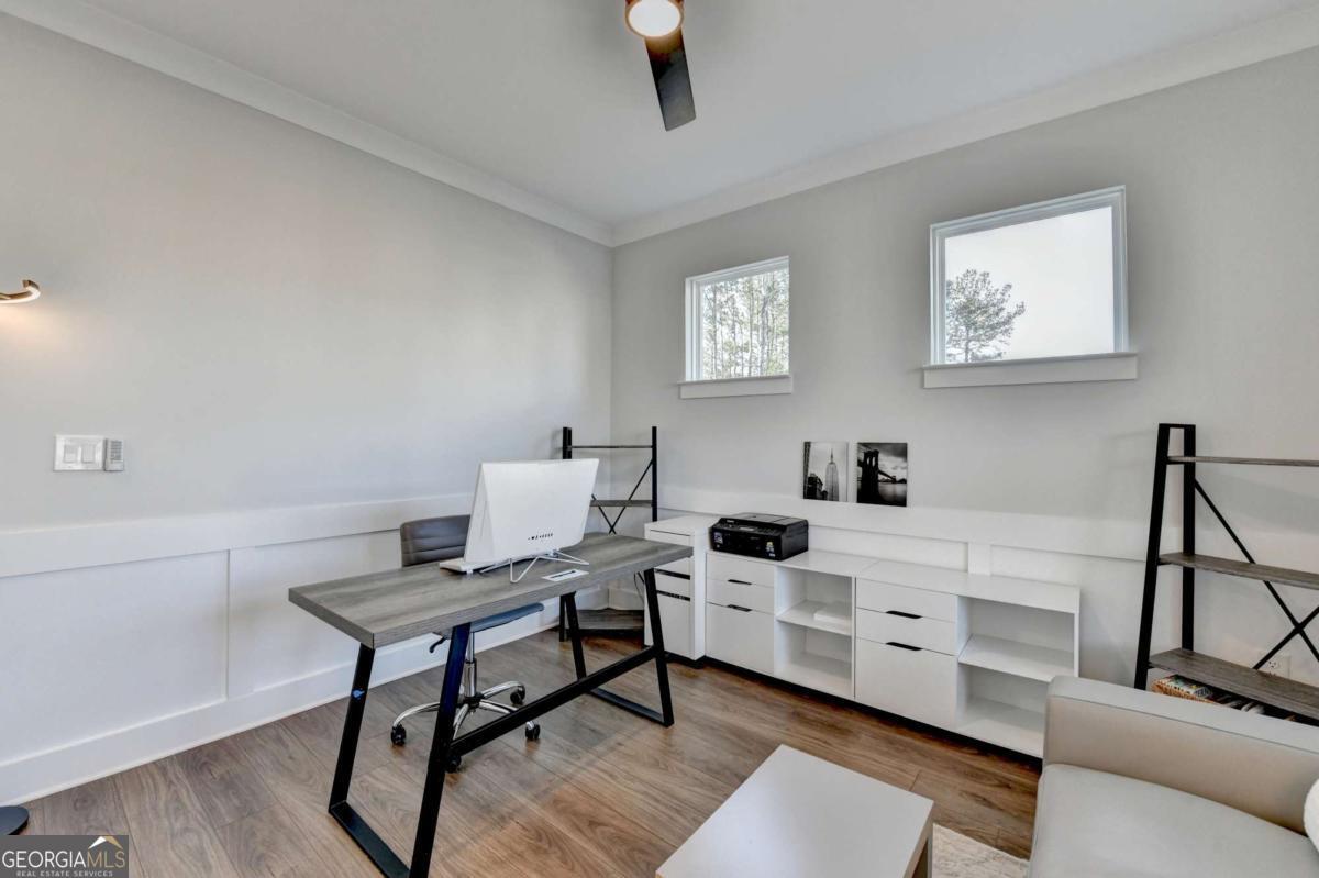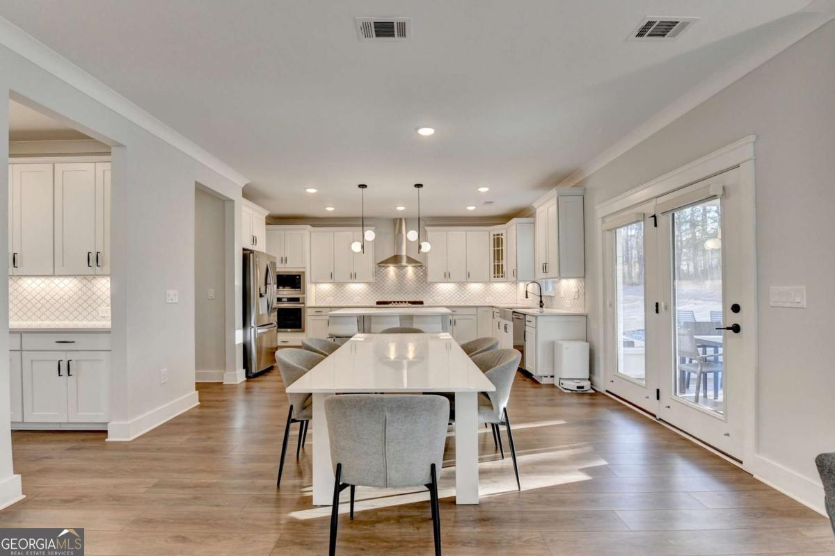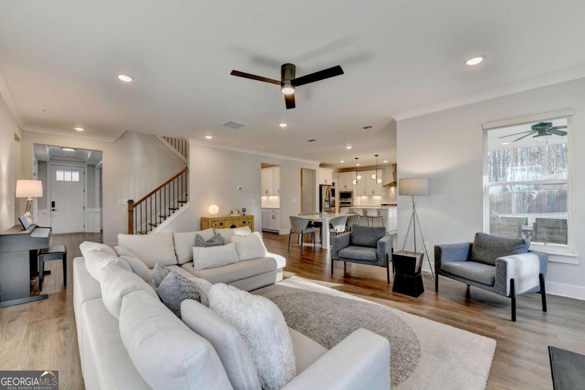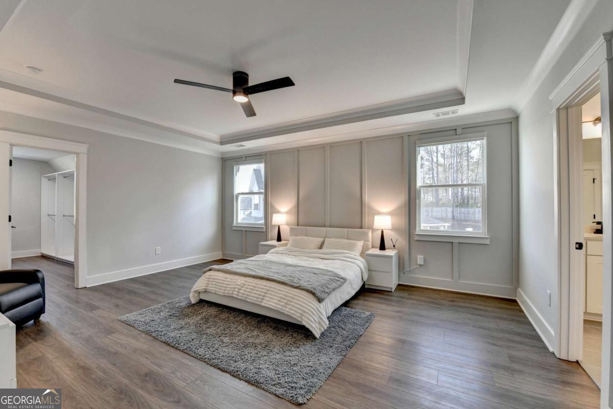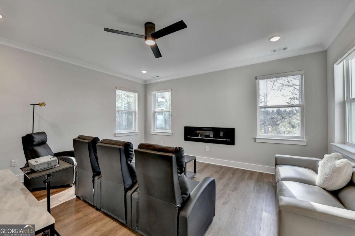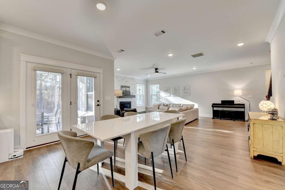 Located in the desirable Buford High School District, this stunning Eastwood Homes "Charleston" floor plan sits at the back of a quiet cul-de-sac and features elegant four-sided white painted brick. The three-car garage includes an upgraded epoxy floor and provides abundant storage and additional parking. A beautiful open foyer welcomes you with craftsman trim, cove crown molding throughout, and a tray ceiling. To the right, French doors lead to a spacious, light? filled office with four windows-perfect for working from home. The formal dining room easily accommodates a large table, making entertaining effortless. The expansive butler's pantry is a true showpiece with sparkling white quartz countertops, upgraded level?5 cabinetry, and now custom closet systems, offering the perfect bar, buffet, or display space. The open concept layout flows seamlessly from the gourmet kitchen to the breakfast area and family room, now enhanced with a beautiful stone fireplace, updated light fixtures, accent walls, and custom details throughout. The kitchen has the high-end finishes of the butler's pantry and includes a large walk-in pantry-also upgraded with a custom closet system throughout. A guest bedroom with a full bath is conveniently located on the main level. The screened in porch with tile flooring overlooks the trees and leads to a newly landscaped firepit area surrounded by decorative gravel-perfect for evenings of s'mores, barbecues, and year after year vegetable gardening. The private, wooded backyard spans both the back and side of the home, making this one of the best cul-de-sacs lots in the community. Upstairs, Total four bedrooms and two spacious bedrooms share a Jack and Jill bath, and the oversized bonus room has been transformed into a stylish media room featuring a modern linear fireplace. A private ensuite bedroom sits tucked away with its own full bath. The large laundry room includes cabinetry for added storage. The owner's suite, also positioned privately at the back of the home, features crown molding, a tray ceiling, two Walkin closets with custom systems, and a luxurious bath with separate vanities and an oversized Walkin tile shower. Smart Home features included. This home has been meticulously upgraded and offers exceptional indoor and outdoor living-truly so much more to offer.