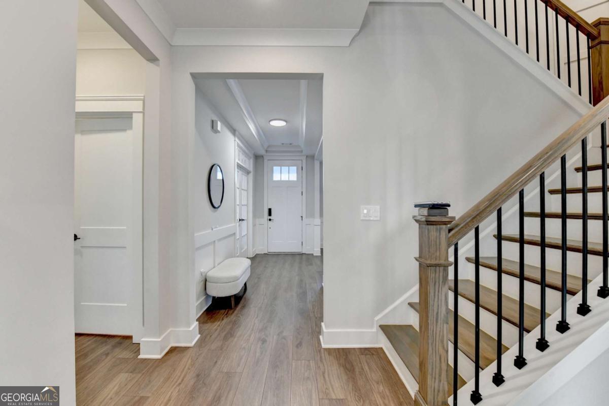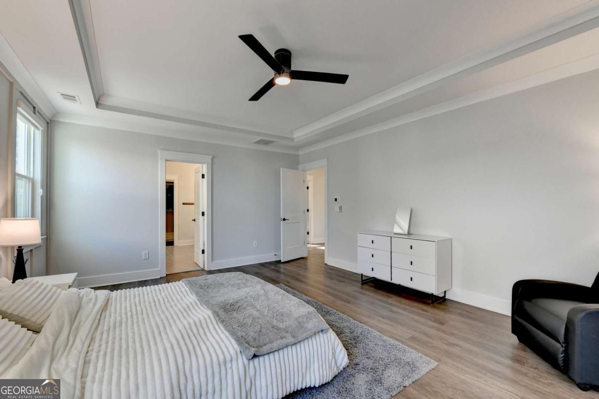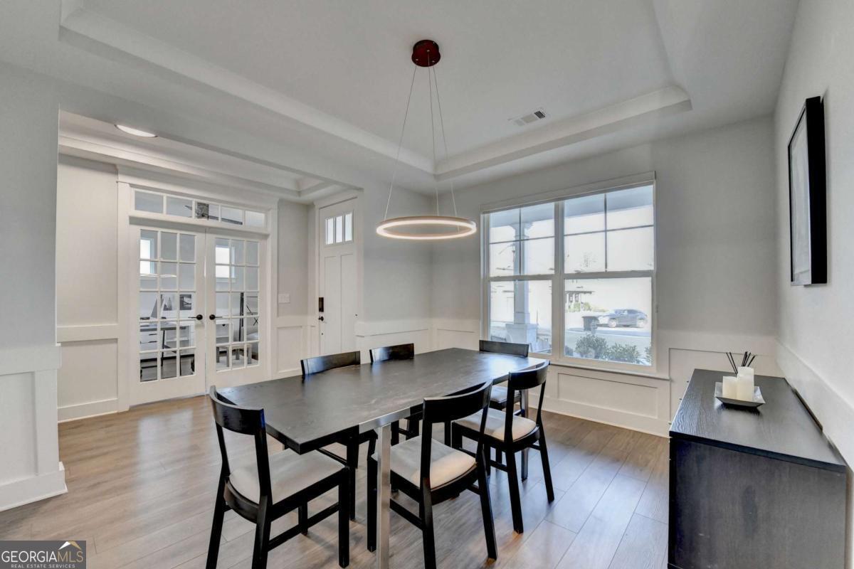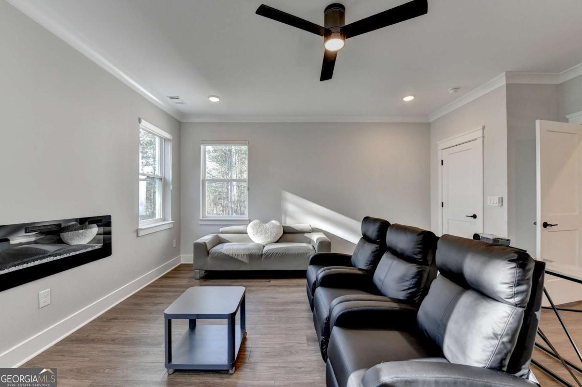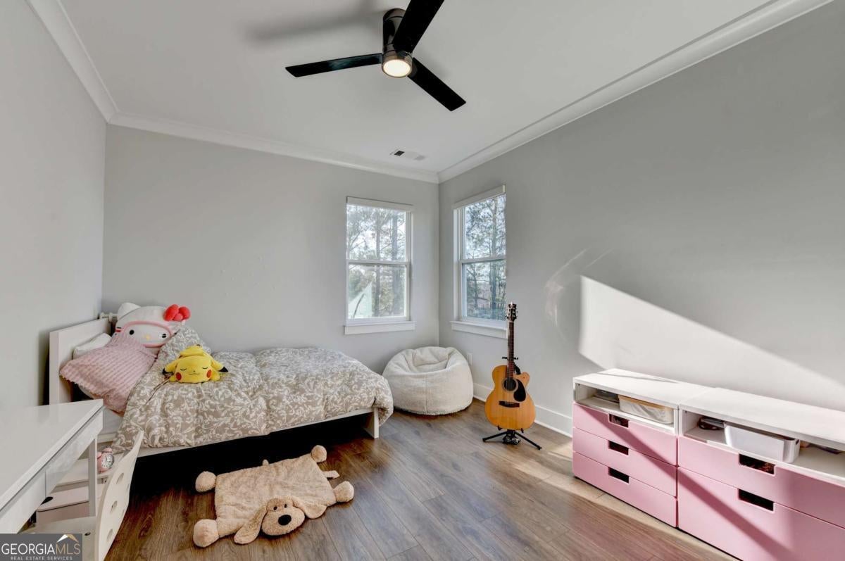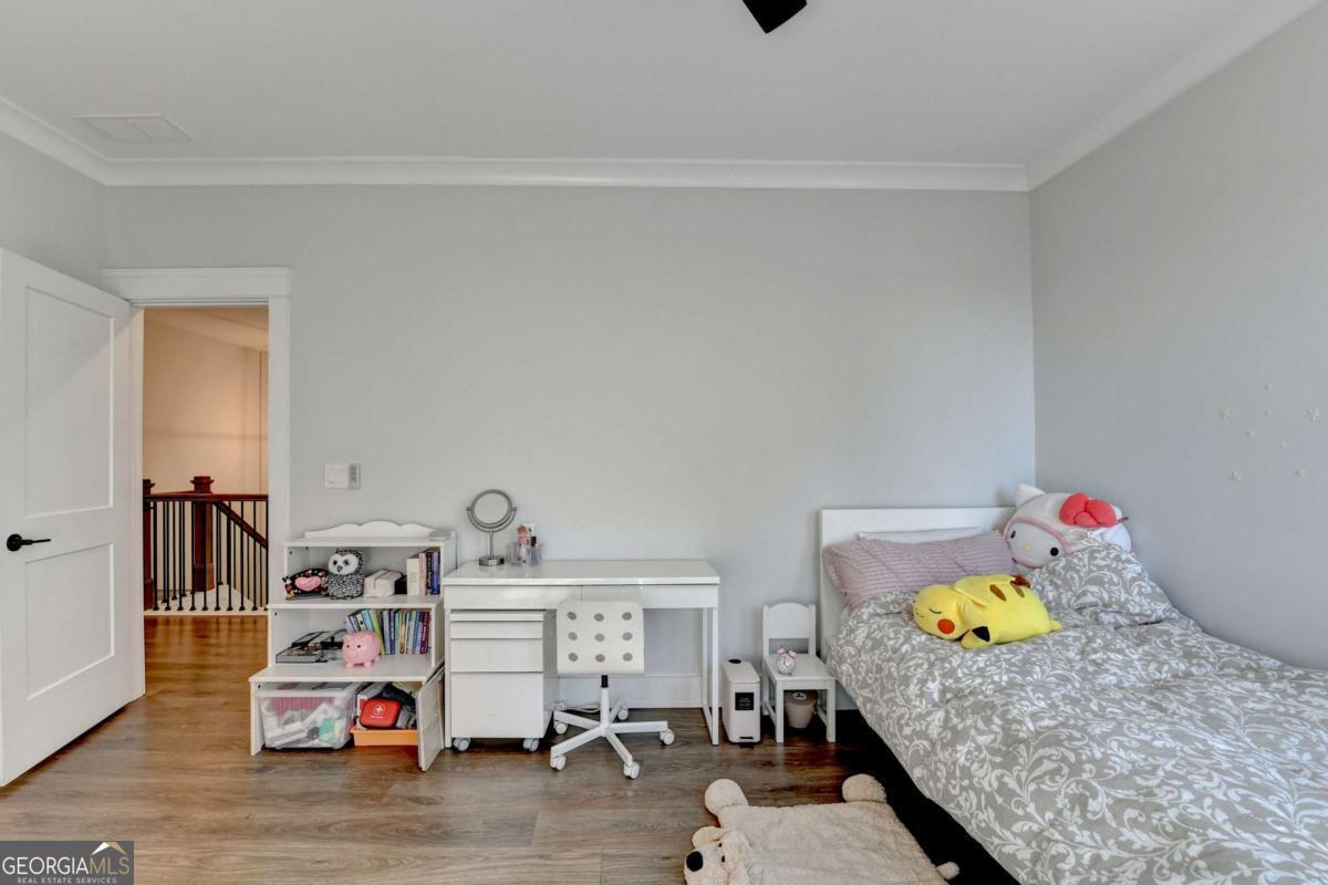 Located in the desirable Buford High School District, this stunning Eastwood Homes "Charleston" floor plan sits at the back of a quiet cul-de-sac and features elegant four-sided white painted brick. The three-car garage includes an upgraded epoxy floor and provides abundant storage and additional parking. A beautiful open foyer welcomes you with craftsman trim, cove crown molding throughout, and a tray ceiling. To the right, French doors lead to a spacious, light? filled office with four windows-perfect for working from home. The formal dining room easily accommodates a large table, making entertaining effortless. The expansive butler's pantry is a true showpiece with sparkling white quartz countertops, upgraded level?5 cabinetry, and now custom closet systems, offering the perfect bar, buffet, or display space. The open concept layout flows seamlessly from the gourmet kitchen to the breakfast area and family room, now enhanced with a beautiful stone fireplace, updated light fixtures, accent walls, and custom details throughout. The kitchen has the high-end finishes of the butler's pantry and includes a large walk-in pantry-also upgraded with a custom closet system throughout. A guest bedroom with a full bath is conveniently located on the main level. The screened in porch with tile flooring overlooks the trees and leads to a newly landscaped firepit area surrounded by decorative gravel-perfect for evenings of s'mores, barbecues, and year after year vegetable gardening. The private, wooded backyard spans both the back and side of the home, making this one of the best cul-de-sacs lots in the community. Upstairs, Total four bedrooms and two spacious bedrooms share a Jack and Jill bath, and the oversized bonus room has been transformed into a stylish media room featuring a modern linear fireplace. A private ensuite bedroom sits tucked away with its own full bath. The large laundry room includes cabinetry for added storage. The owner's suite, also positioned privately at the back of the home, features crown molding, a tray ceiling, two Walkin closets with custom systems, and a luxurious bath with separate vanities and an oversized Walkin tile shower. Smart Home features included. This home has been meticulously upgraded and offers exceptional indoor and outdoor living-truly so much more to offer.