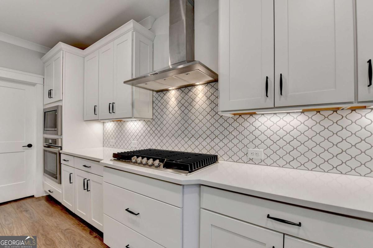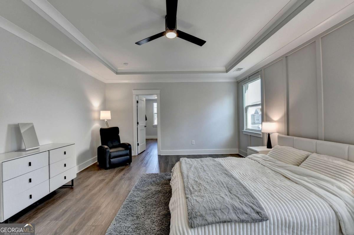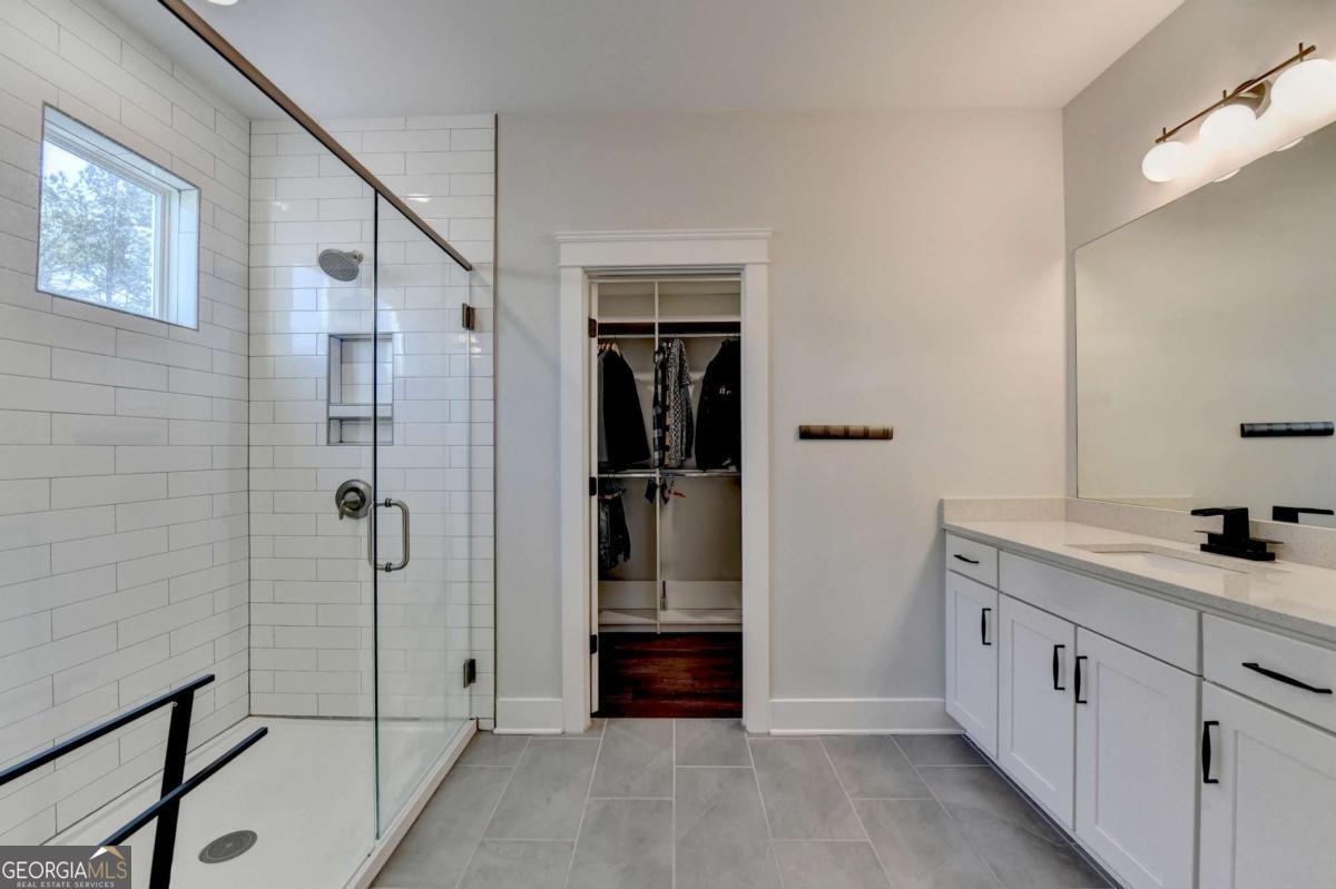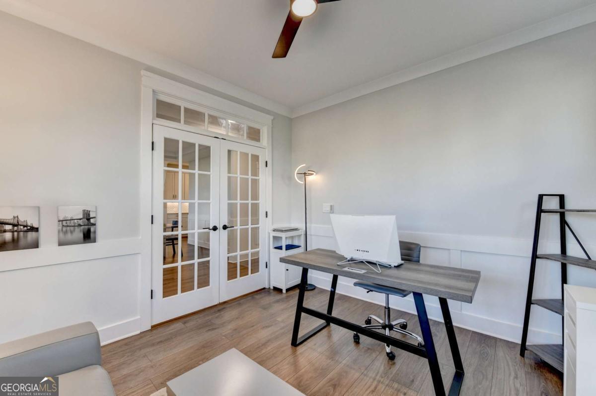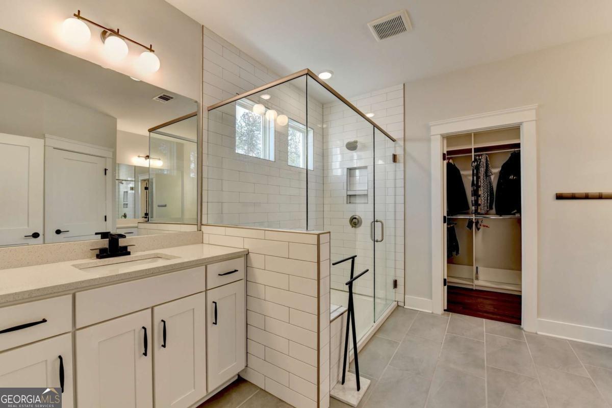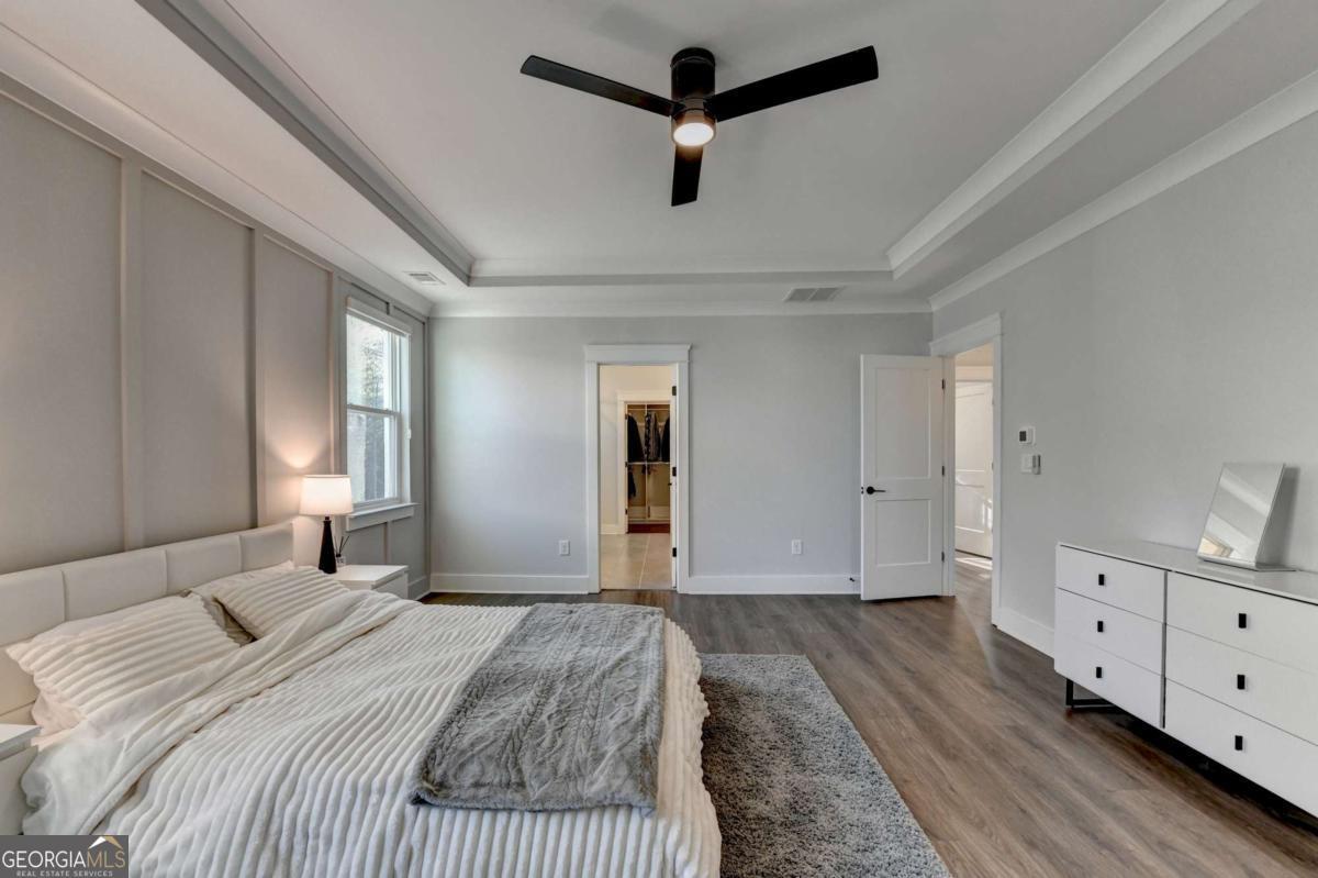 Located in the desirable Buford High School District, this stunning Eastwood Homes "Charleston" floor plan sits at the back of a quiet cul-de-sac and features elegant four-sided white painted brick. The three-car garage includes an upgraded epoxy floor and provides abundant storage and additional parking. A beautiful open foyer welcomes you with craftsman trim, cove crown molding throughout, and a tray ceiling. To the right, French doors lead to a spacious, light? filled office with four windows-perfect for working from home. The formal dining room easily accommodates a large table, making entertaining effortless. The expansive butler's pantry is a true showpiece with sparkling white quartz countertops, upgraded level?5 cabinetry, and now custom closet systems, offering the perfect bar, buffet, or display space. The open concept layout flows seamlessly from the gourmet kitchen to the breakfast area and family room, now enhanced with a beautiful stone fireplace, updated light fixtures, accent walls, and custom details throughout. The kitchen has the high-end finishes of the butler's pantry and includes a large walk-in pantry-also upgraded with a custom closet system throughout. A guest bedroom with a full bath is conveniently located on the main level. The screened in porch with tile flooring overlooks the trees and leads to a newly landscaped firepit area surrounded by decorative gravel-perfect for evenings of s'mores, barbecues, and year after year vegetable gardening. The private, wooded backyard spans both the back and side of the home, making this one of the best cul-de-sacs lots in the community. Upstairs, Total four bedrooms and two spacious bedrooms share a Jack and Jill bath, and the oversized bonus room has been transformed into a stylish media room featuring a modern linear fireplace. A private ensuite bedroom sits tucked away with its own full bath. The large laundry room includes cabinetry for added storage. The owner's suite, also positioned privately at the back of the home, features crown molding, a tray ceiling, two Walkin closets with custom systems, and a luxurious bath with separate vanities and an oversized Walkin tile shower. Smart Home features included. This home has been meticulously upgraded and offers exceptional indoor and outdoor living-truly so much more to offer.