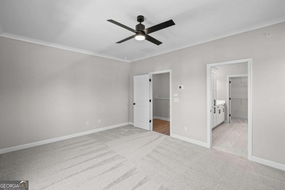- Interior FeaturesBookcases, Double Vanity, High Ceilings, Pulldown Attic Stairs, Roommate Plan, Walk-In Closet(s)