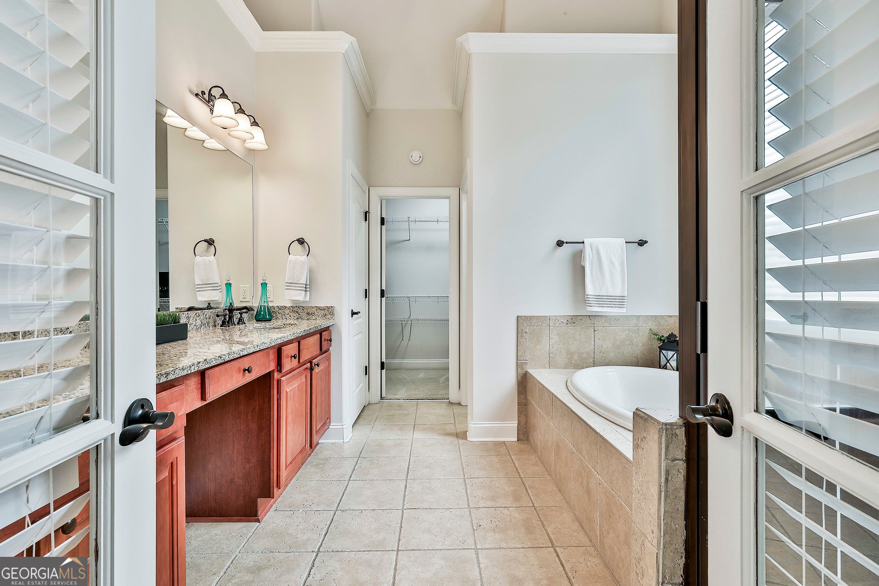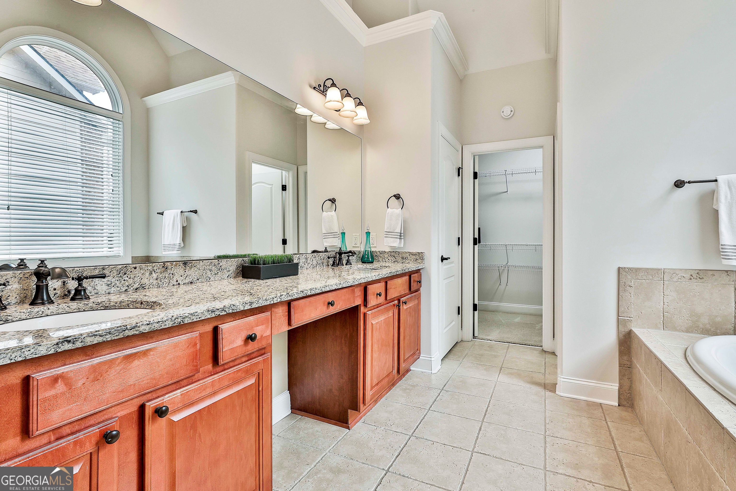 - Interior FeaturesDouble Vanity, High Ceilings, Master On Main Level, Pulldown Attic Stairs, Separate Shower, Soaking Tub, Split Bedroom Plan, Tile Bath, Tray Ceiling(s), Vaulted Ceiling(s), Walk-In Closet(s), Whirlpool Bath
