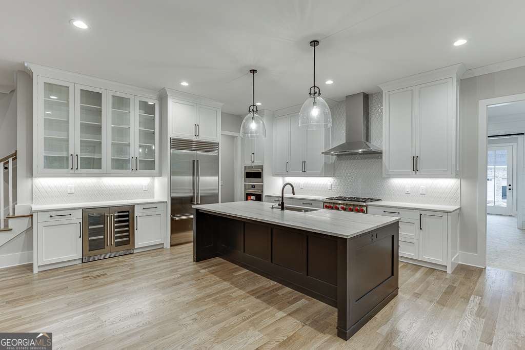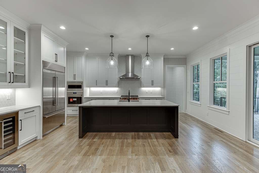 Looking for your private beach on Lake Lanier? Look no further, experience lakeside luxury at its finest with this stunning new construction modern farmhouse, prominently positioned on the tranquil shores of Lake Lanier. Step into a world of sophistication and comfort with this 4-bedroom, 5.5-bathroom home that promises an exceptional living experience. The .60-acre property features an expansive front porch that extends a warm invitation to indulge in the peaceful surroundings and the soothing sounds of nature. The heart of this home is the open-concept living area with its soaring ceilings and vast windows that flood the space with natural light. The great room is a welcoming hub, elegantly connected to a chef's kitchen, boasting high-end stainless steel appliances, a commodious island, and bespoke cabinetry-a culinary dream. Retire to the luxurious main-level primary suite, where panoramic lake views create a serene backdrop to your private haven, complete with a spa-like en-suite bathroom and a massive walk-in closet. Entertainment is effortless with a lower level designed for future expansion and enjoyment, ensuring memorable gatherings with loved ones. The outdoor space is an idyllic paradise, featuring a covered brick rear porch with a fireplace, and your private dock, your private beach, inviting endless lake adventures or quiet evenings under the stars. This home is meticulously crafted with premium finishes, including hardwood floors and designer touches, to provide an ambiance of understated luxury. With a 3-car side entry garage, this property is not just a home-it's a lifestyle choice for those seeking an extraordinary living experience on the prestigious Lake Lanier. Welcome to your sanctuary, where luxury meets tranquility.
