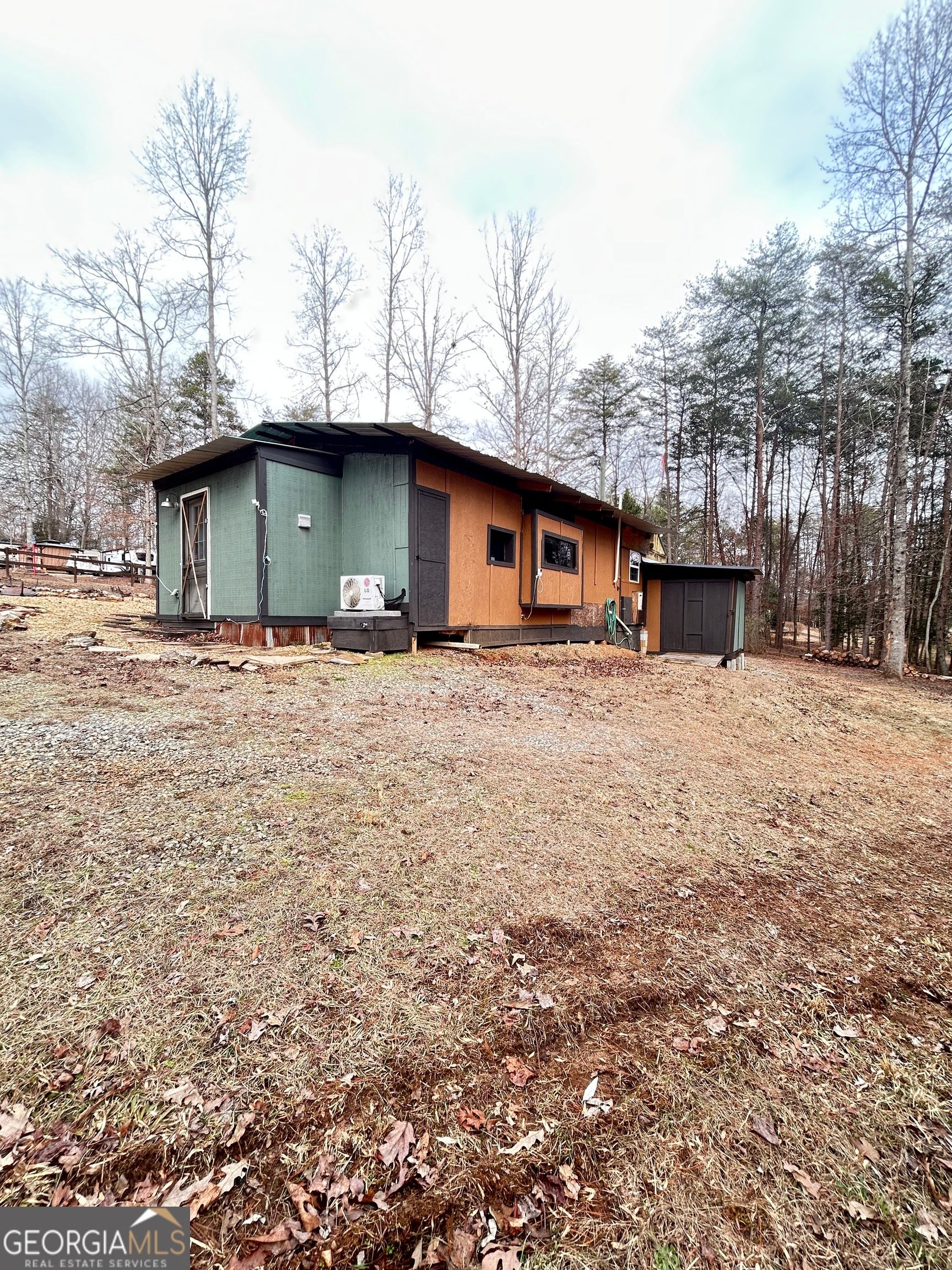 Think of a tiny home living tucked away in a serene, gated community on 1.43 +/- acres. This unique fully furnished home offers a quiet retreat with a gated driveway for added privacy. Inside features include a functional layout with mudroom/laundry room, spacious kitchen, large family room, two bedrooms, and two bathrooms - one with a sink and toilet and the other with a shower and toilet. Step outside to enjoy the patio for relaxing or entertaining, plus a shed/workshop for storage and projects. Flat, usable land with room to expand or garden. Convenient to Cleveland, Helen, Habersham, wineries, and hiking. Whether a weekend getaway or full-time residence, this is a must-see property.
